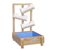 Spennende vannlek for utendørs bruk. Hell vann i traktene og sett fart på hjulet. Laget av trebeskyttelsesbehandlet furu med oppsamlingskar i bunnen. Mål: 38x44x65 cm. Fra 3 år. Beregnet på utendørs bruk.