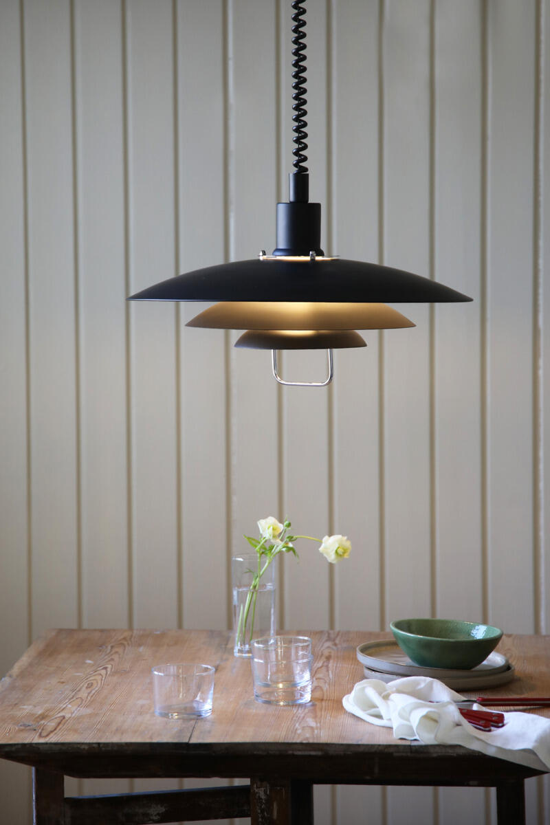 Elegant pendel med enkel design. Metallskjerm som gir et godt direkte lys. Dimbar. Max 25W. Sokkel G9. Metall. 2,8 m ledning. Lyskilde følger ikke med.