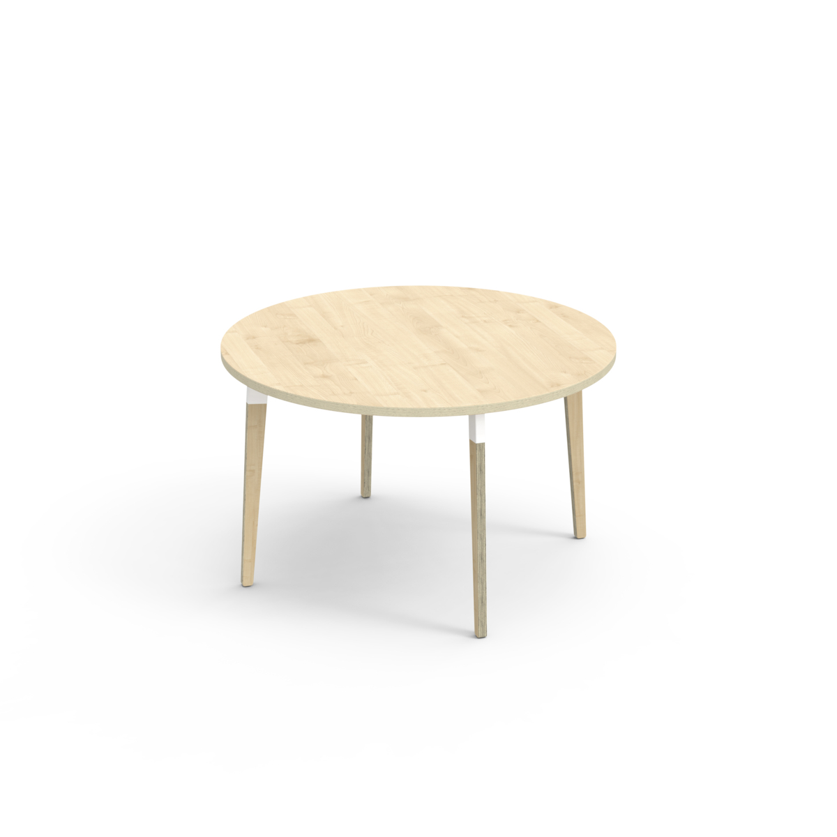 Lydabsorberende bordplate belagt med høytrykkslaminat, noe som gir en slitesterk overflate. Bordet har en hjørneradius på 40 mm og har et moderne og stilrent design. Bena har en rektangulær form og er laget av klarlakkert bjørkekryssfiner montert i en robust, hvit metallmansjett. Denne konstruksjonen sikrer både stabilitet og holdbarhet. Bena er lett vinklet mot hjørnene av bordplaten, noe som gir bordet et unikt og estetisk tiltalende utseende. Monteringen er enkel og lett - du trenger bare å feste metallhylsene til festepunktene i bordplaten.