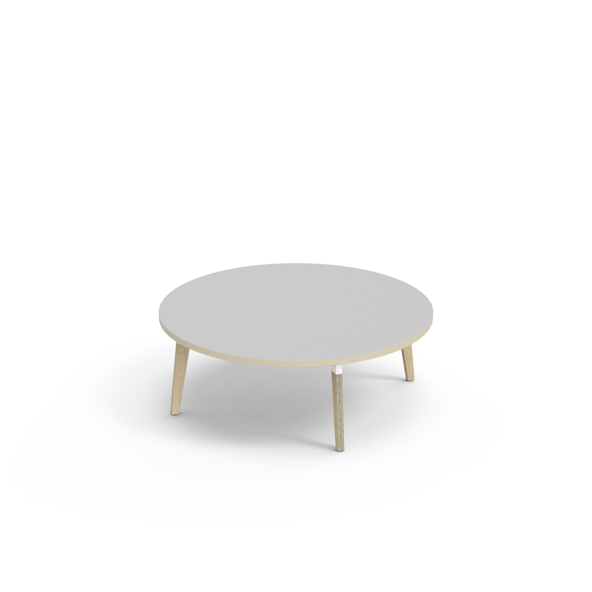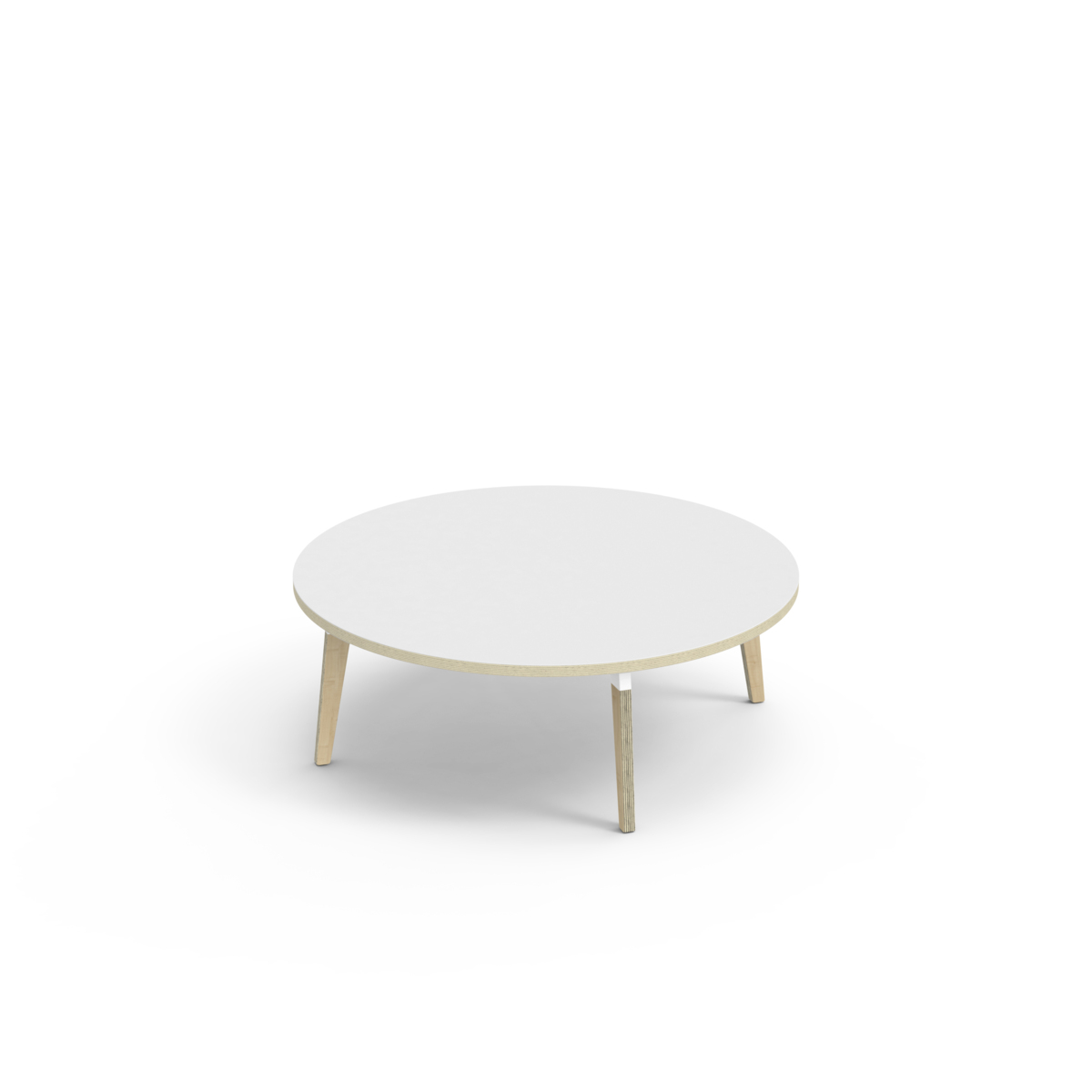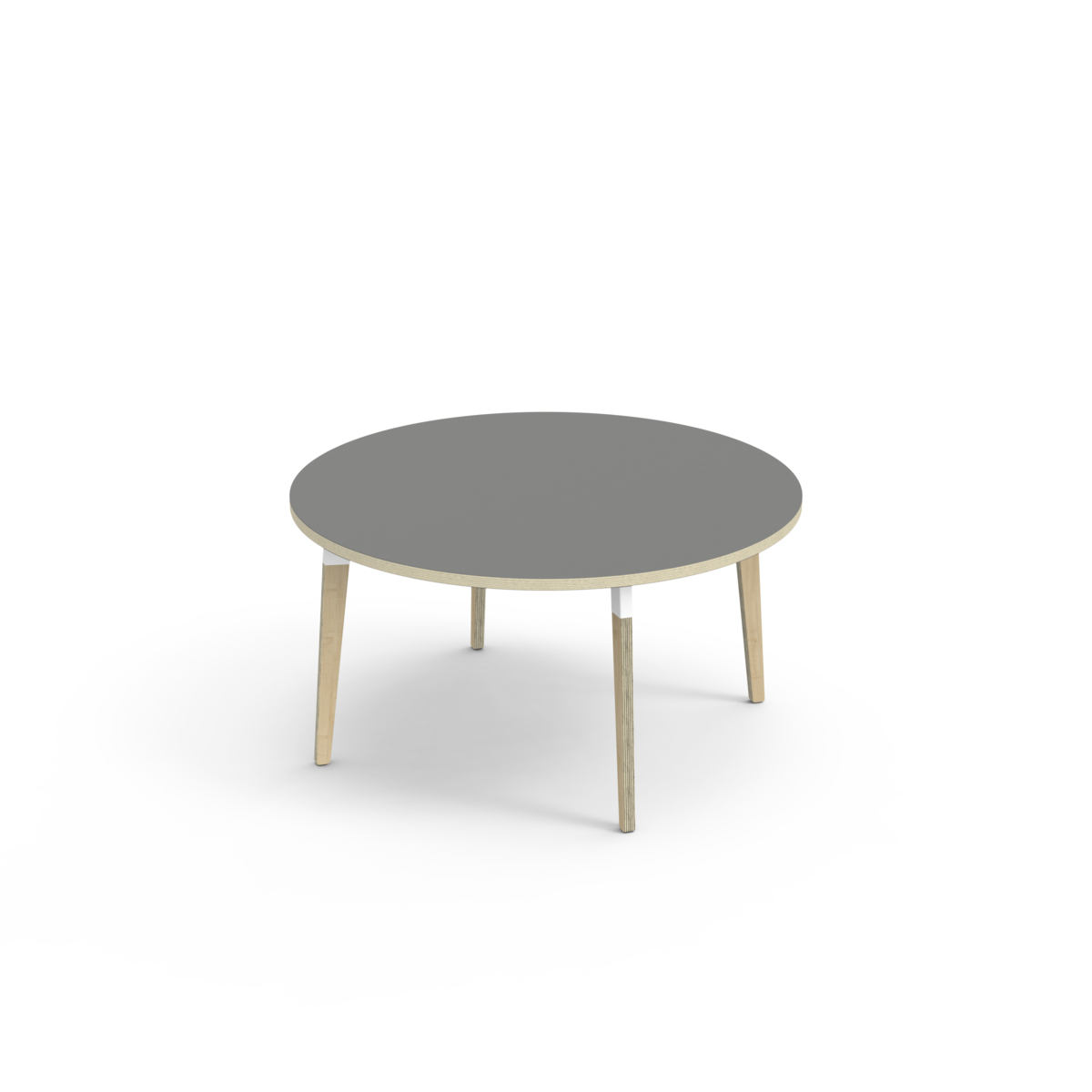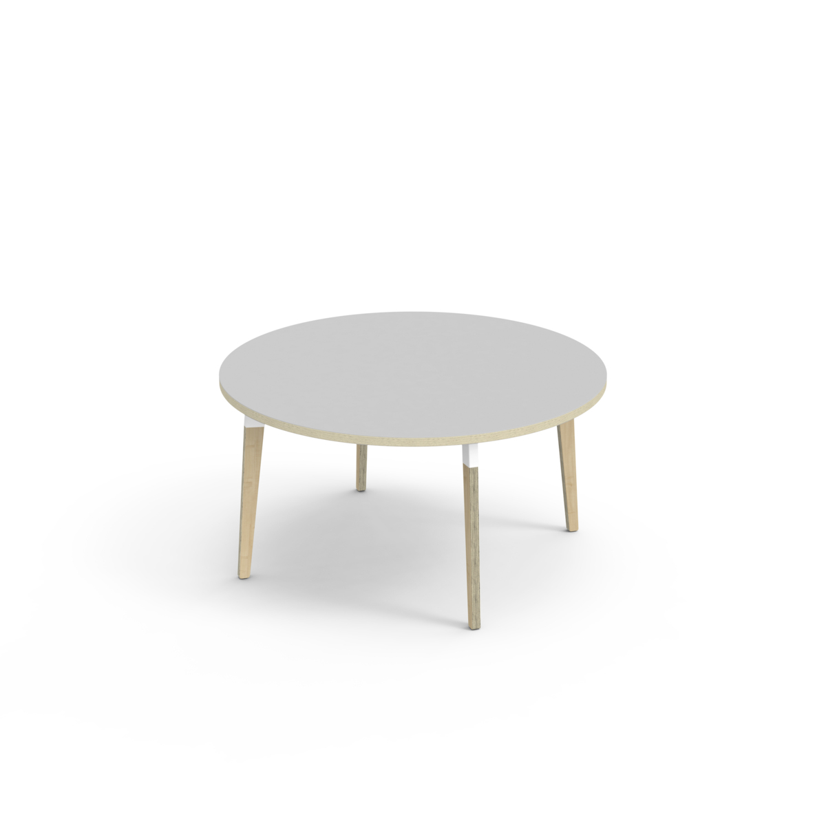 Bordplate belagt med høytrykkslaminat som gir en slitesterk overflate. Bordet har en hjørneradius på 40 mm og har et moderne og stilrent design. Bena har en rektangulær form og er laget av klarlakkert bjørkekryssfiner montert i en robust, hvit metallmansjett. Denne konstruksjonen sikrer både stabilitet og holdbarhet. Bena er lett vinklet mot hjørnene av bordplaten, noe som gir bordet et unikt og estetisk tiltalende utseende. Monteringen er enkel og lett - du trenger bare å feste metallhylsene til festepunktene i bordplaten.