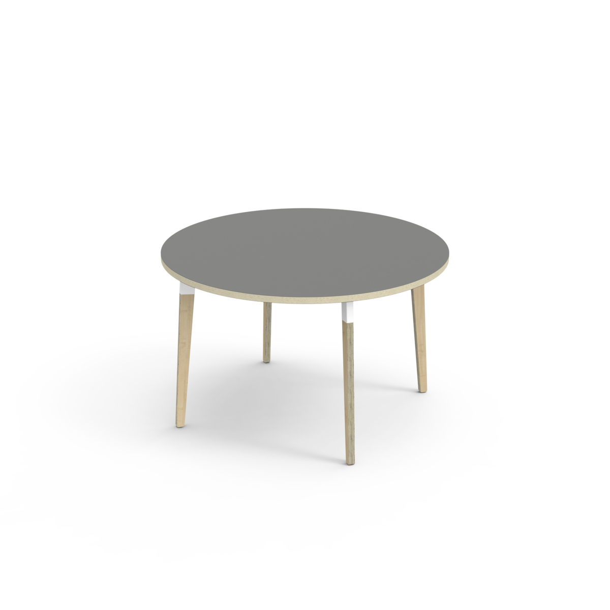 Bordplate belagt med akustikk linoleum, som gir en myk og behagelig overflate samtidig som den bidrar til et bedre lydmiljø. Bordet har en hjørneradius på 40 mm og har et moderne og stilrent design. Bena har en rektangulær form og er laget av klarlakkert bjørkekryssfiner montert i en robust, hvit metallmansjett. Denne konstruksjonen sikrer både stabilitet og holdbarhet. Bena er lett vinklet mot hjørnene av bordplaten, noe som gir bordet et unikt og estetisk tiltalende utseende. Monteringen er enkel og lett - du trenger bare å feste metallhylsene til festepunktene i bordplaten.