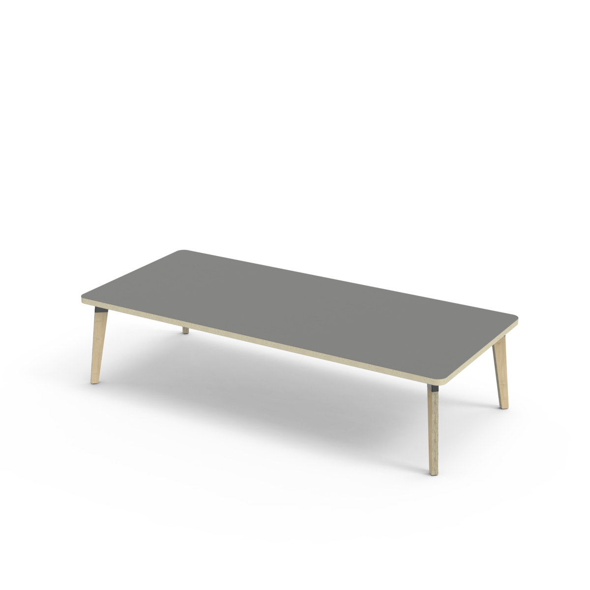 Lydabsorberende bordplate belagt med høytrykkslaminat, noe som gir en slitesterk overflate. Bordet har en hjørneradius på 40 mm og har et moderne og stilrent design. Bena har en rektangulær form og er laget av klarlakkert bjørkekryssfiner montert i en robust, svart metallmansjett. Denne konstruksjonen sikrer både stabilitet og holdbarhet. Bena er lett vinklet mot hjørnene av bordplaten, noe som gir bordet et unikt og estetisk tiltalende utseende. Monteringen er enkel og lett - du trenger bare å feste metallhylsene til festepunktene i bordplaten.