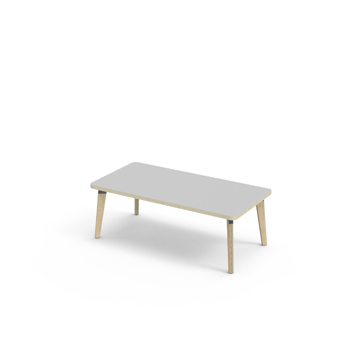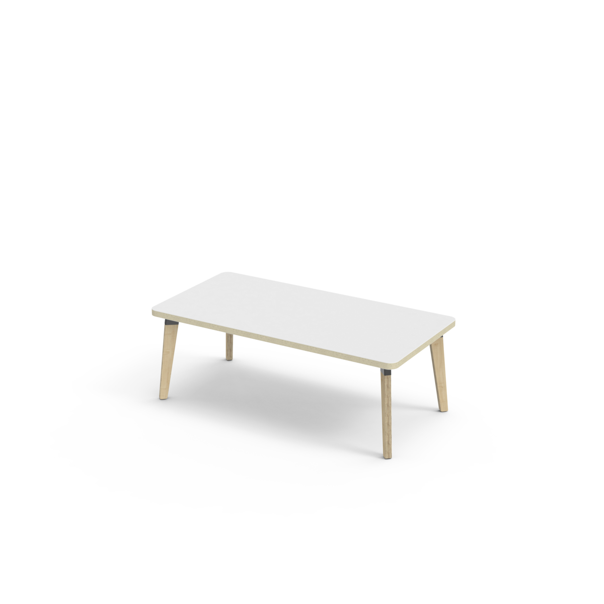 Lydabsorberende bordplate belagt med høytrykkslaminat, noe som gir en slitesterk overflate. Bordet har en hjørneradius på 40 mm og har et moderne og stilrent design. Bena har en rektangulær form og er laget av klarlakkert bjørkekryssfiner montert i en robust, hvit metallmansjett. Denne konstruksjonen sikrer både stabilitet og holdbarhet. Bena er lett vinklet mot hjørnene av bordplaten, noe som gir bordet et unikt og estetisk tiltalende utseende. Monteringen er enkel og lett - du trenger bare å feste metallhylsene til festepunktene i bordplaten.