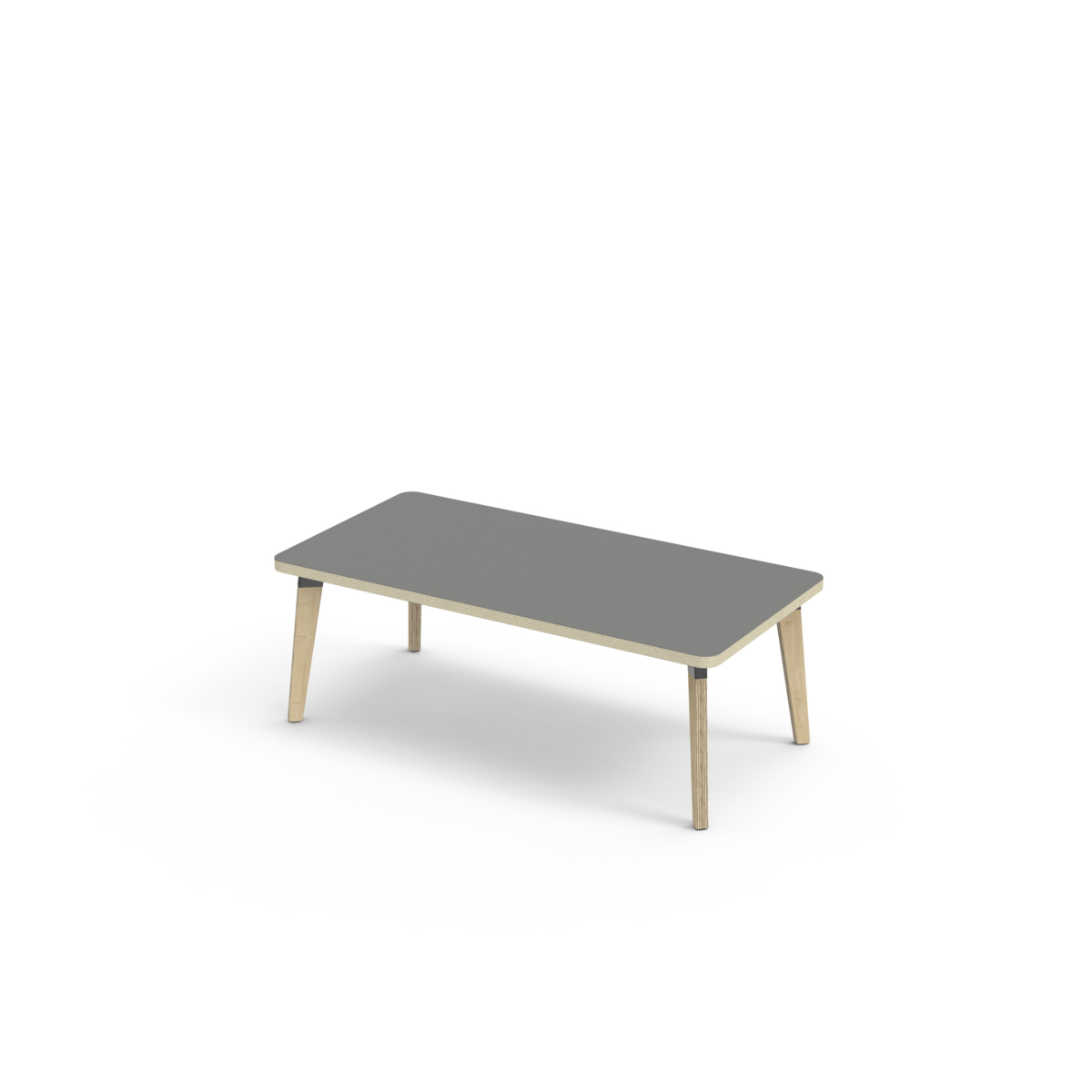 Lydabsorberende bordplate belagt med høytrykkslaminat, noe som gir en slitesterk overflate. Bordet har en hjørneradius på 40 mm og har et moderne og stilrent design. Bena har en rektangulær form og er laget av klarlakkert bjørkekryssfiner montert i en robust, svart metallmansjett. Denne konstruksjonen sikrer både stabilitet og holdbarhet. Bena er lett vinklet mot hjørnene av bordplaten, noe som gir bordet et unikt og estetisk tiltalende utseende. Monteringen er enkel og lett - du trenger bare å feste metallhylsene til festepunktene i bordplaten.