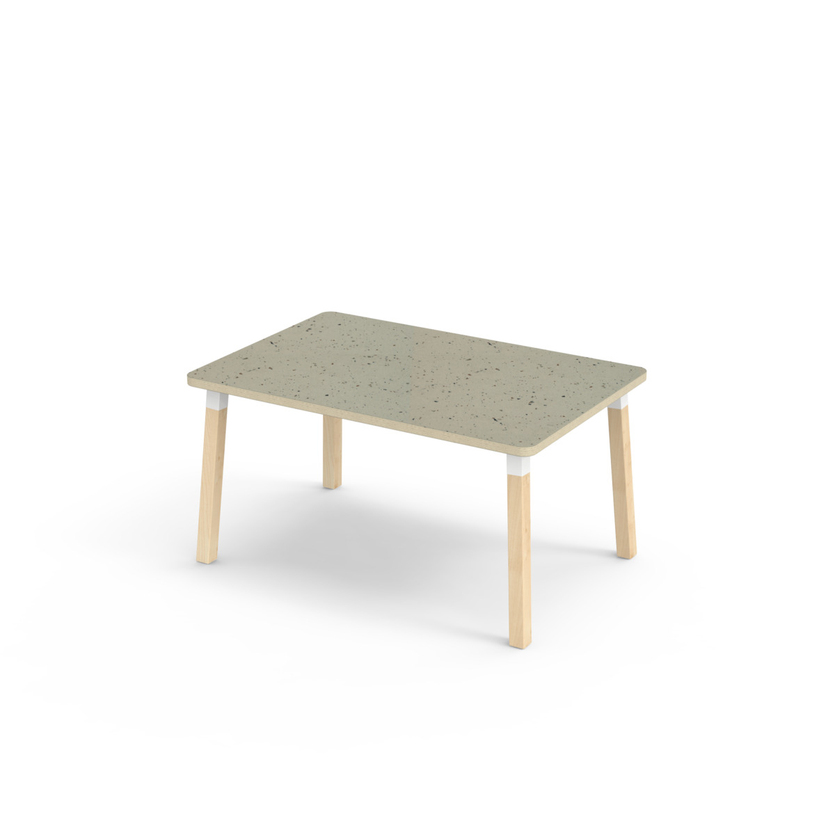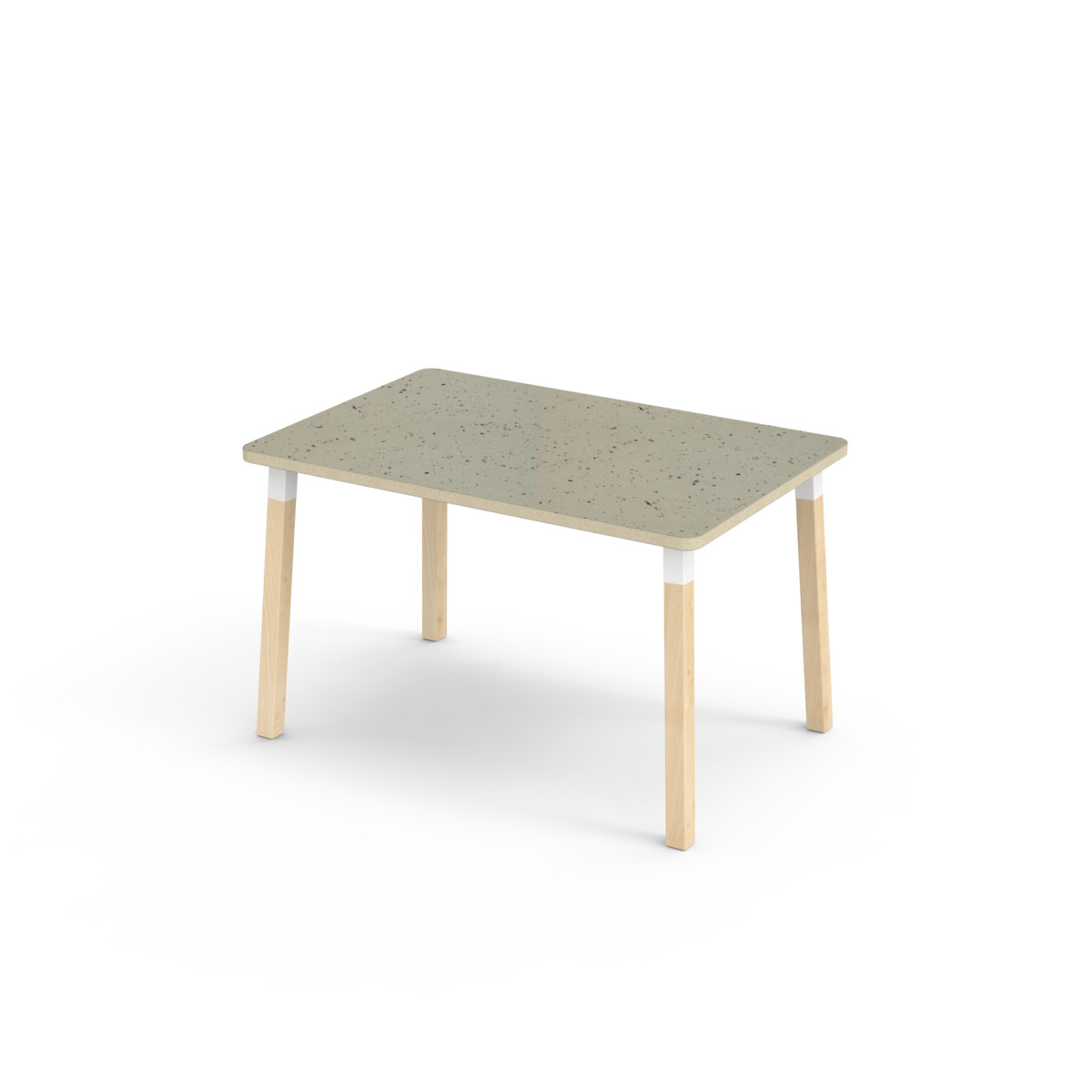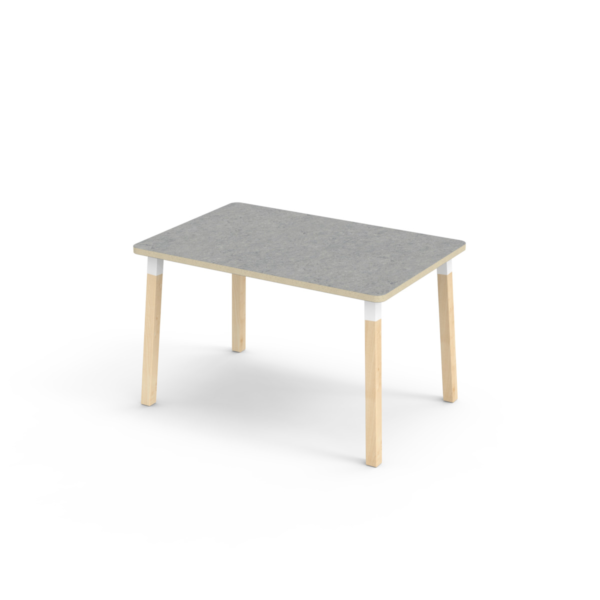 Lydabsorberende bordplate belagt med høytrykkslaminat, noe som gir en slitesterk overflate. Bordet har en hjørneradius på 40 mm og et moderne og stilrent design. Bena er laget av klarlakkert massiv bjørk og montert i en robust, hvit metallmansjett. Denne konstruksjonen sikrer både stabilitet og holdbarhet. Bena er lett vinklet mot hjørnene av bordplaten, noe som gir bordet et unikt og estetisk tiltalende utseende. Monteringen er enkel og lett - du trenger bare å feste metallhylsene til festepunktene i bordplaten.