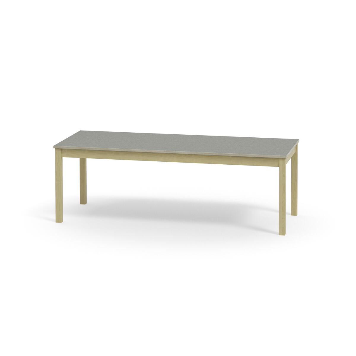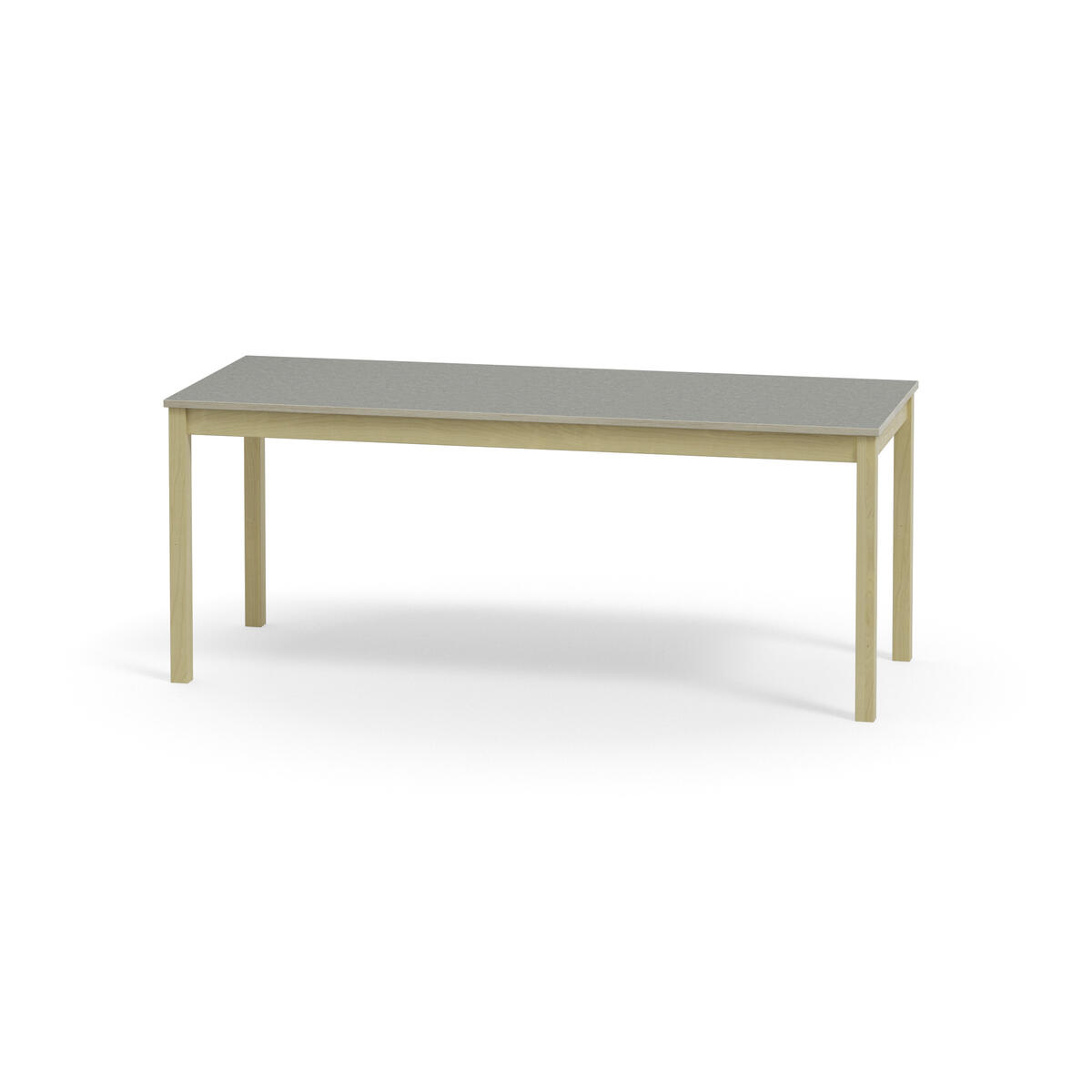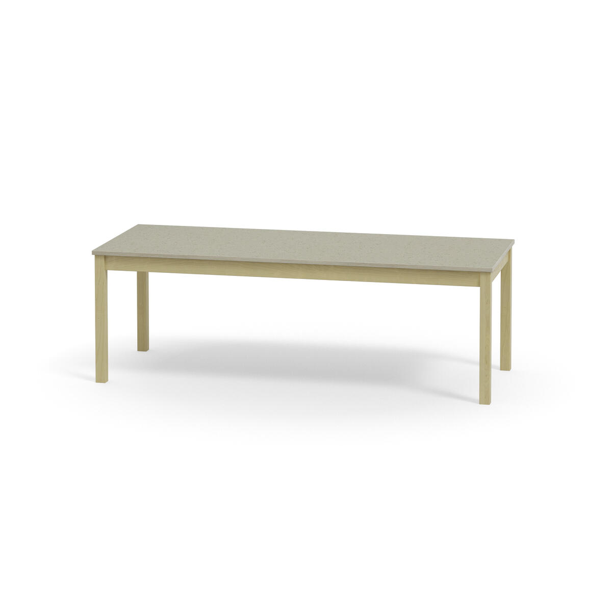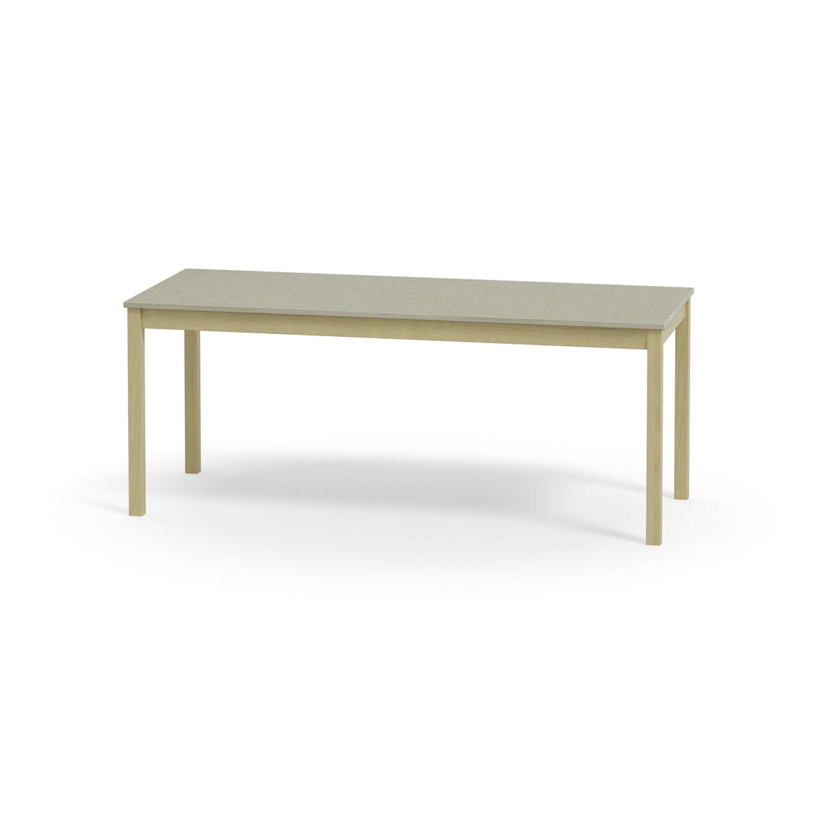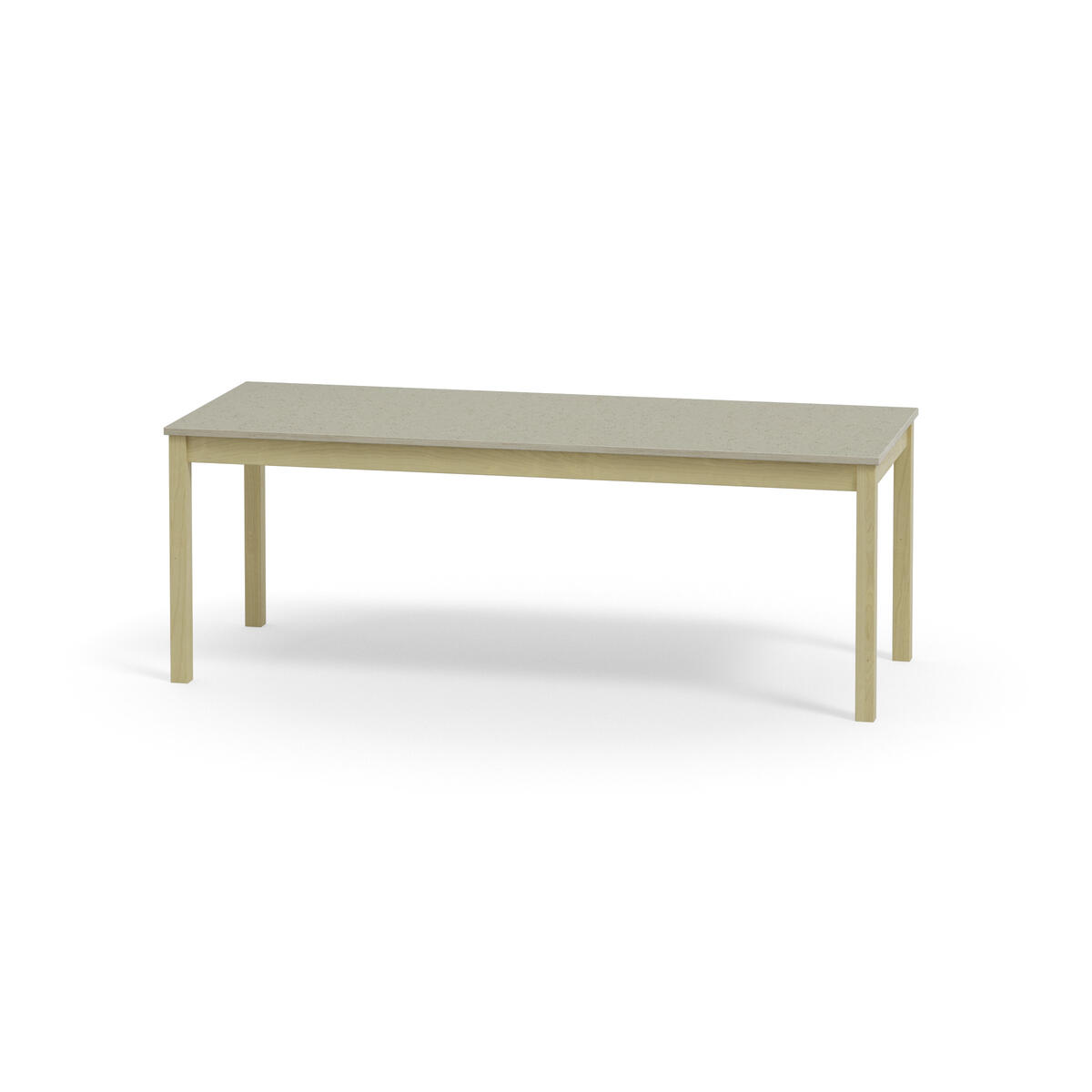 Støydempende bordplate belagt med lydabsorberende og slitesterk Linoleum - et Svanemerket naturmateriale helt uten PVC og ftalater. Understell i massivt tre.