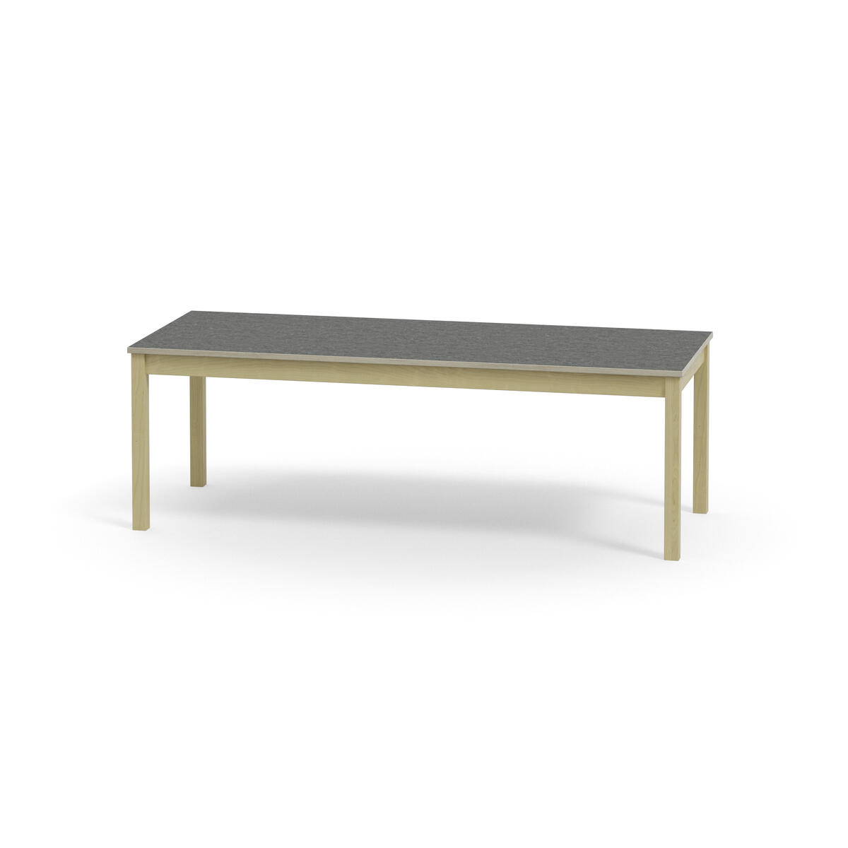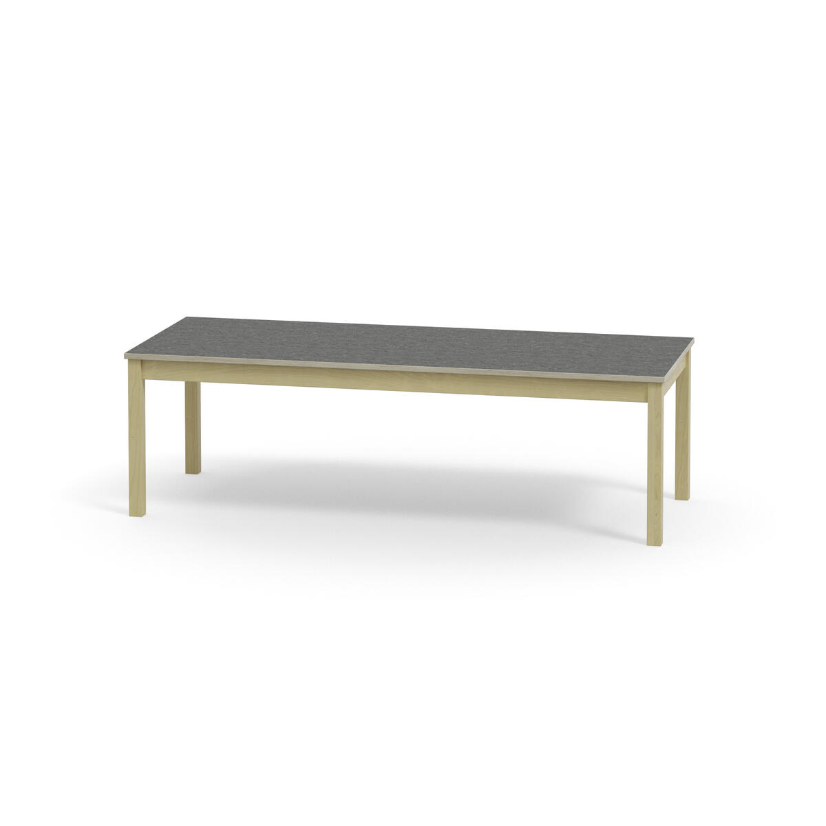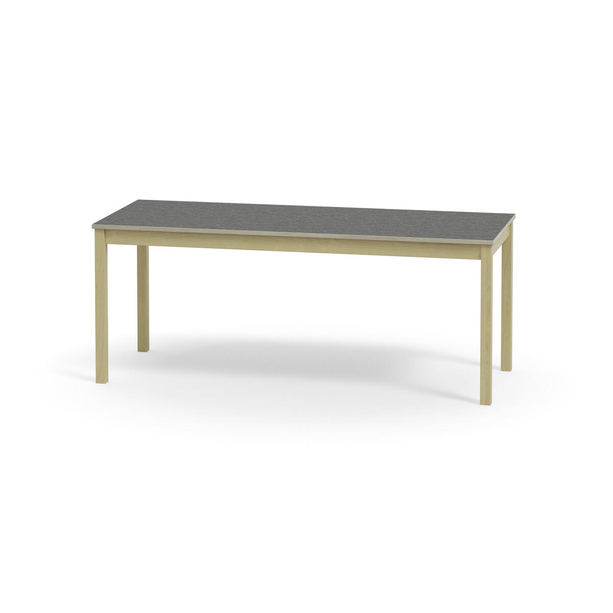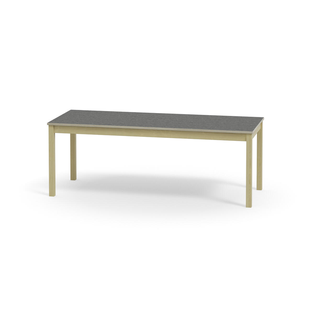 Støydempende bordplate belagt med lydabsorberende og slitesterk Linoleum - et Svanemerket naturmateriale helt uten PVC og ftalater. Understell i massivt tre.