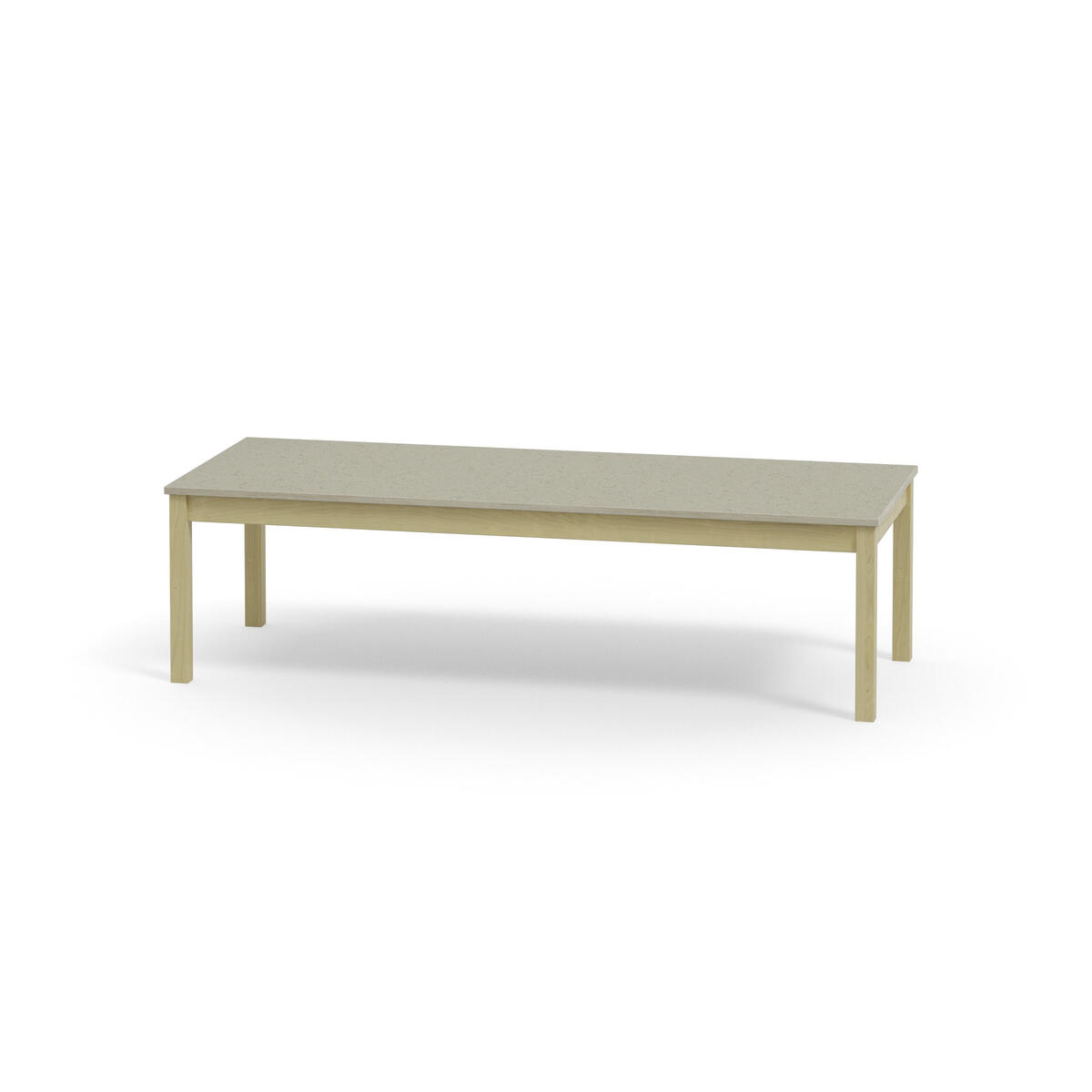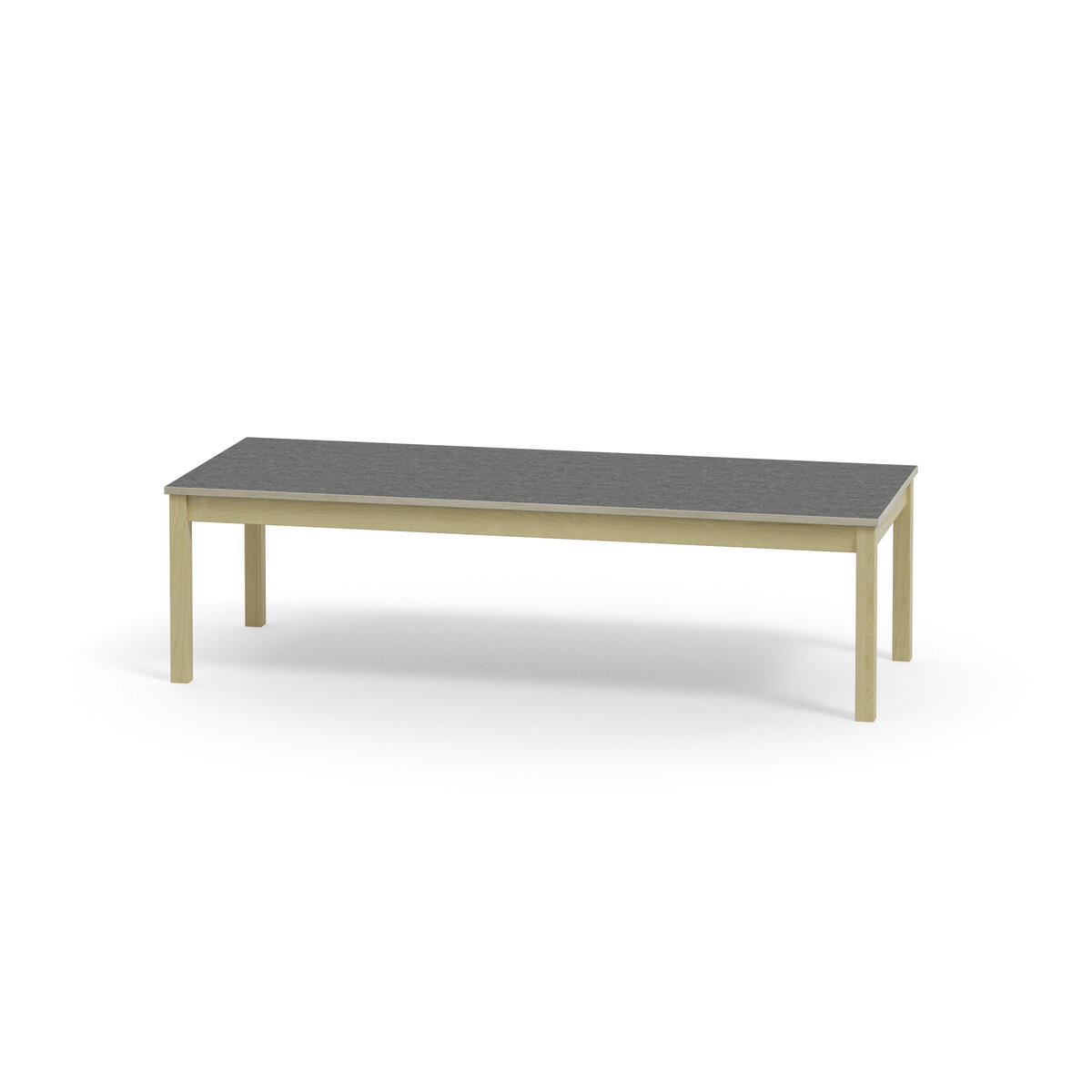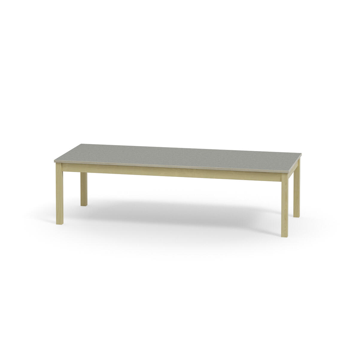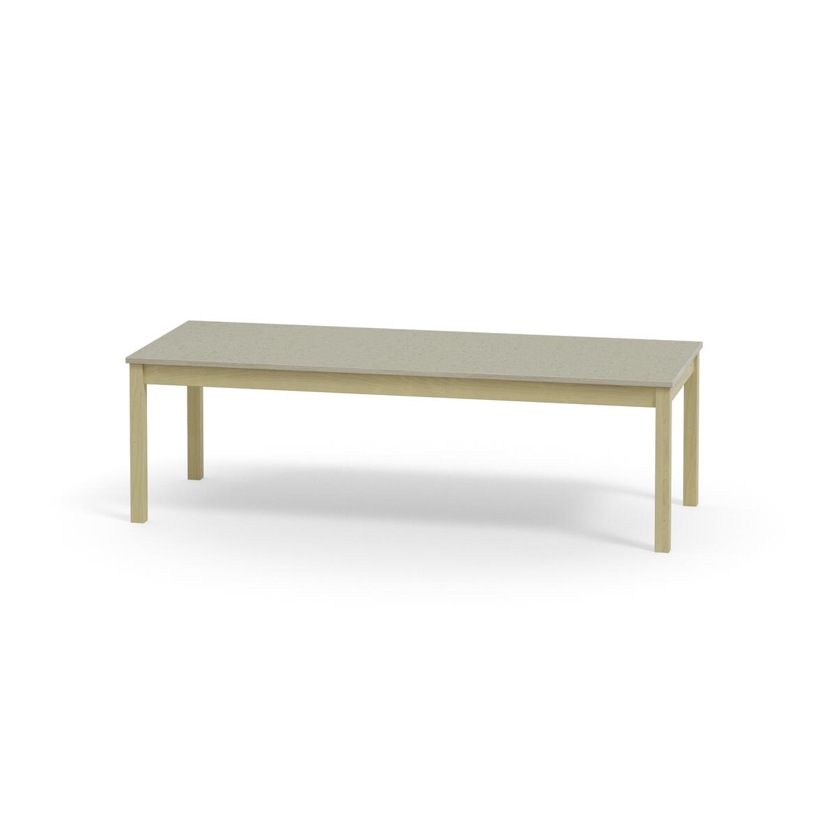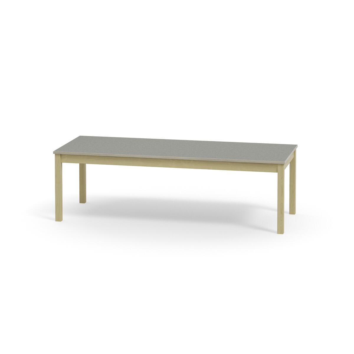 Støydempende bordplate belagt med lydabsorberende og slitesterk Linoleum - et Svanemerket naturmateriale helt uten PVC og ftalater. Understell i massivt tre.
