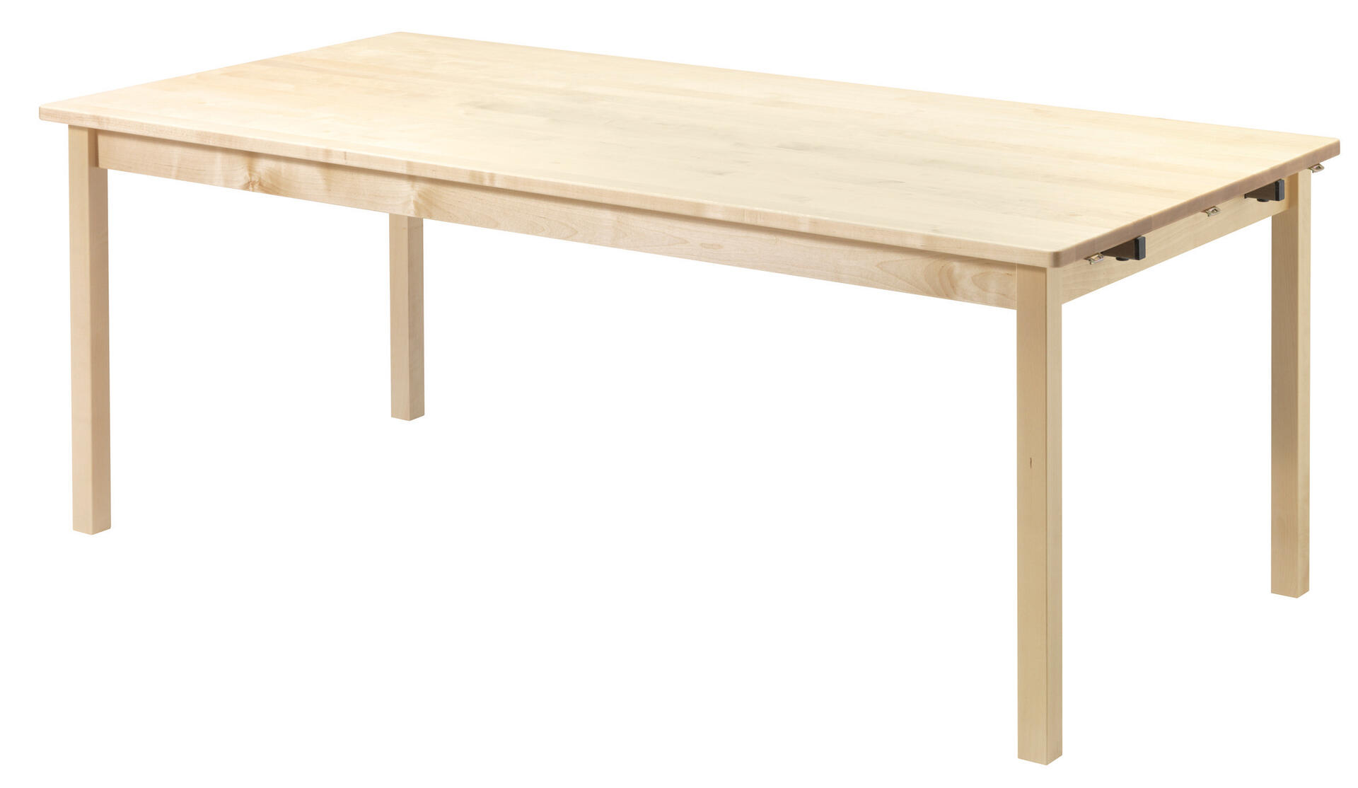 Støydempende bordplate belagt med lydabsorberende og slitesterk Linoleum - et Svanemerket naturmateriale helt uten PVC og ftalater. Understell i massivt tre.
