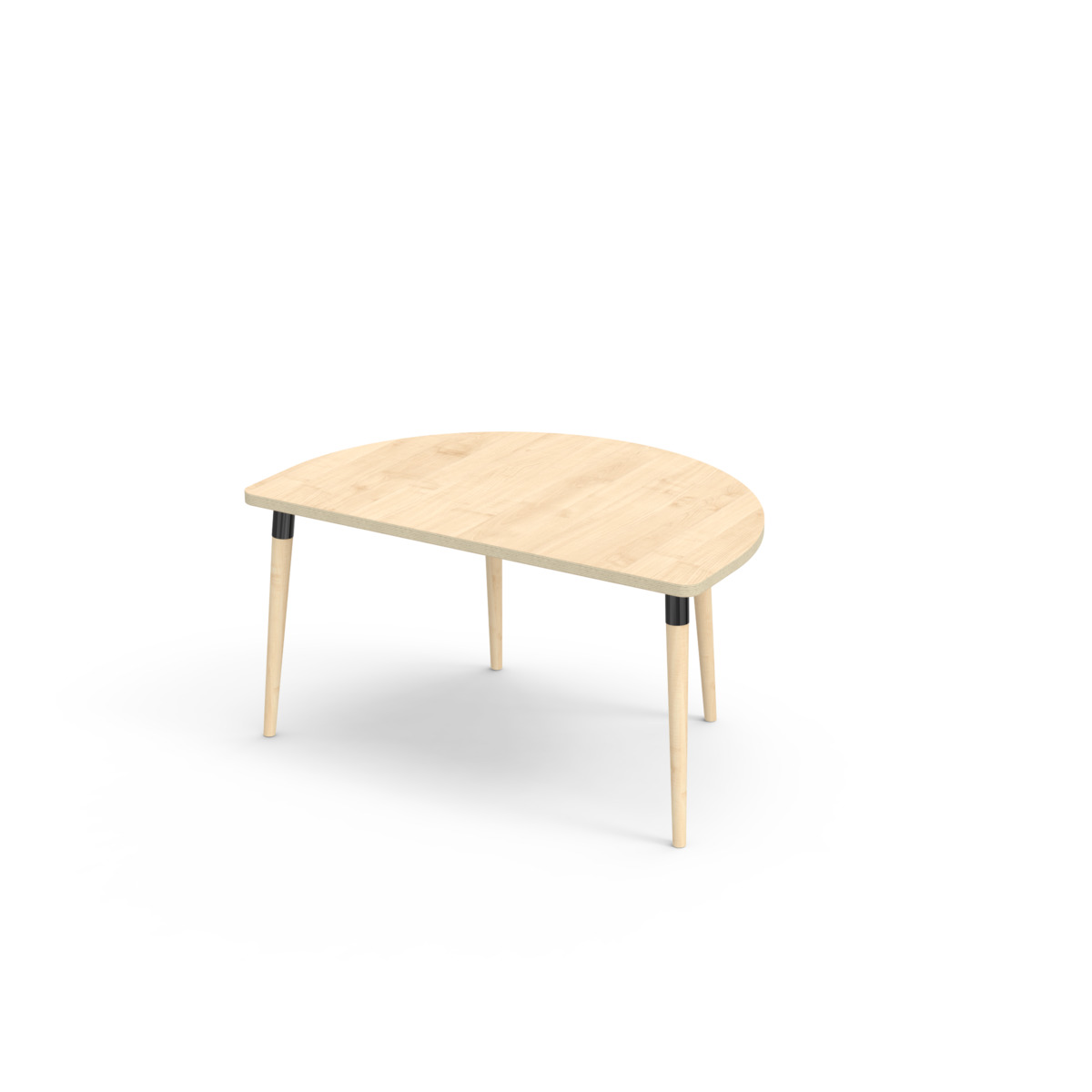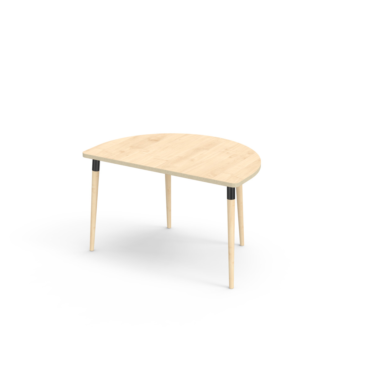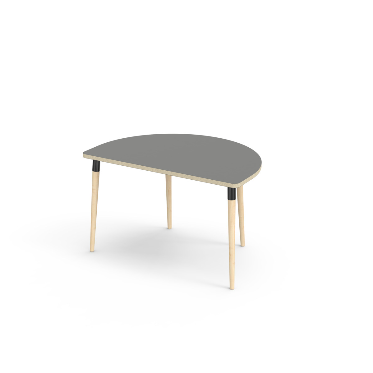 Lydabsorberende bordplate belagt med høytrykkslaminat, som gir en slitesterk overflate. Med en hjørneradius på 40 mm får bordet et moderne og stilig design. Bena er koniske og laget av klarlakkert massiv bjørk og montert i en solid svart metallhylse. Denne konstruksjonen sikrer både stabilitet og holdbarhet. Bena er litt vinklet ut mot hjørnene på bordplaten, noe som gir bordet et unikt og estetisk tiltalende utseende. Monteringen er enkel – du trenger bare å feste metallhylsene tilfestepunktene i bordplaten.