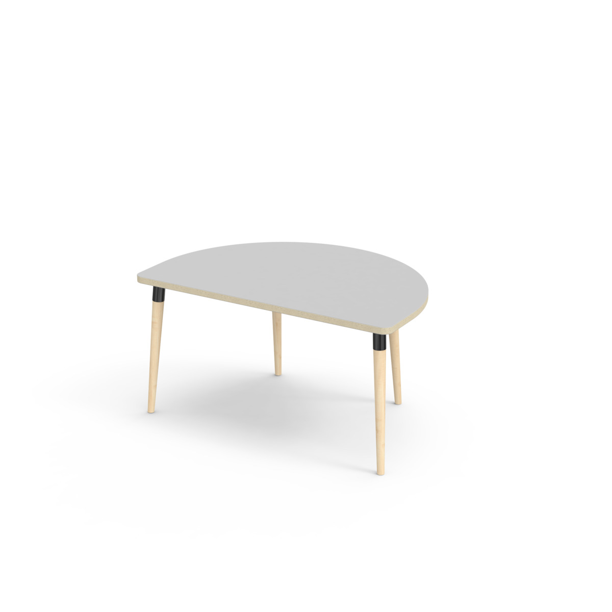 Lydabsorberende bordplate belagt med høytrykkslaminat, som gir en slitesterk overflate. Med en hjørneradius på 40 mm får bordet et moderne og stilig design. Bena er koniske og laget av klarlakkert massiv bjørk og montert i en solid hvit metallhylse. Denne konstruksjonen sikrer både stabilitet og holdbarhet. Bena er litt vinklet ut mot hjørnene på bordplaten, noe som gir bordet et unikt og estetisk tiltalende utseende. Monteringen er enkel – du trenger bare å feste metallhylsene tilfestepunktene i bordplaten.