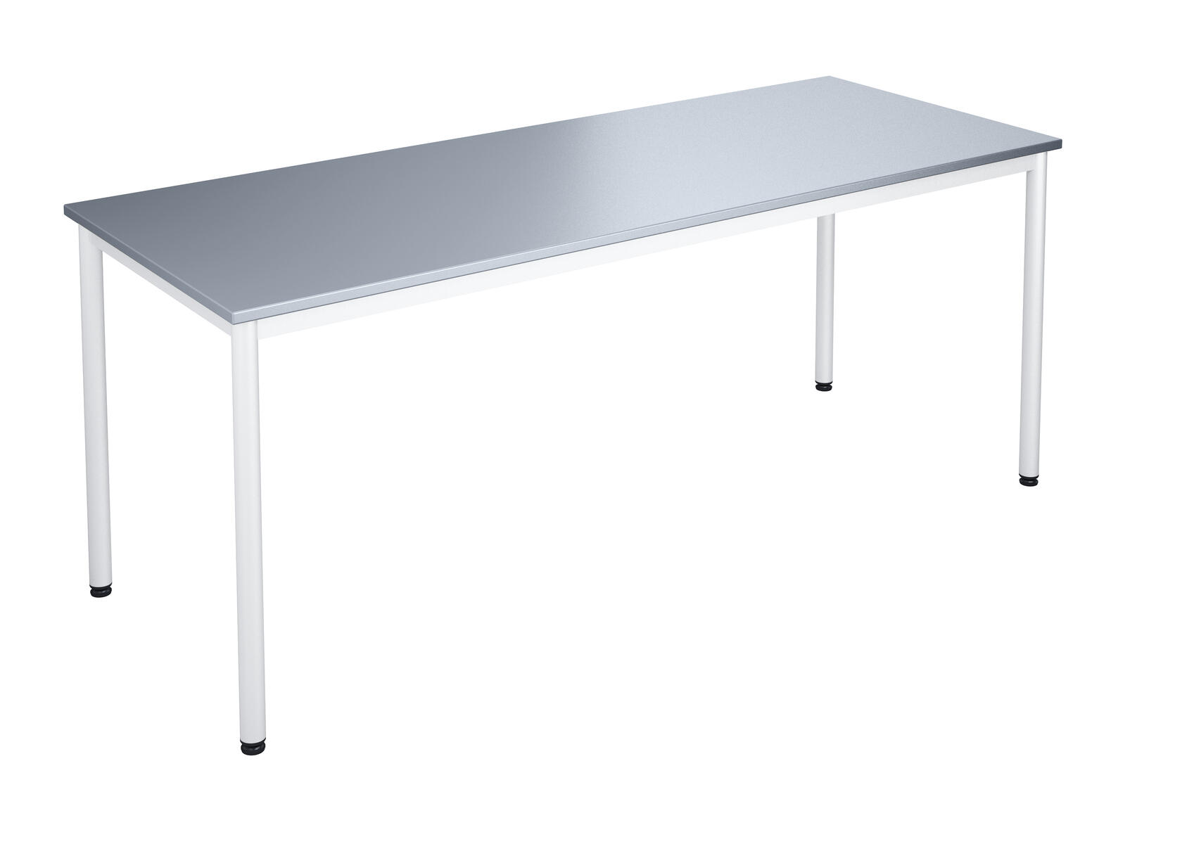 Bordplaten med kjerne av møbelspon, støydempende korkbelegg under høytrykkslaminat, 0,7 mm. Høytrykk sperrelaminat på undersiden av bordplate. Kraftig slagfast 2 mm ABS kantlist, rett kant. Understell i stål med helsveisede sarger, u-bjelkeforsterkninger i hjørnene. Runde ben Ø40 mm. Med stillskrue for tilpasning til ujevne underlag. Epoxylakkert understell i sølvgrå RAL9006.
