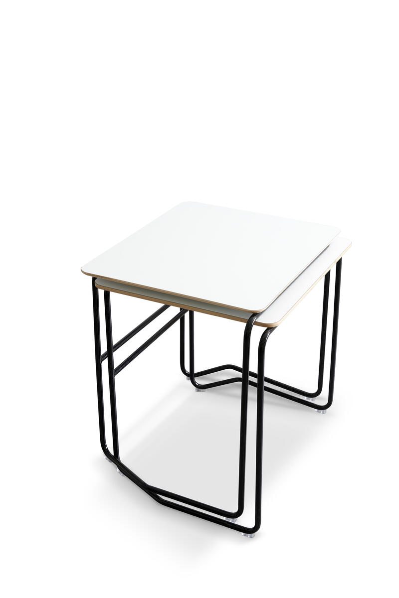 Elevbord som er enkelt å flytte og kan stables. Bordene kan kobles sammen i sidene. Hvitt understell. Bordplate i høytrykkslaminat med kjerne i kryssfiner. Den svarte bordplaten er i Fenix-laminat som stort sett ikke etterlater avtrykk etter berøring og er ekstra motstandsdyktig mot riper og slitasje.