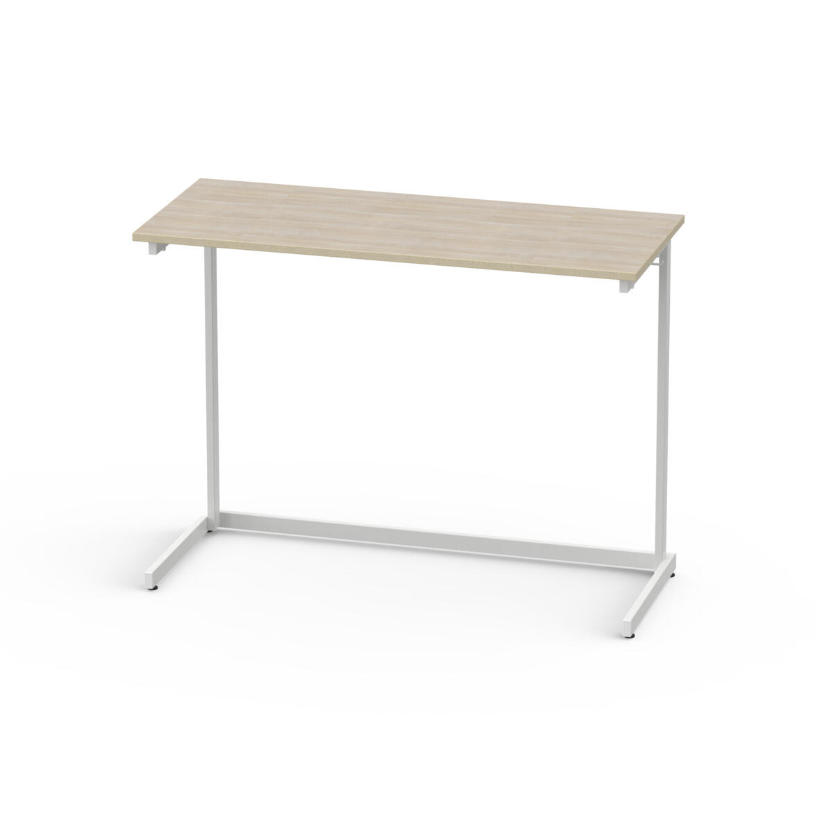 Bordet Lex har et L‑formet design på understellet, noe som gjør det mulig å stable bordene (maks 6 stk.) oppå hverandre. Utstyrt med veskekrok. Helsveiset understell i hvit, RAL 9003. Bordplate i laminat. Fire justerbare føtter. Som tilvalg kan du få montert skinner under bordplaten som fungerer med oppbevaringsboks, art.nr. 23416.