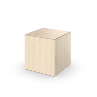 Scenemoduler med riflet overflate i fenolfilm for bedre grep og sklisikring. Med utfreste hull til håndtak. Av hvitpigmentert bjørk kryssfiner med grå topp. Innhold: 8 firkanter, 4 rektangler, 2 trekanter og 1 scenetrapp. Høyde 30 cm.
