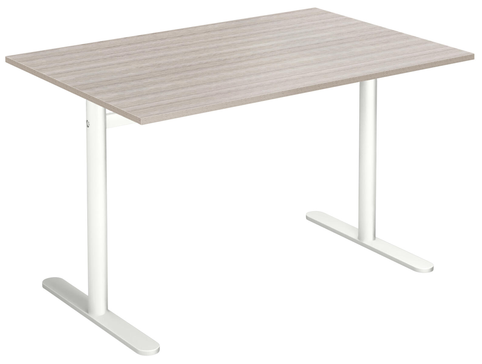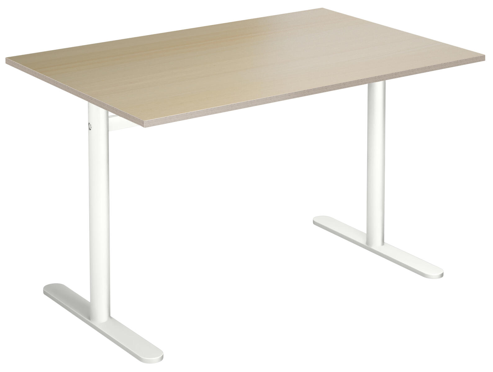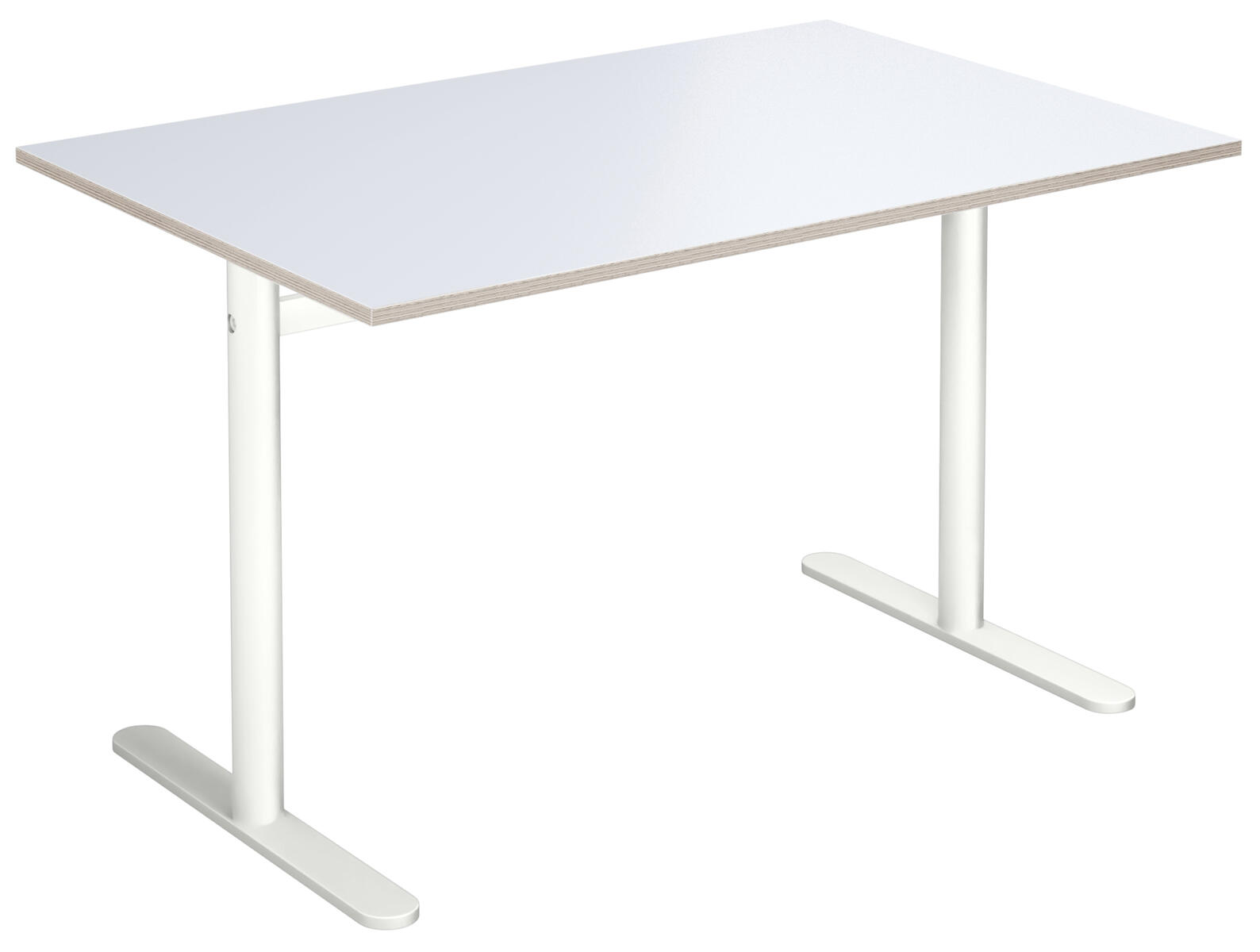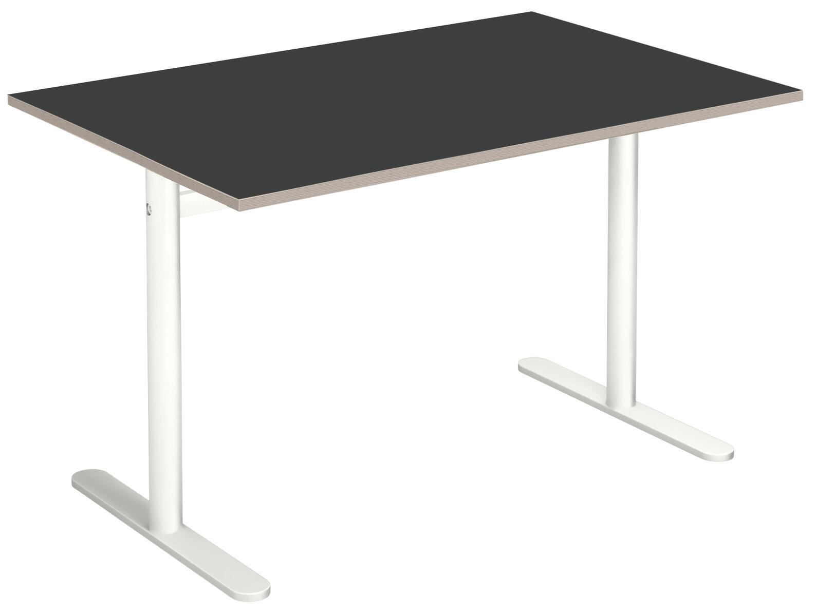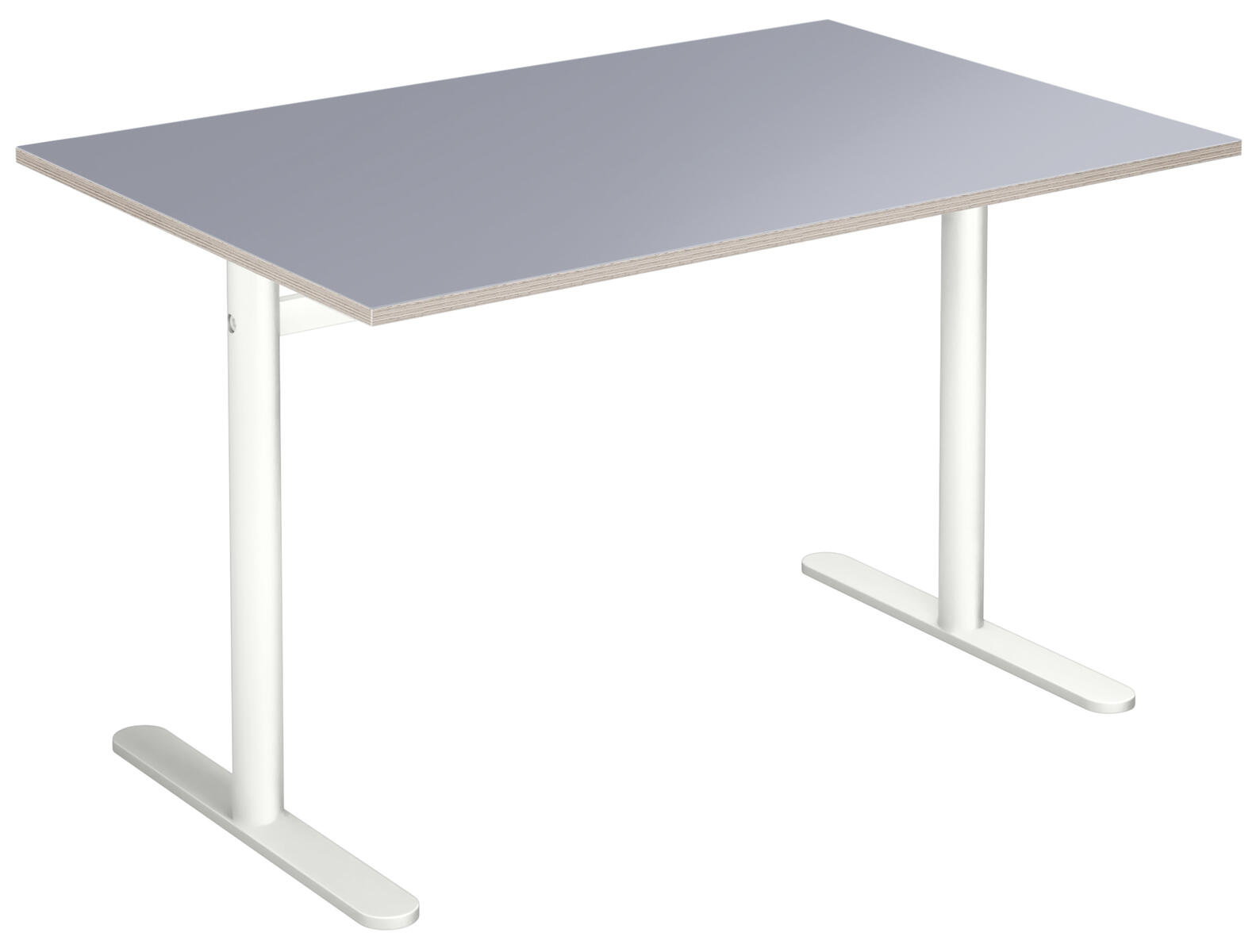 Bordplate i høytrykkslaminat. T-understell lakkert i hvit RAL 9003.