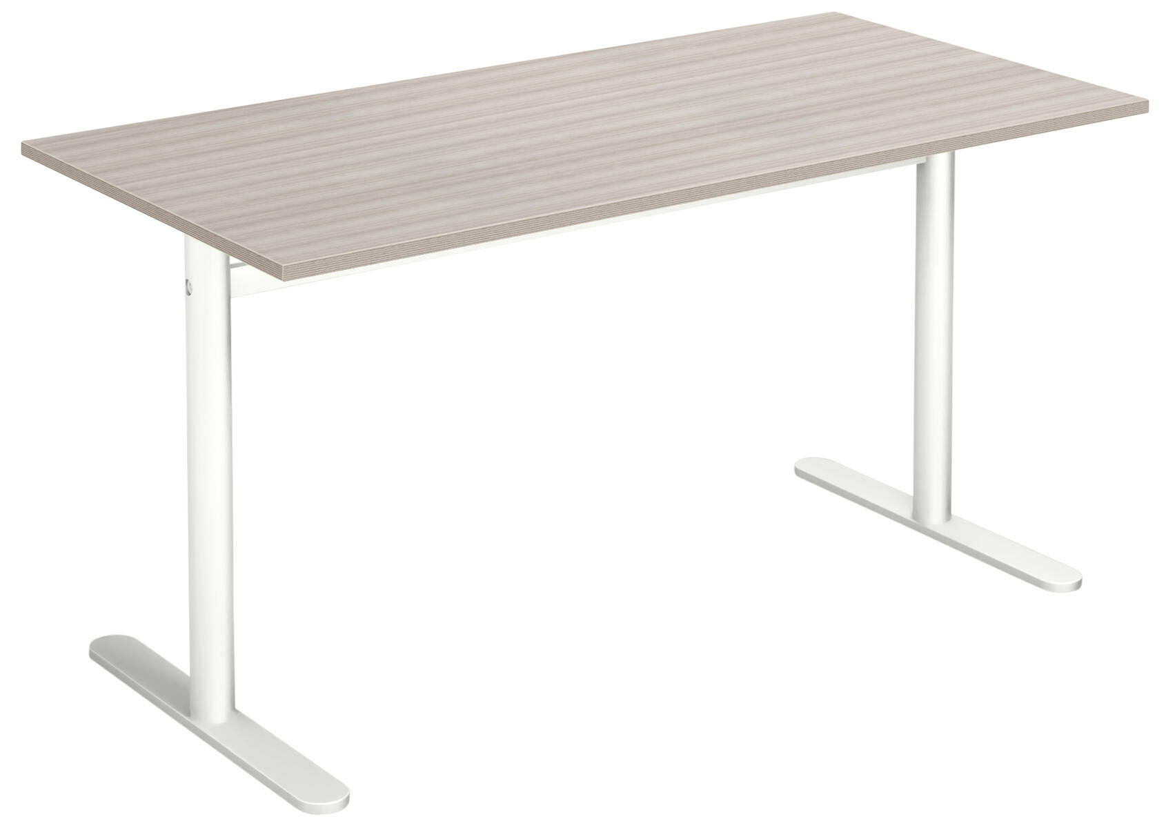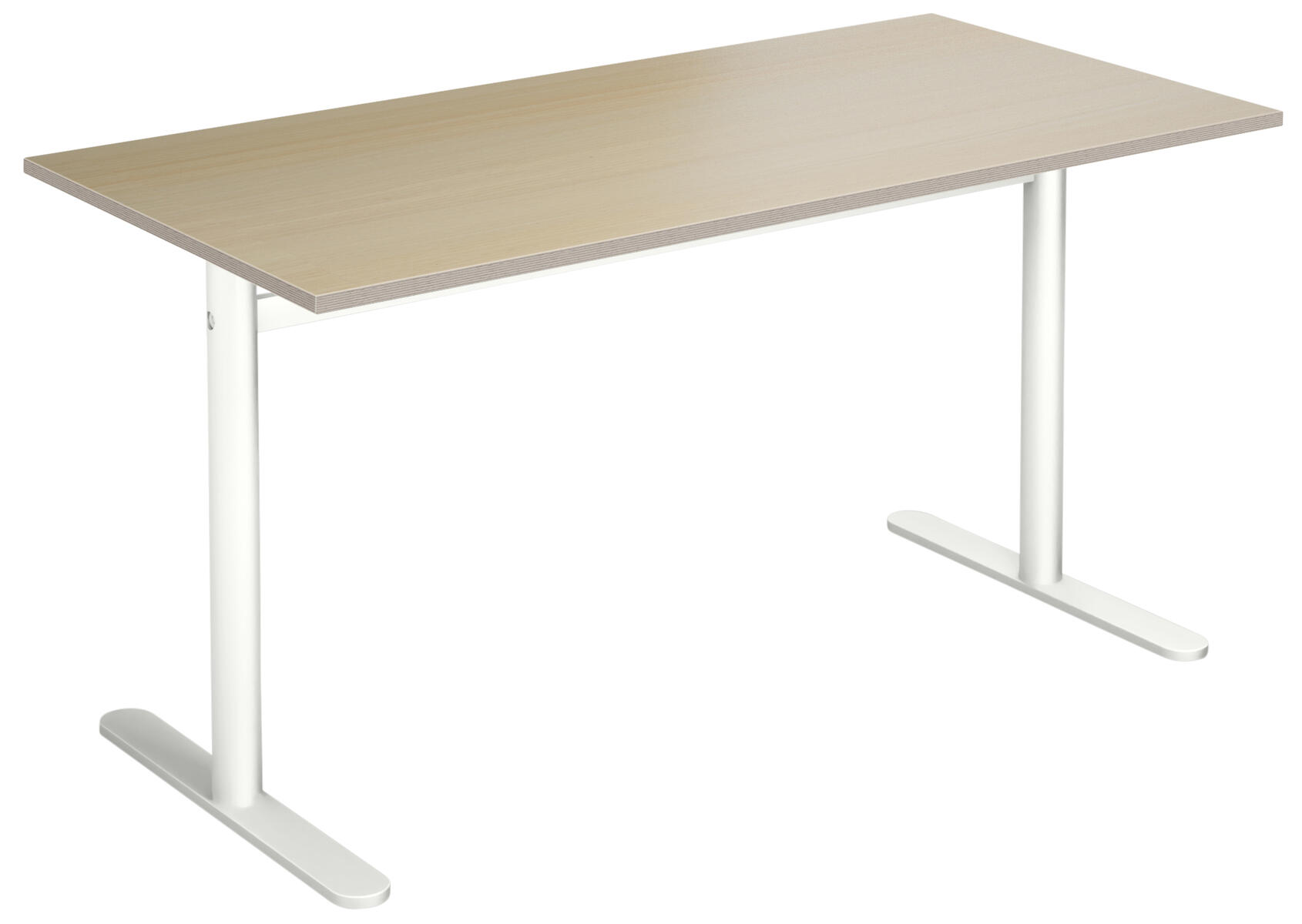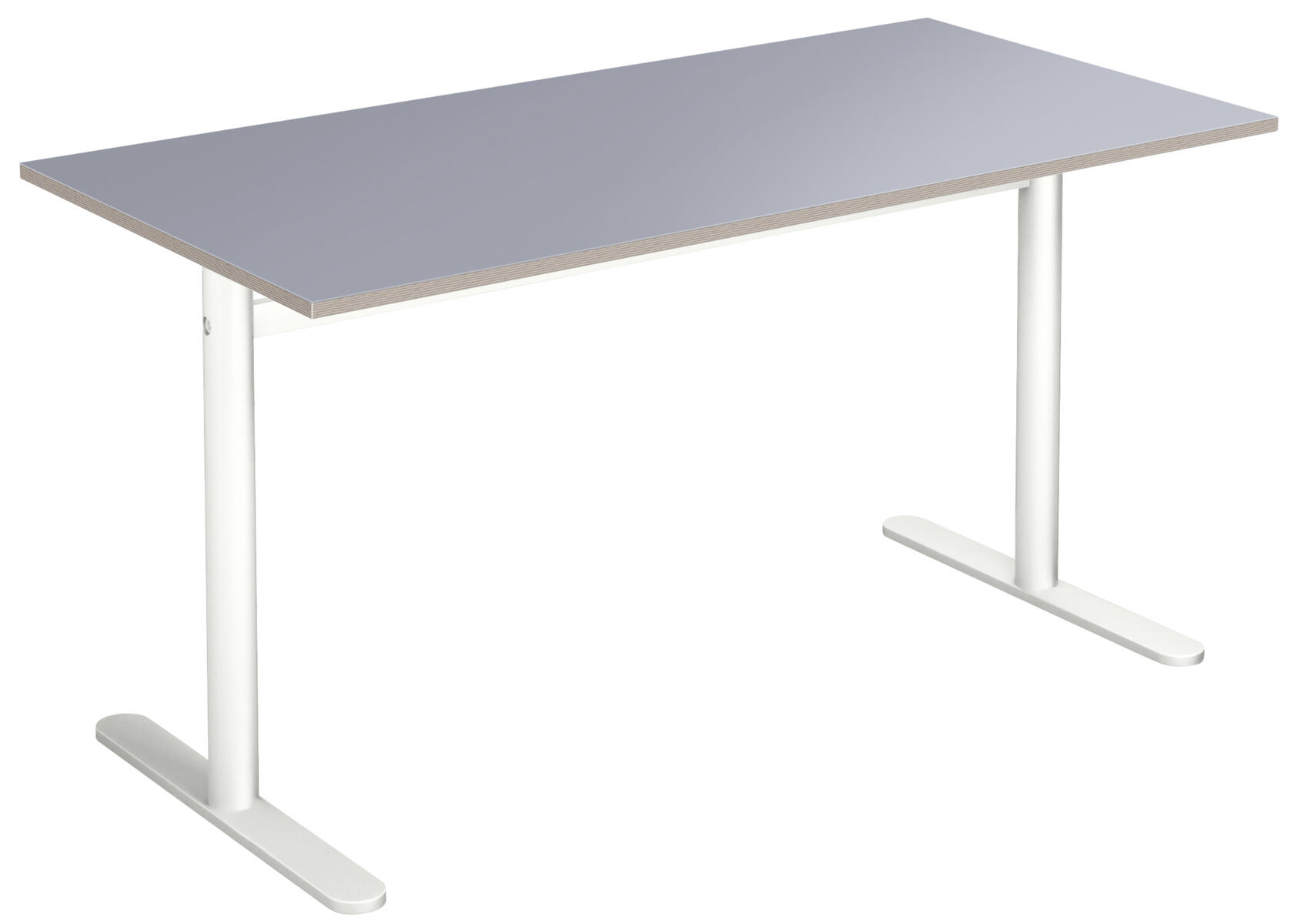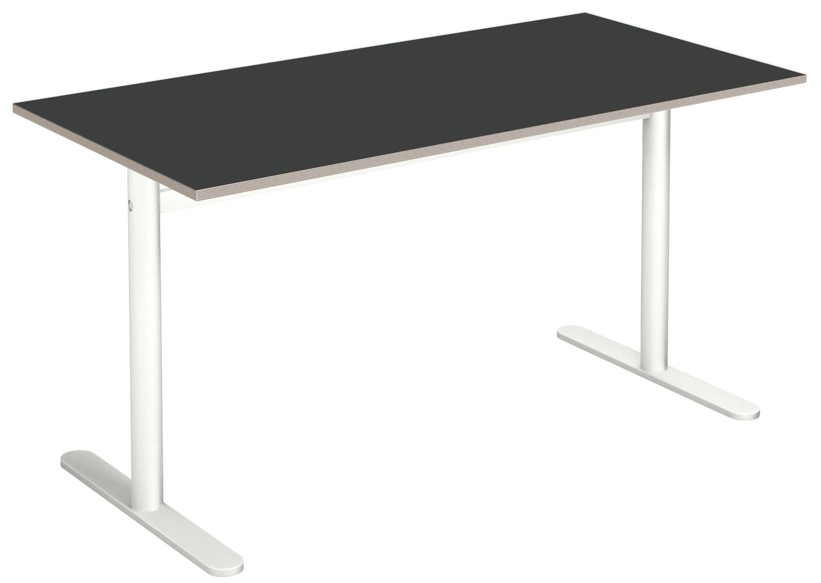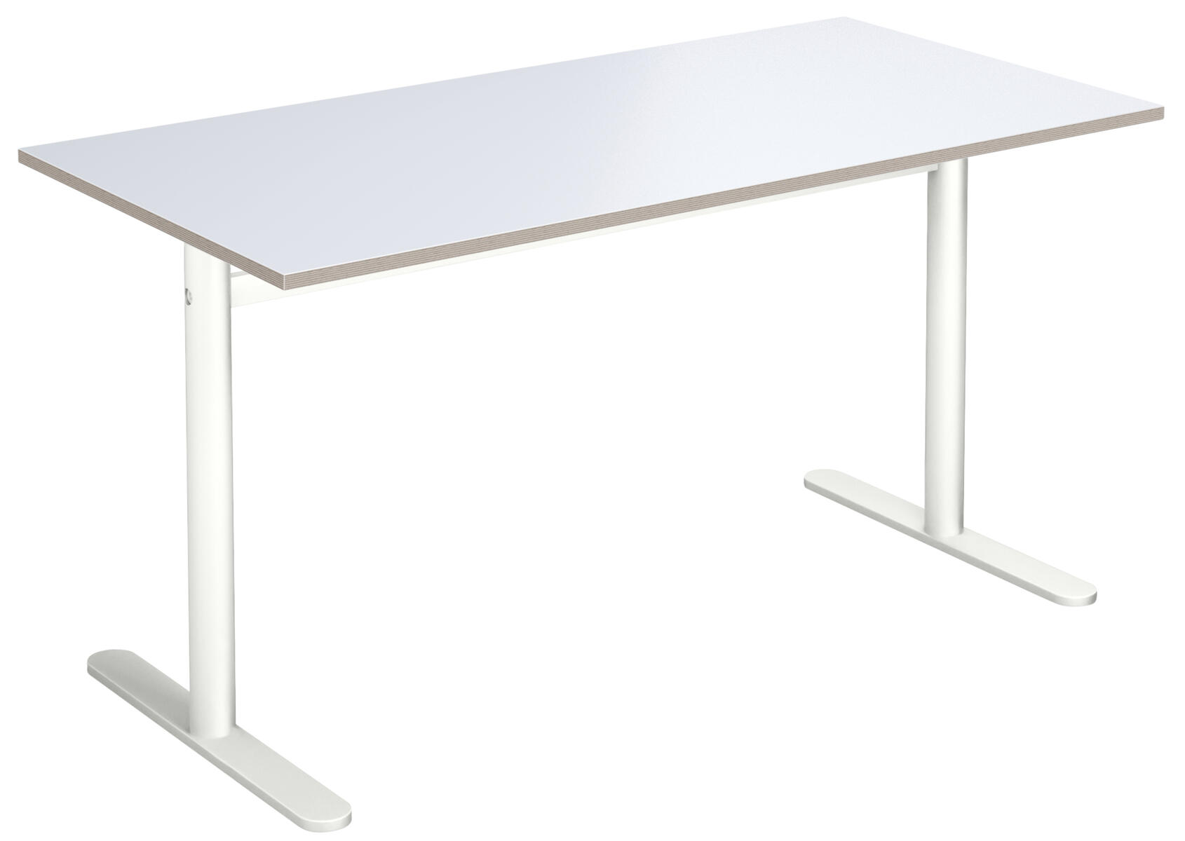 Bordplate i høytrykkslaminat. T-understell lakkert i hvit RAL 9003.