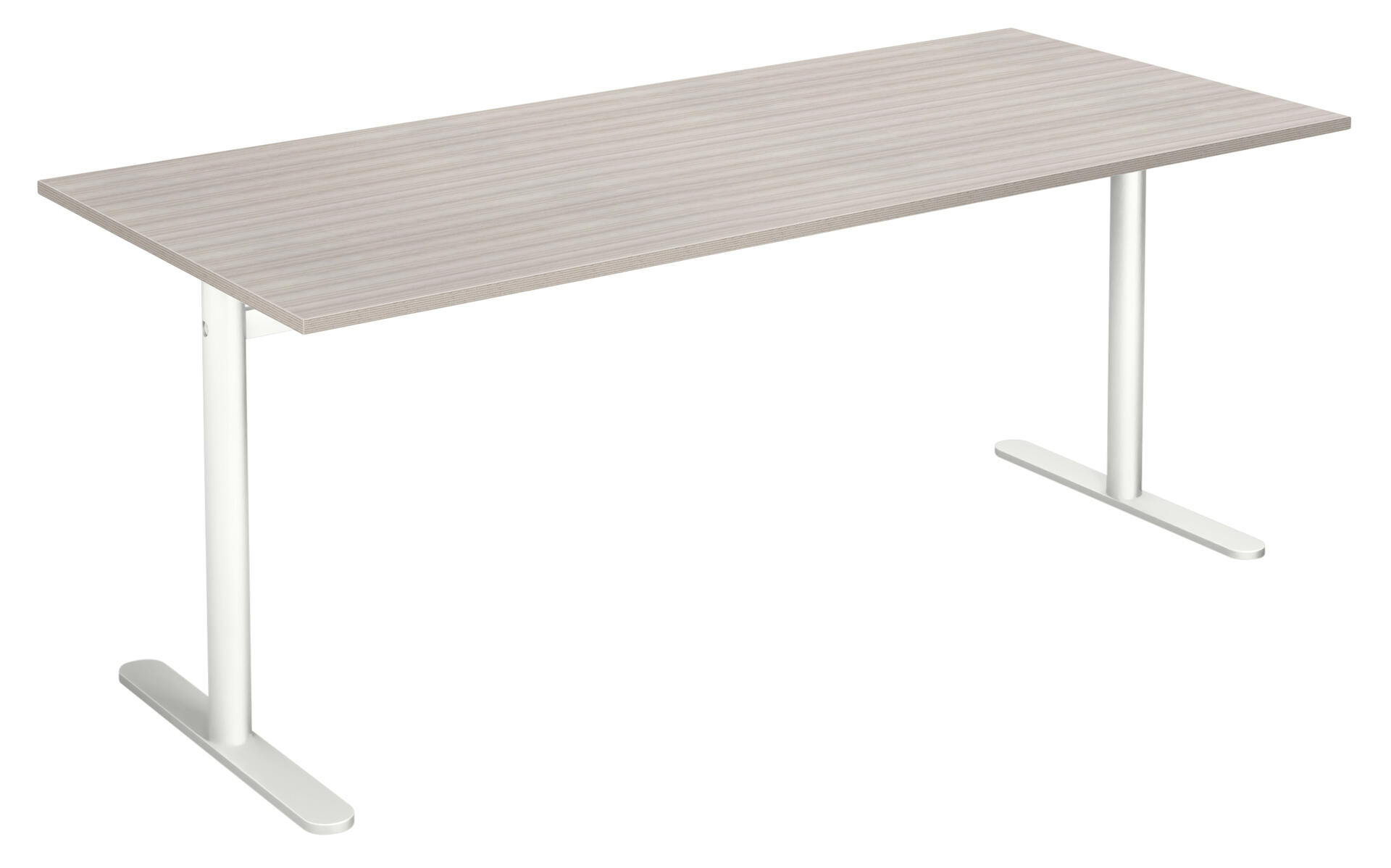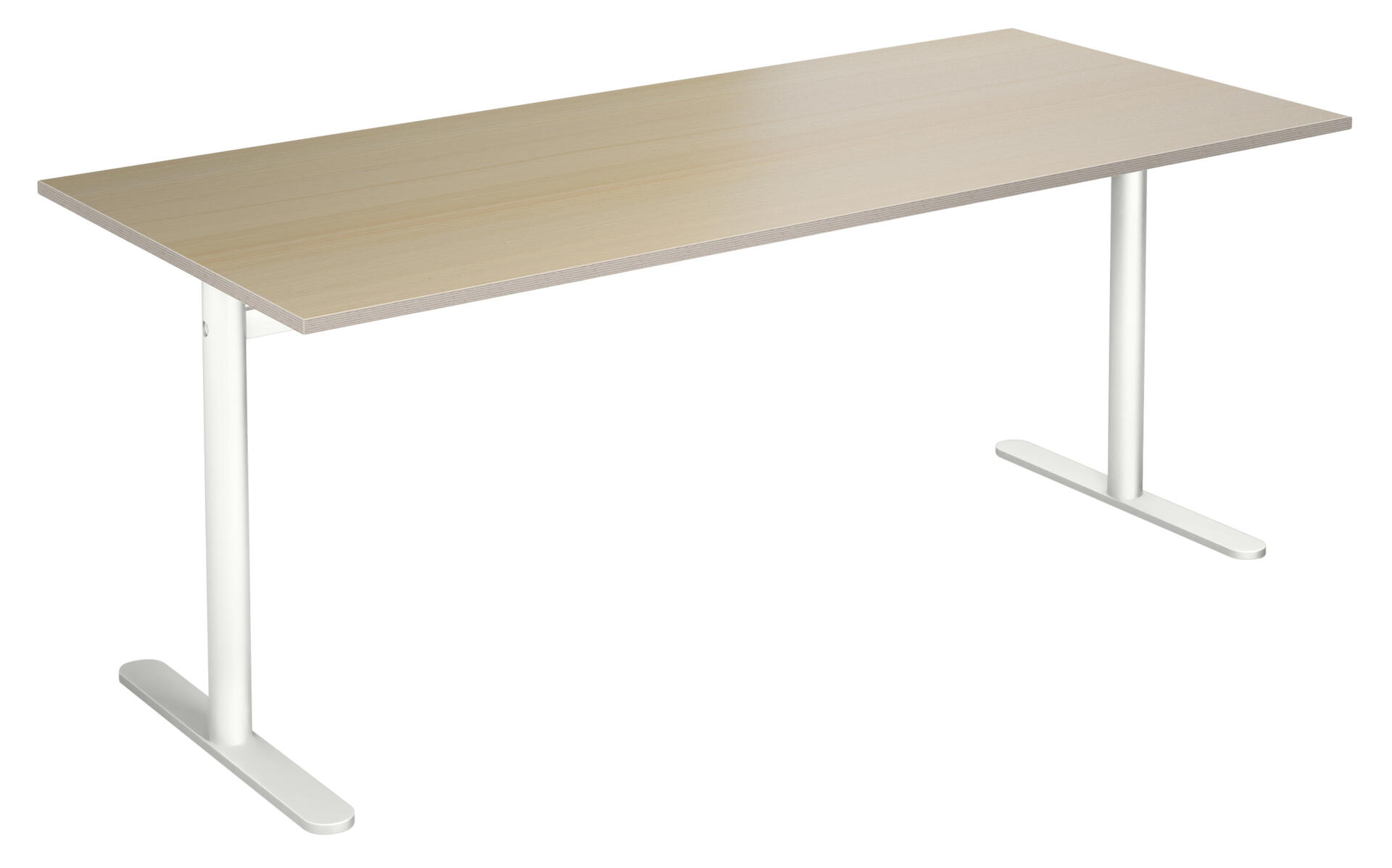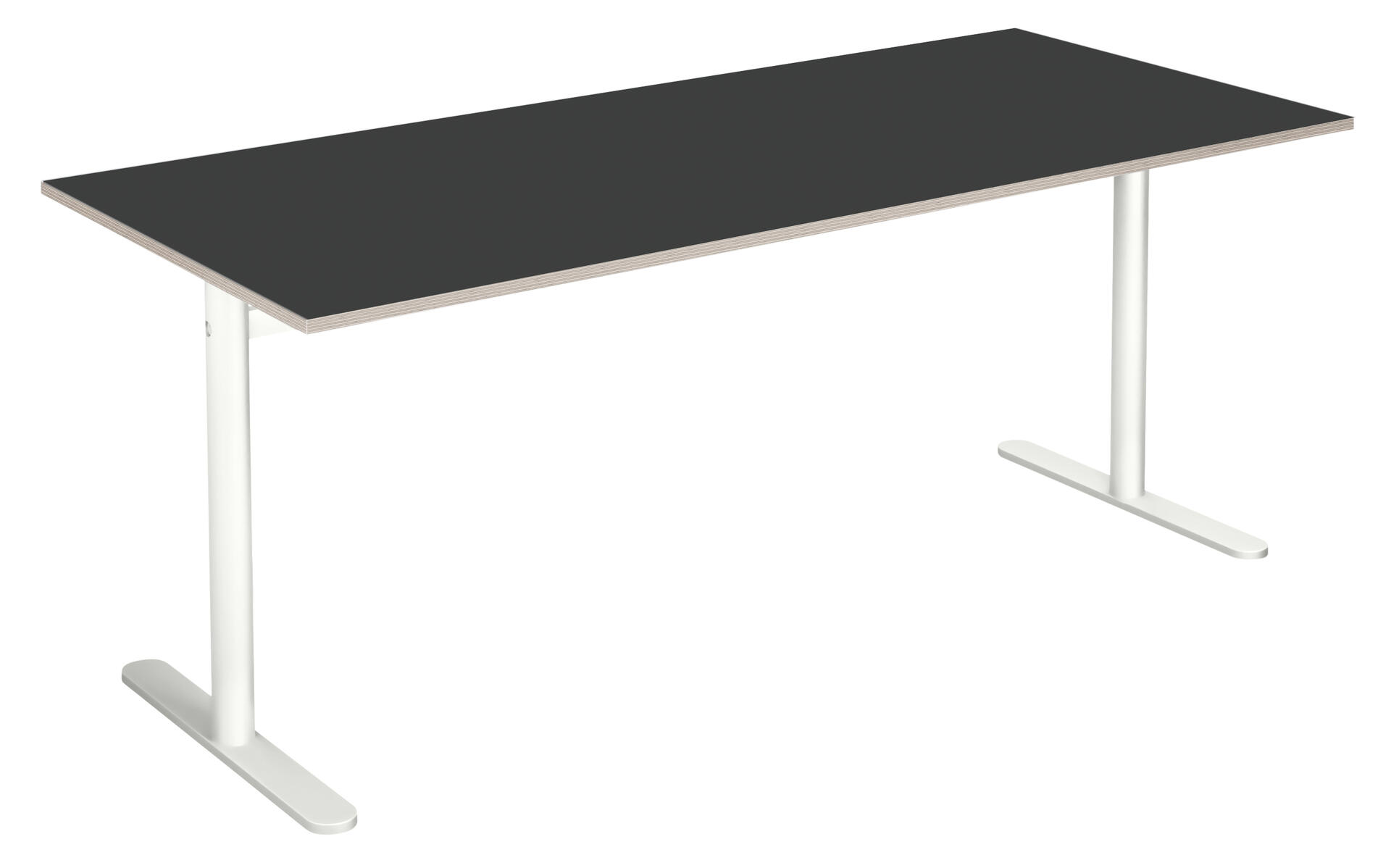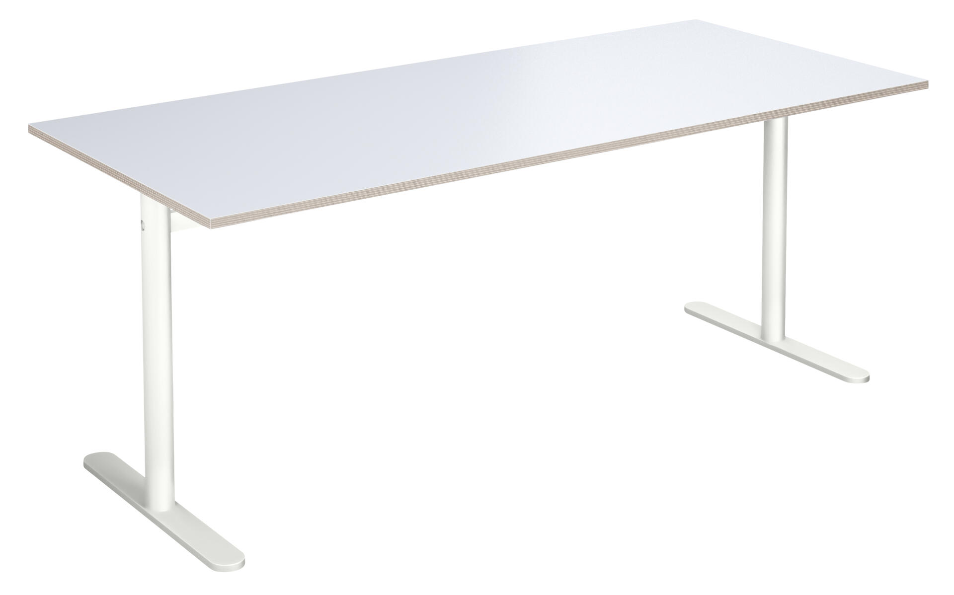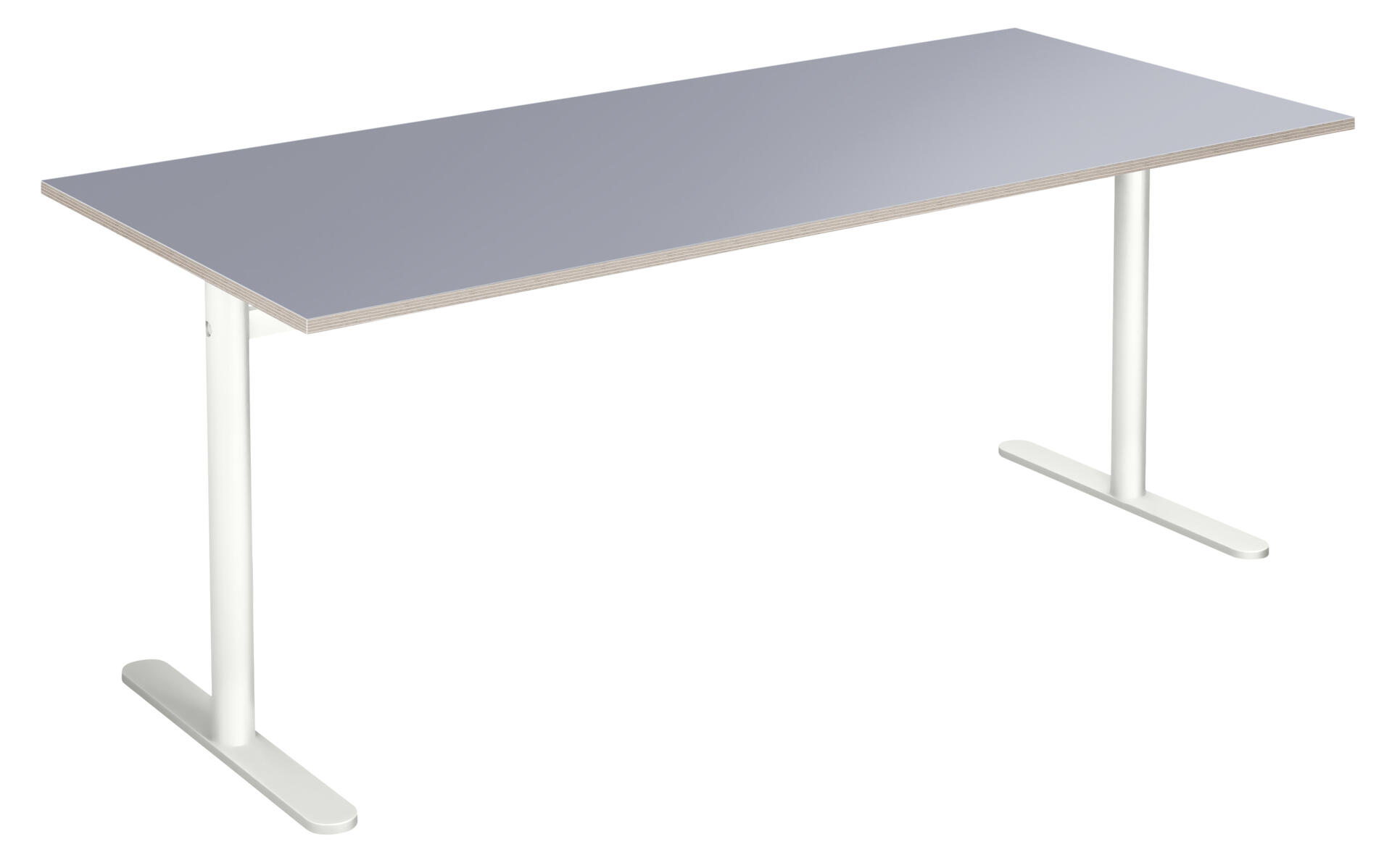 Bordplate i høytrykkslaminat. T-understell lakkert i hvit RAL 9003.