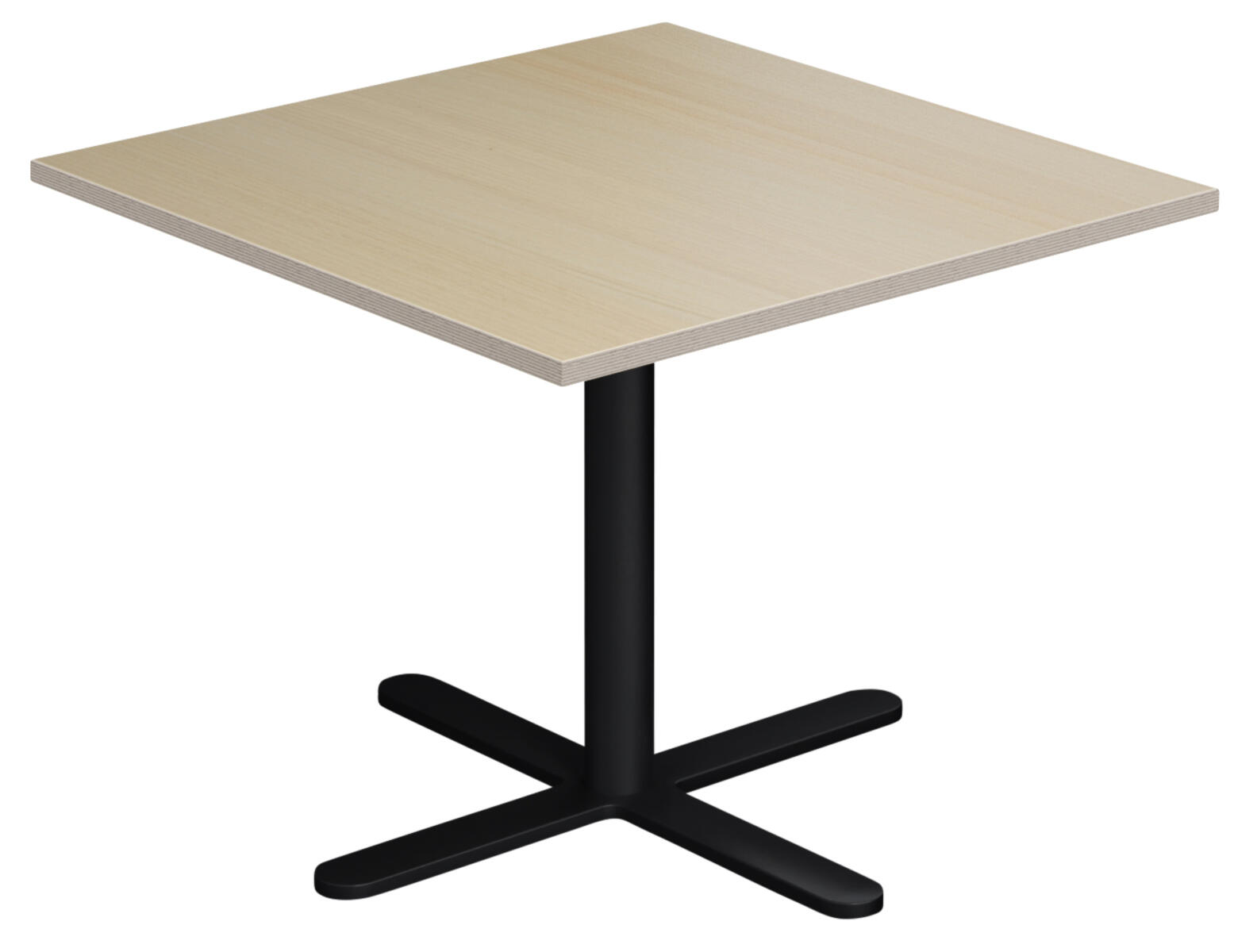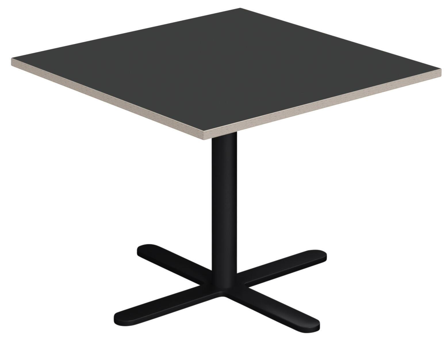 Bordplate i høytrykkslaminat. X-understell lakkert i svart RAL 9005.