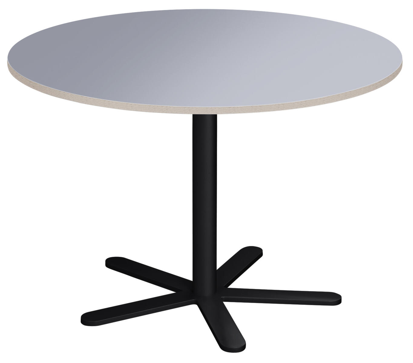 Bordplate i høytrykkslaminat. Epoxylakkert understell i sølv, Ral 9006.