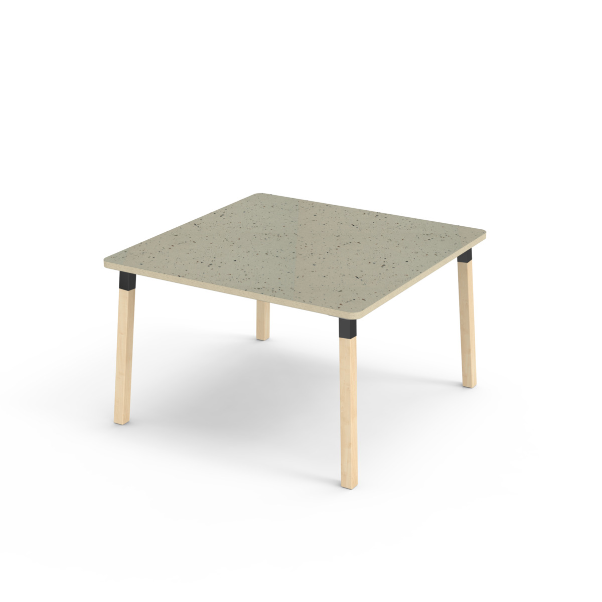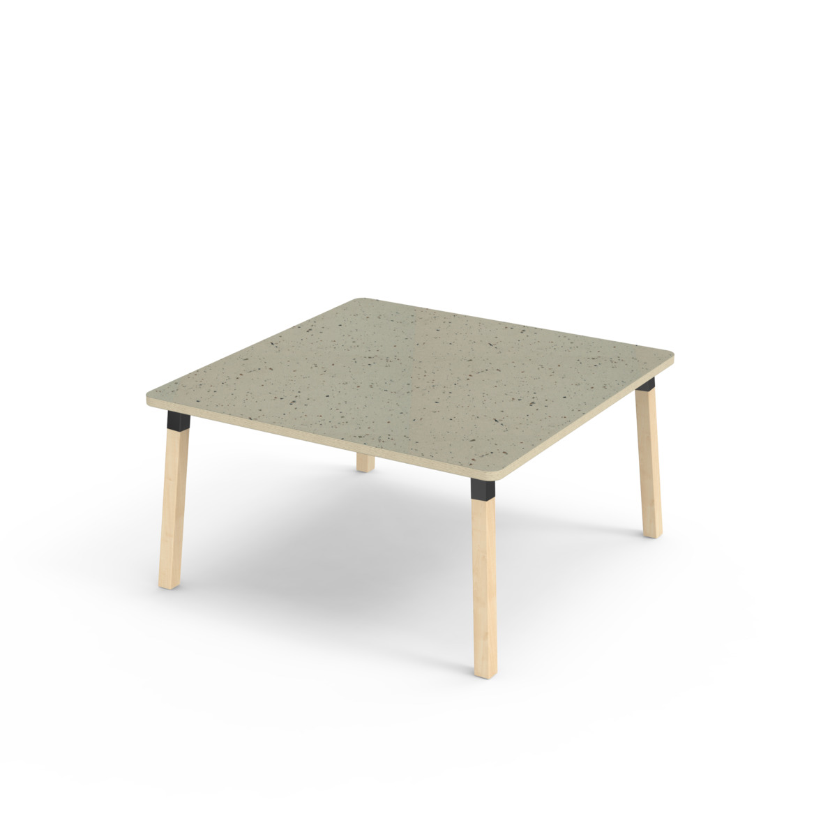Lydabsorberende bordplate belagt med høytrykkslaminat, noe som gir en slitesterk overflate. Bordet har en hjørneradius på 40 mm og et moderne og stilrent design. Bena er laget av klarlakkert massiv bjørk og montert i en robust, hvit metallmansjett. Denne konstruksjonen sikrer både stabilitet og holdbarhet. Bena er lett vinklet mot hjørnene av bordplaten, noe som gir bordet et unikt og estetisk tiltalende utseende. Monteringen er enkel og lett - du trenger bare å feste metallhylsene til festepunktene i bordplaten.