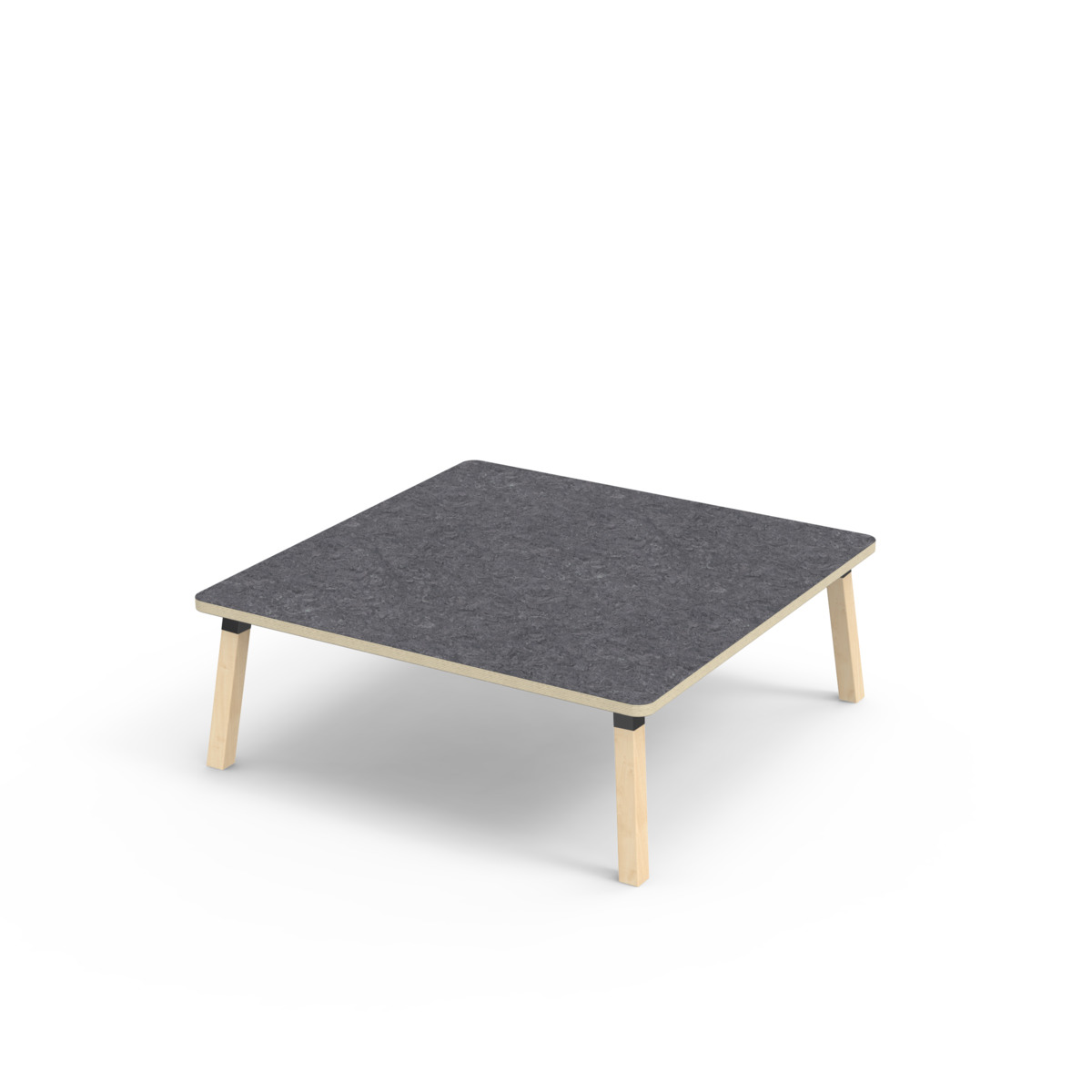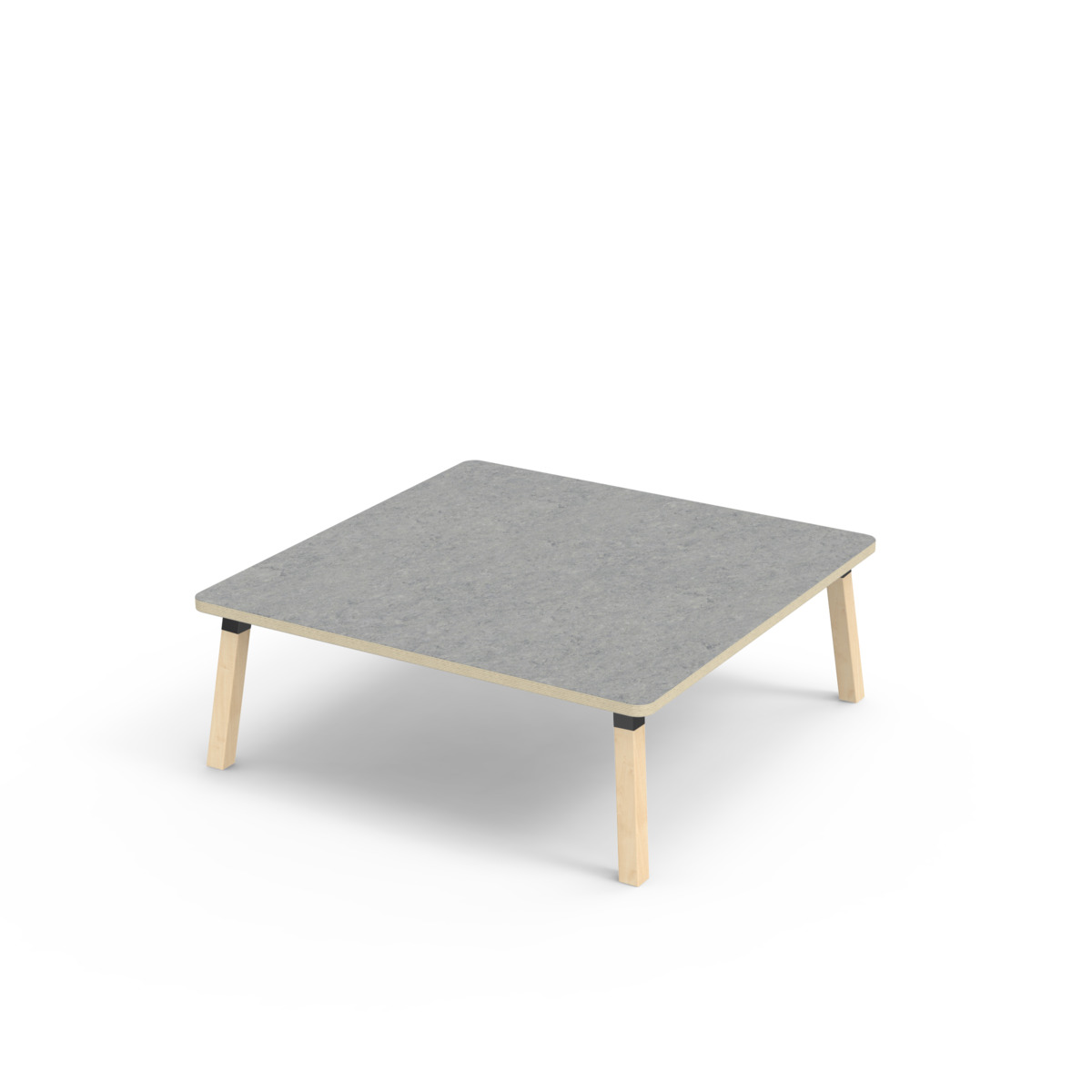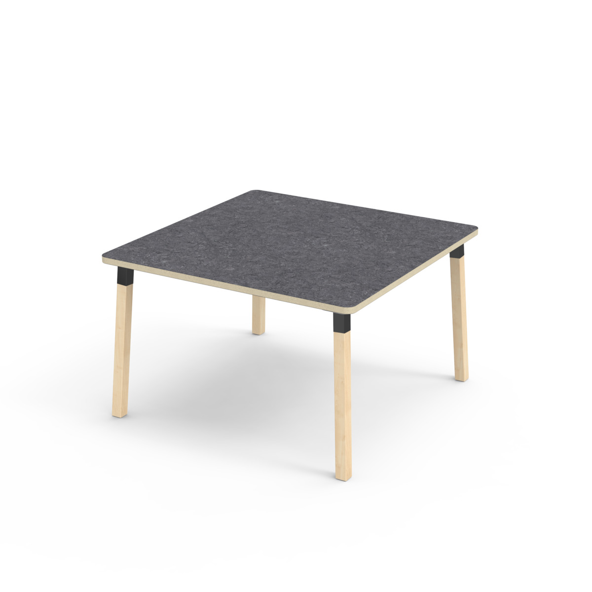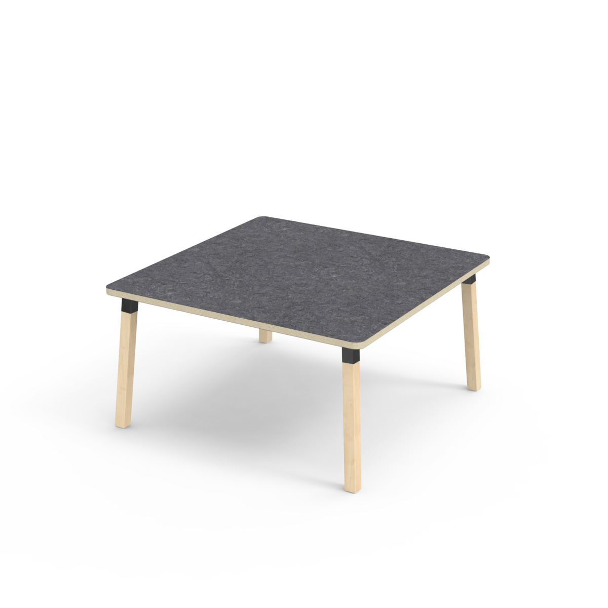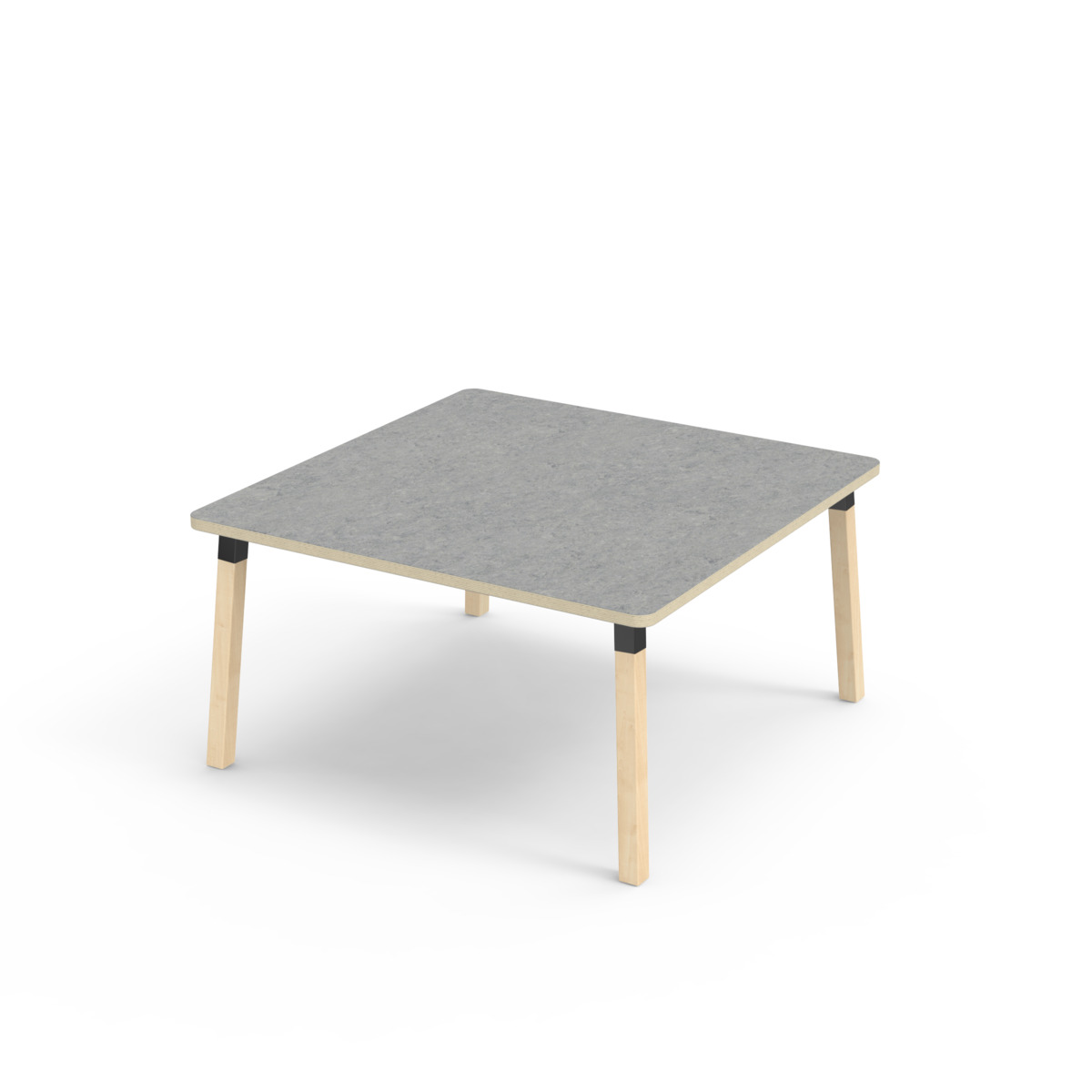 Bordplaten er belagt med akustisk linoleum, som gir en myk og behagelig overflate samtidig som den bidrar til et bedre lydmiljø. Bordet har en hjørneradius på 40 mm og et moderne og stilrent design. Bena er laget av klarlakkert massiv bjørk og montert i en robust, svart metallmansjett. Denne konstruksjonen sikrer både stabilitet og holdbarhet. Bena er lett vinklet mot hjørnene av bordplaten, noe som gir bordet et unikt og estetisk tiltalende utseende. Monteringen er enkel og lett - du trenger bare å feste metallhylsene til festepunktene i bordplaten.