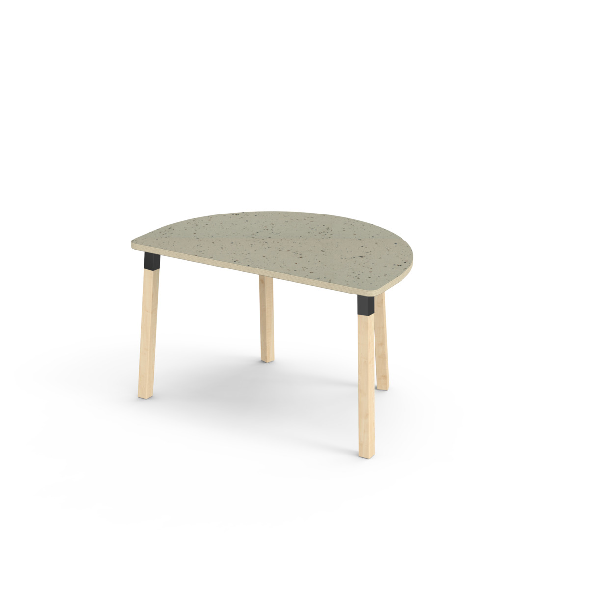 Lydabsorberende bordplate belagt med høytrykkslaminat, noe som gir en slitesterk overflate. Bordet har en hjørneradius på 40 mm og et moderne og stilrent design. Bena er laget av klarlakkert massiv bjørk og montert i en robust, svart metallmansjett. Denne konstruksjonen sikrer både stabilitet og holdbarhet. Bena er lett vinklet mot hjørnene av bordplaten, noe som gir bordet et unikt og estetisk tiltalende utseende. Monteringen er enkel og lett - du trenger bare å feste metallhylsene til festepunktene i bordplaten.
