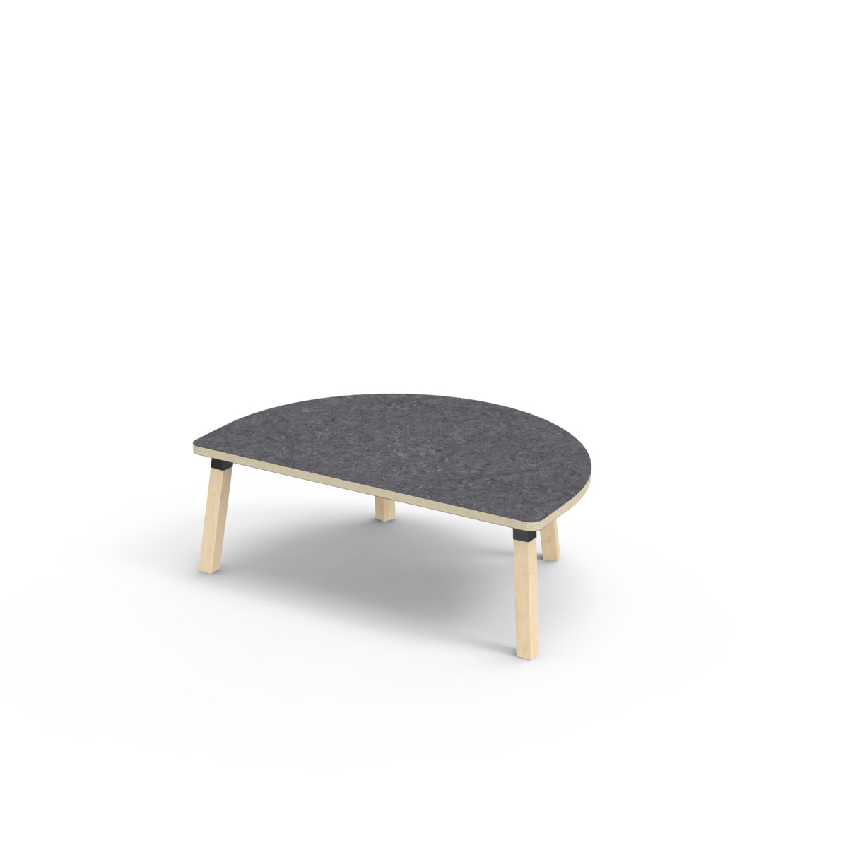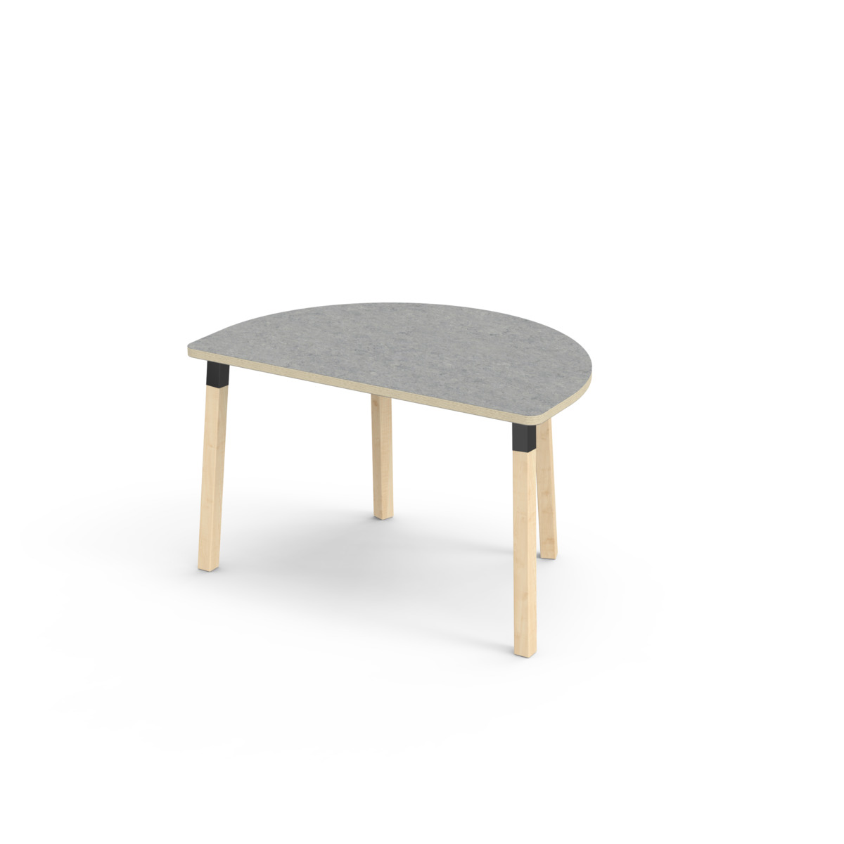 Bordplaten er belagt med akustisk linoleum, som gir en myk og behagelig overflate samtidig som den bidrar til et bedre lydmiljø. Bordet har en hjørneradius på 40 mm og et moderne og stilrent design. Bena er laget av klarlakkert massiv bjørk og montert i en robust, svart metallmansjett. Denne konstruksjonen sikrer både stabilitet og holdbarhet. Bena er lett vinklet mot hjørnene av bordplaten, noe som gir bordet et unikt og estetisk tiltalende utseende. Monteringen er enkel og lett - du trenger bare å feste metallhylsene til festepunktene i bordplaten.