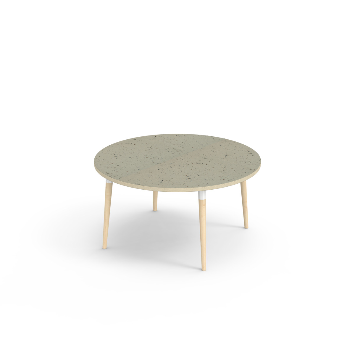 Lydabsorberende bordplate belagt med høytrykkslaminat, som gir en slitesterk overflate. Med en hjørneradius på 40 mm får bordet et moderne og stilig design. Bena er koniske og laget av klarlakkert massiv bjørk og montert i en solid hvit metallhylse. Denne konstruksjonen sikrer både stabilitet og holdbarhet. Bena er litt vinklet ut mot hjørnene på bordplaten, noe som gir bordet et unikt og estetisk tiltalende utseende. Monteringen er enkel – du trenger bare å feste metallhylsene tilfestepunktene i bordplaten.