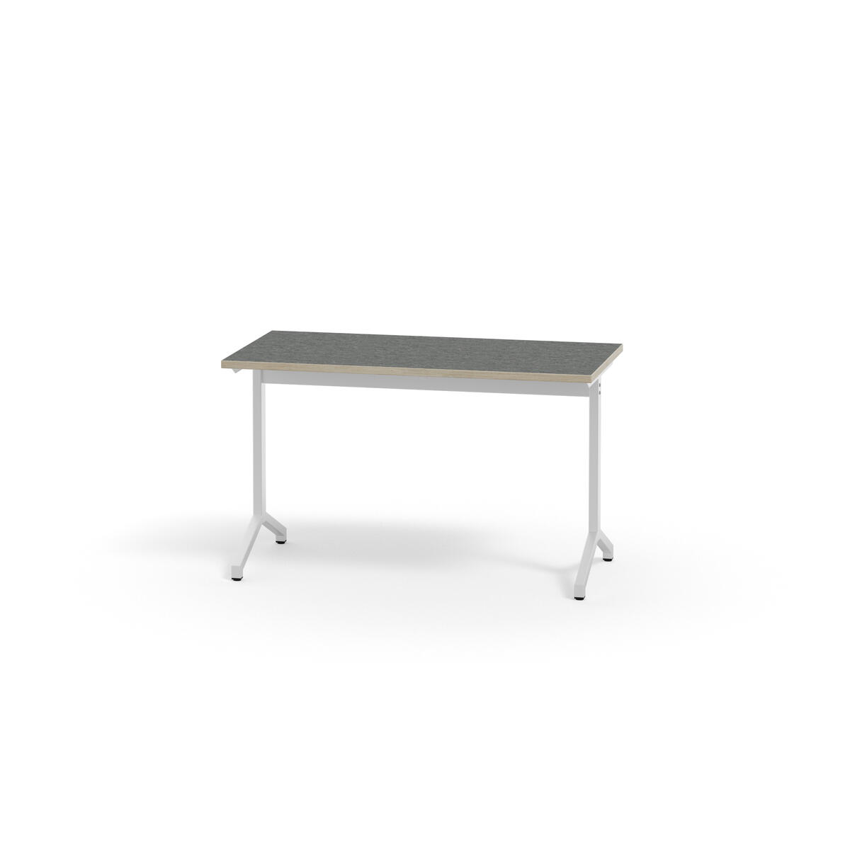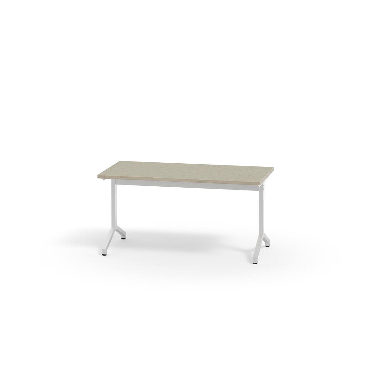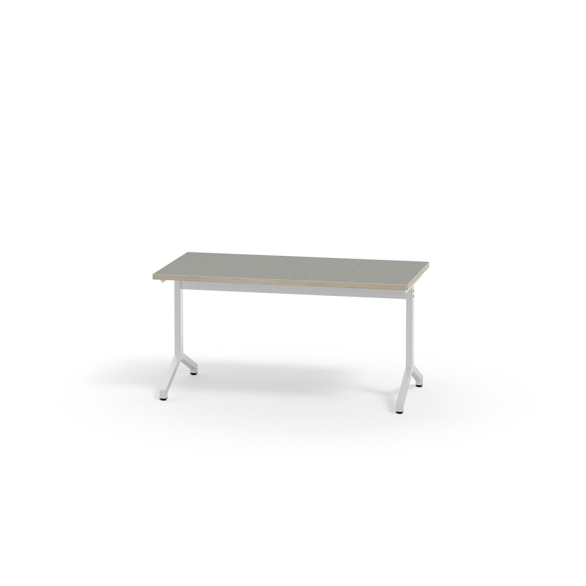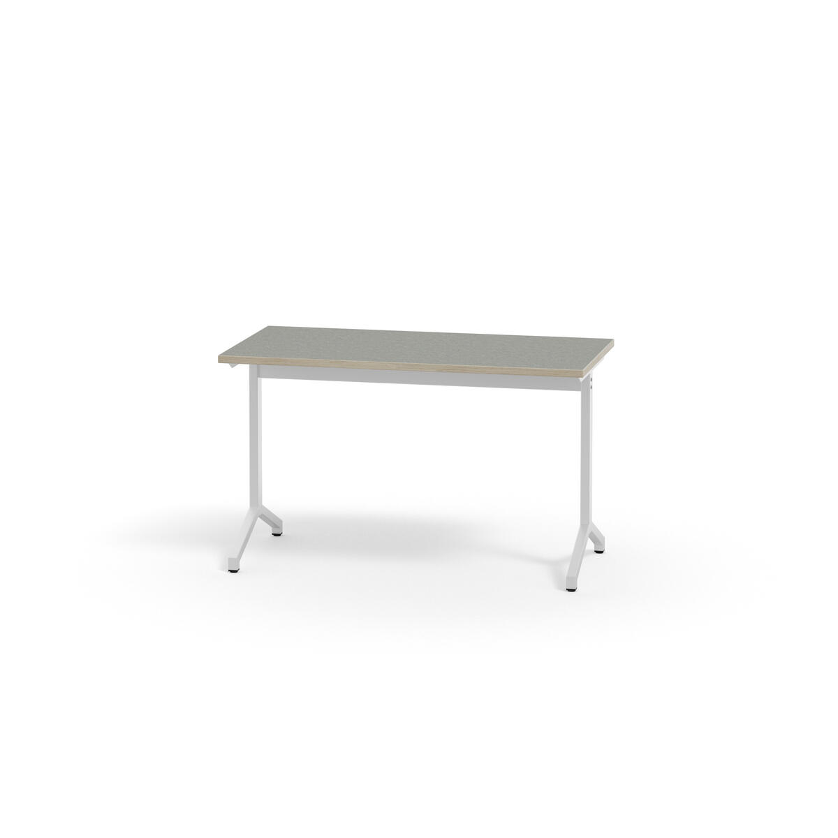 Bordplate i akustikk linoleum. Justerbare føtter for tilpasning til ujevne gulv. Hvitlakkert understell, RAL9003.