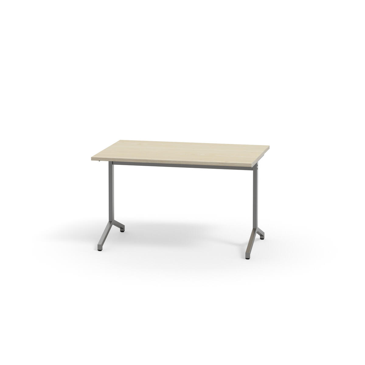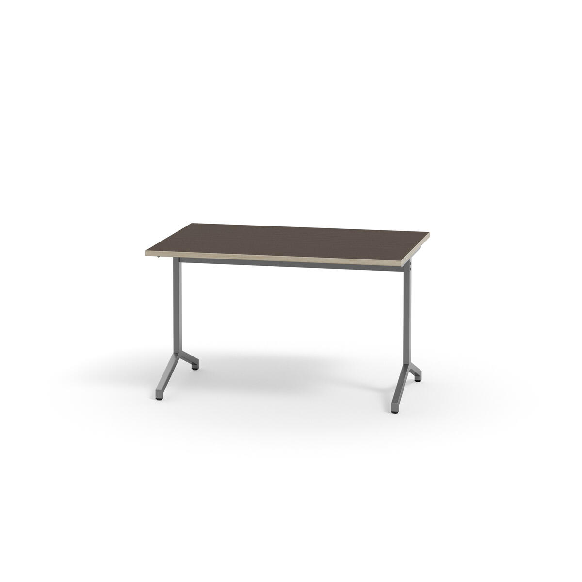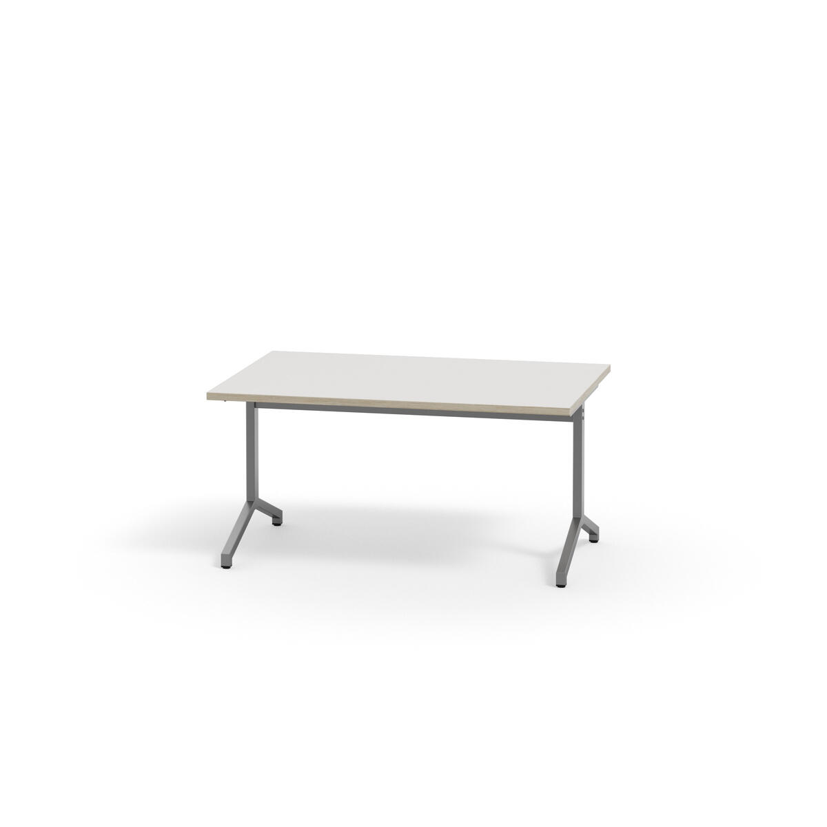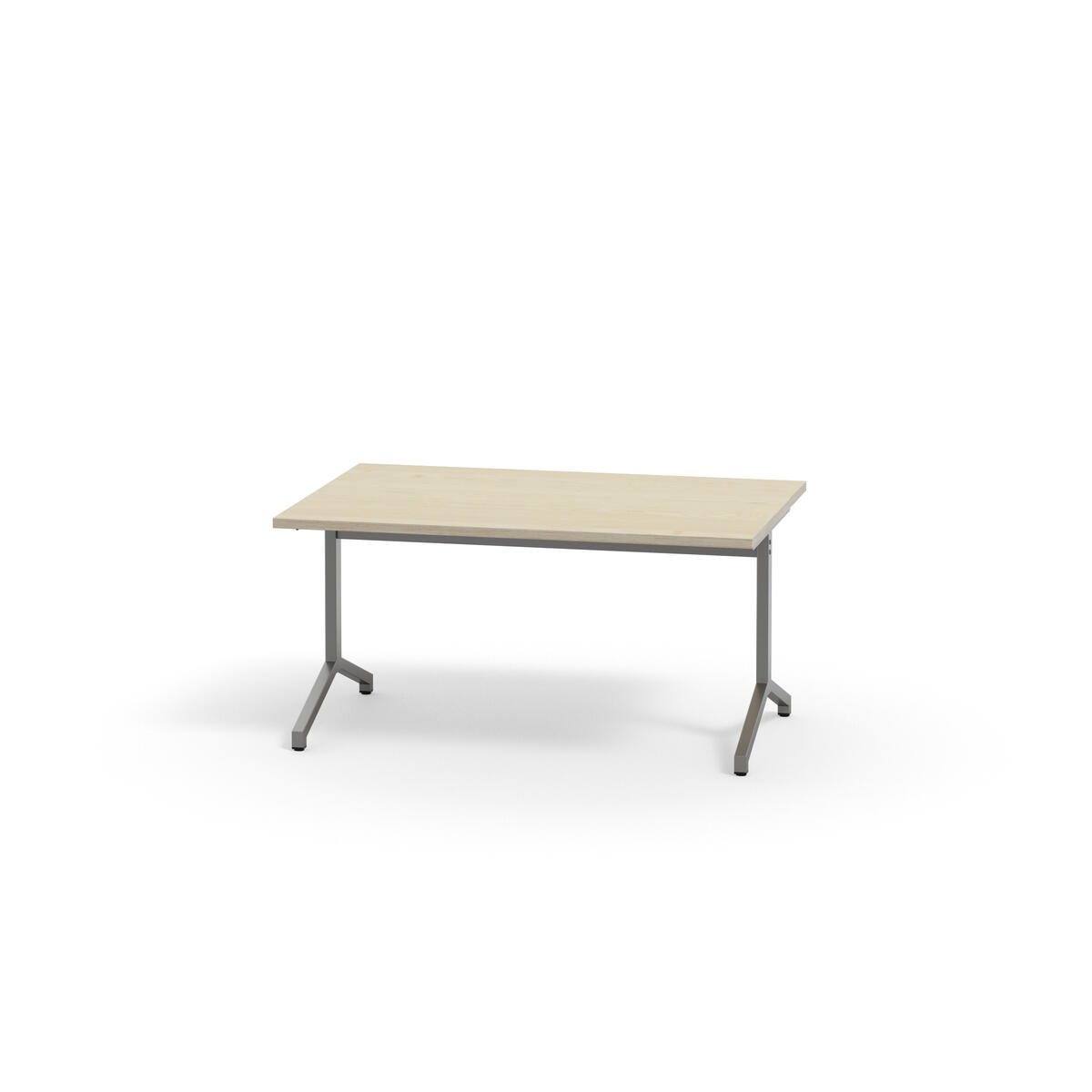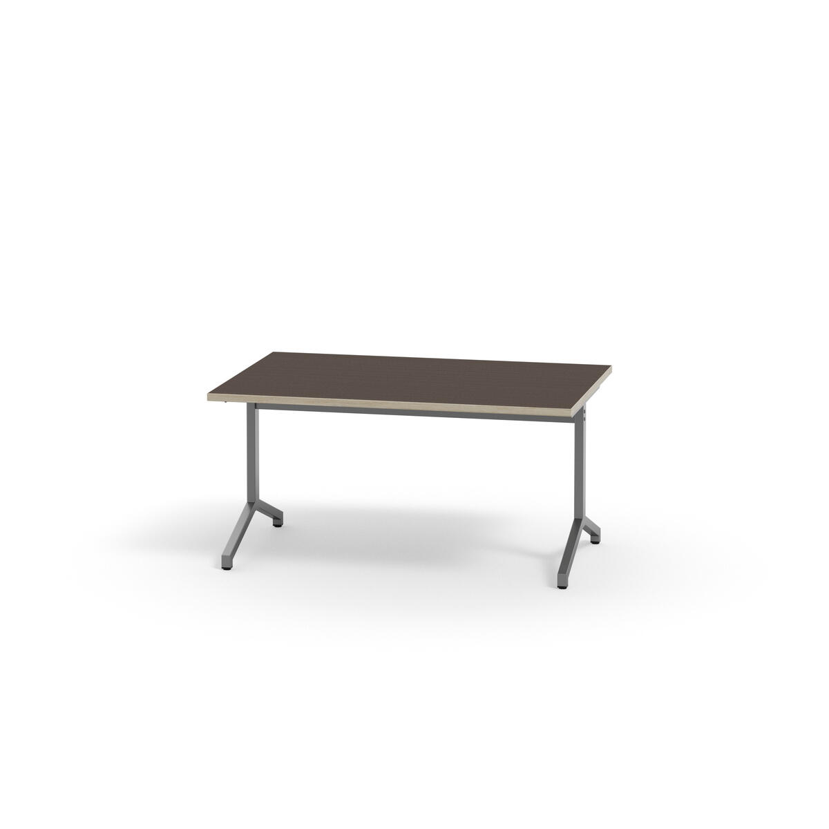 Bordplate i akustikk laminat. Justerbare føtter for tilpasning til ujevne gulv. Sølvlakkert understell, RAL 9006.