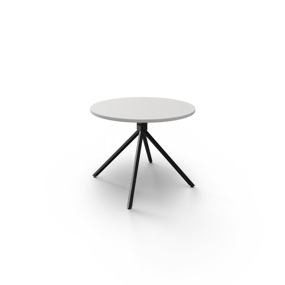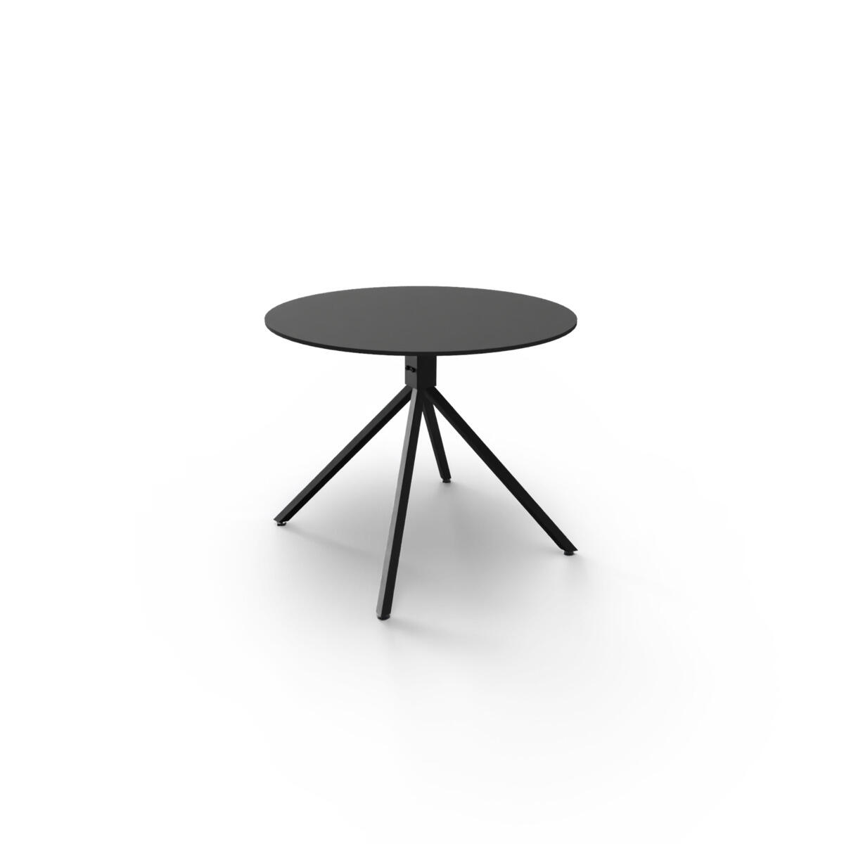 Tekla er et stilrent og stabilt rundt bord med en svevende designfølelse. Den robuste rammen med en sentral søyle og fire støtteben gir utmerket stabilitet i alle miljøer. Velg mellom høytrykkslaminat eller NANO-plate. Høytrykkslaminat har rette kanter, mens NANO har fasete kanter. Bordplaten er 2-delt. Understell i pulverlakkert metall.