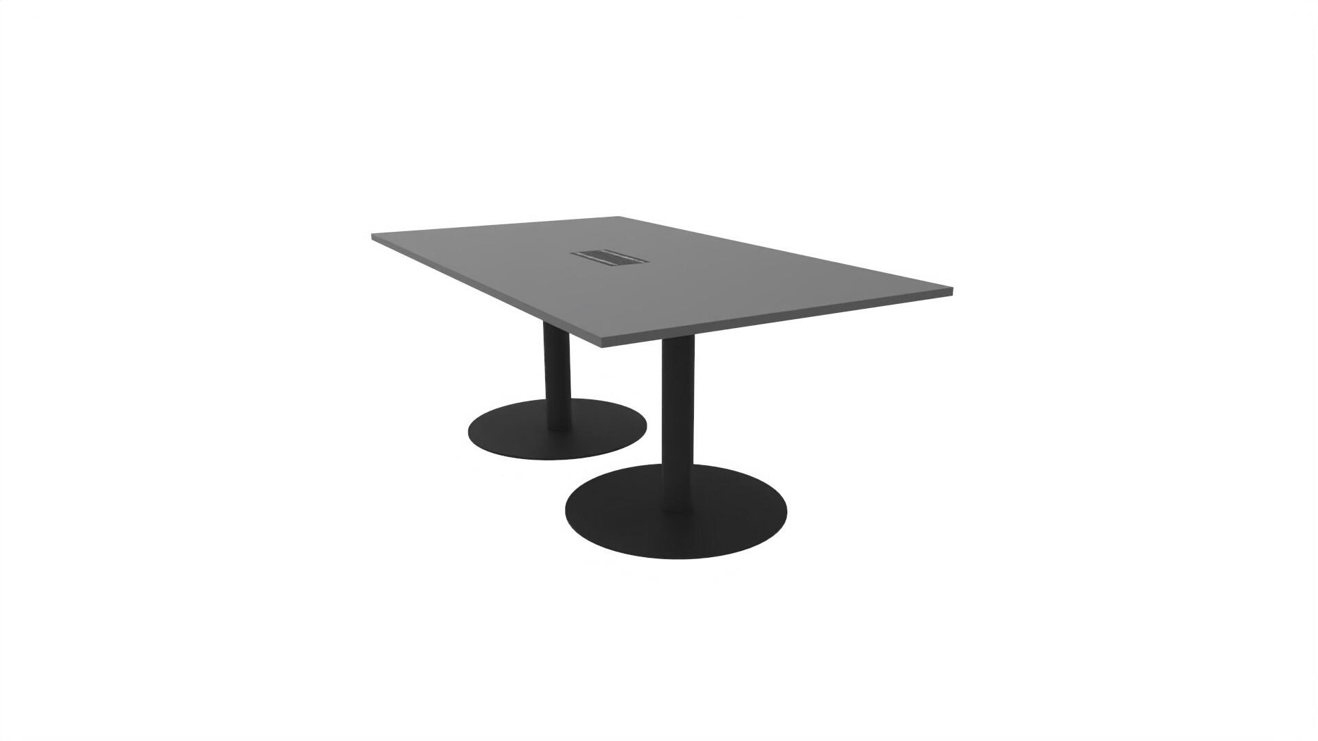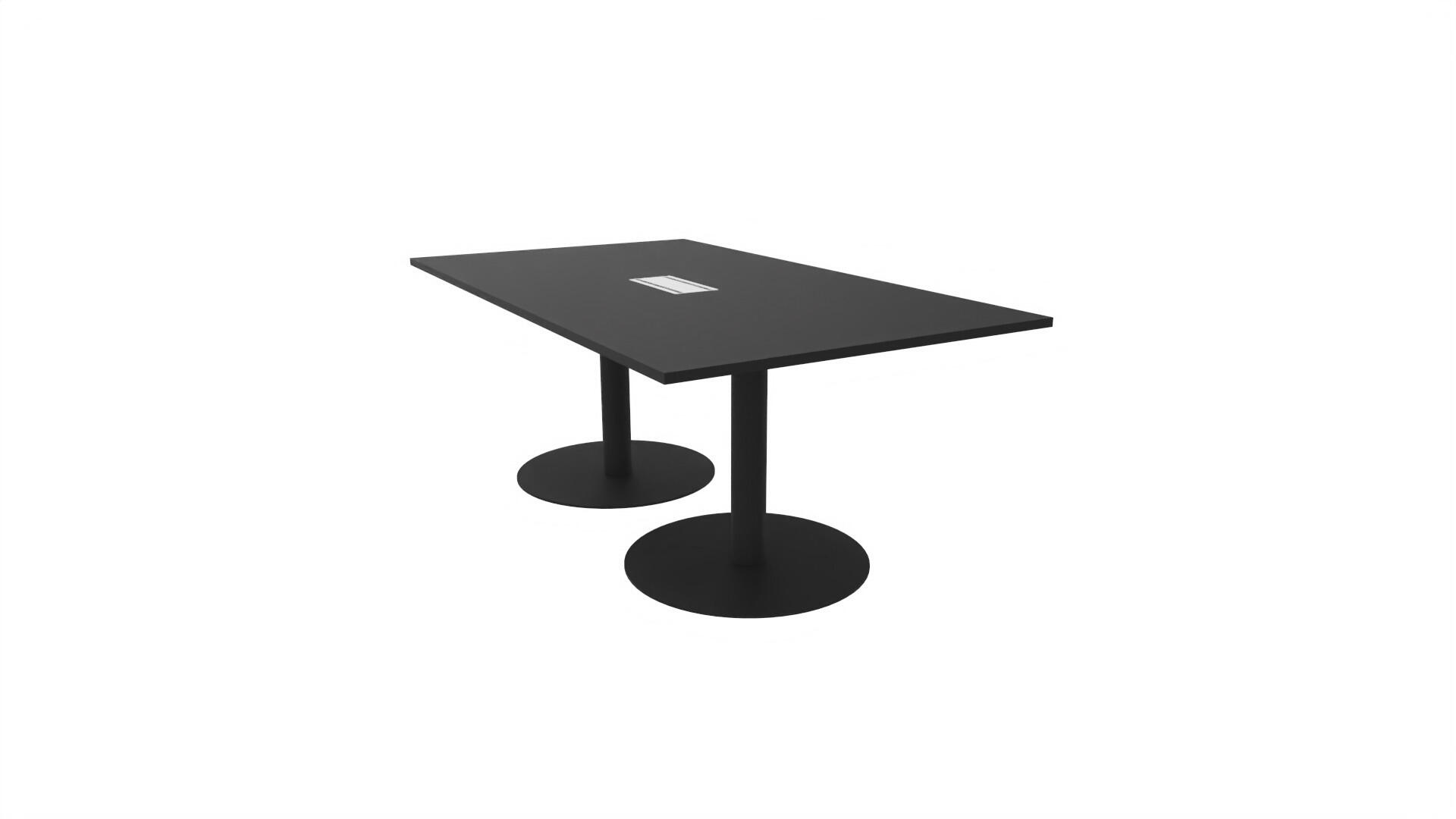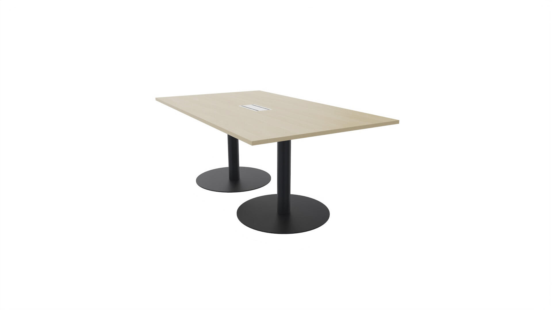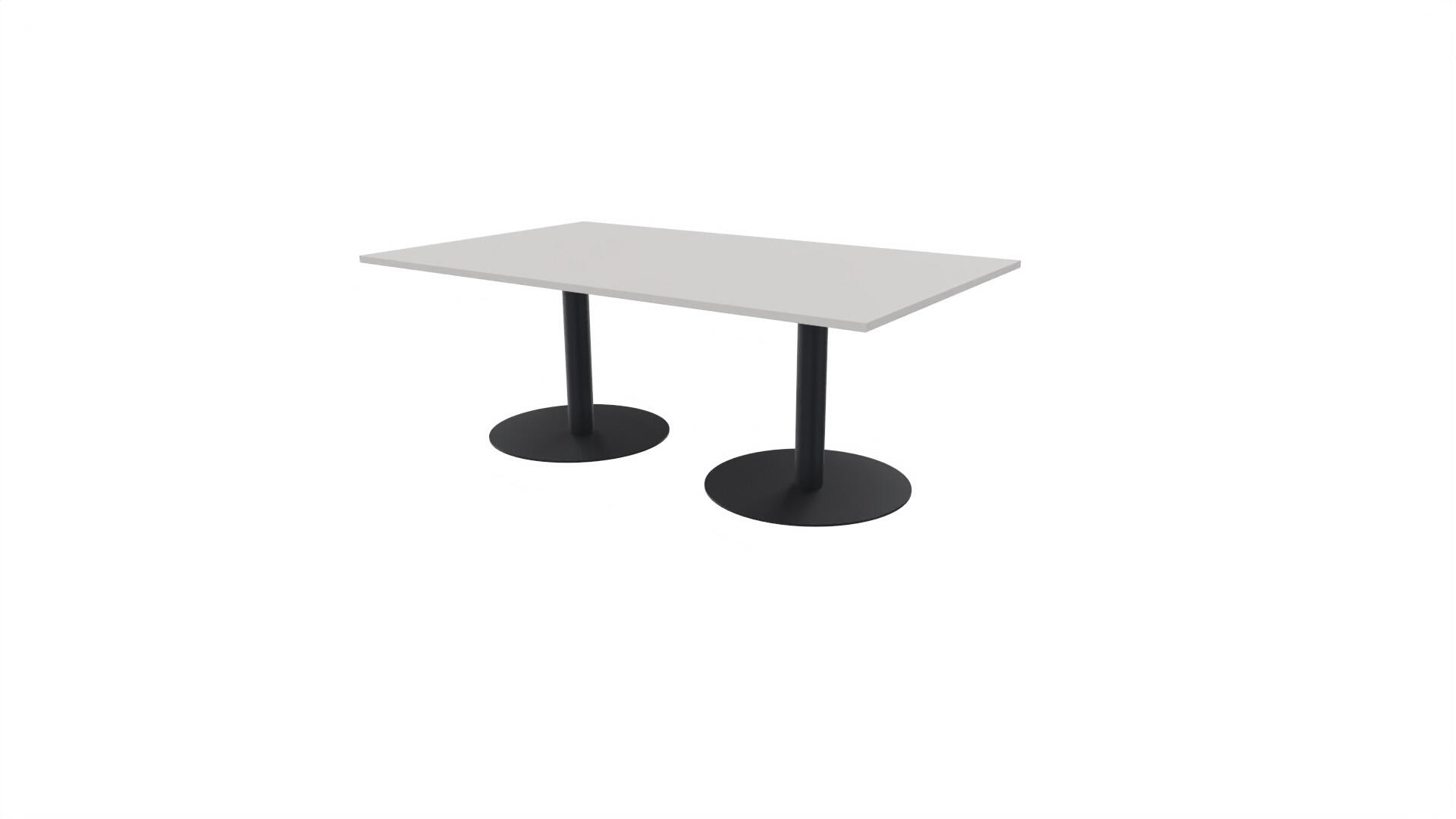 Et konferansebord med rektangulær bordplate, rett kant. Kjerne av sponplate dekket med laminat og ABS-kant. Søyleunderstell med 2 ben, søylediameter Ø10,2 cm, fotdiameter Ø72 cm. I tillegg til standard laminat, er bordet også tilgjengelig med et svart nanolaminat som har en overflate som er matt og motstandsdyktig mot fingeravtrykk. Som et tilvalg kan du velge å ha en mediaboks (32x15 cm) innfelt i bordet. Medieboksen består av 2x 230V stikkontakter, 1x USB og 1x HDMI.