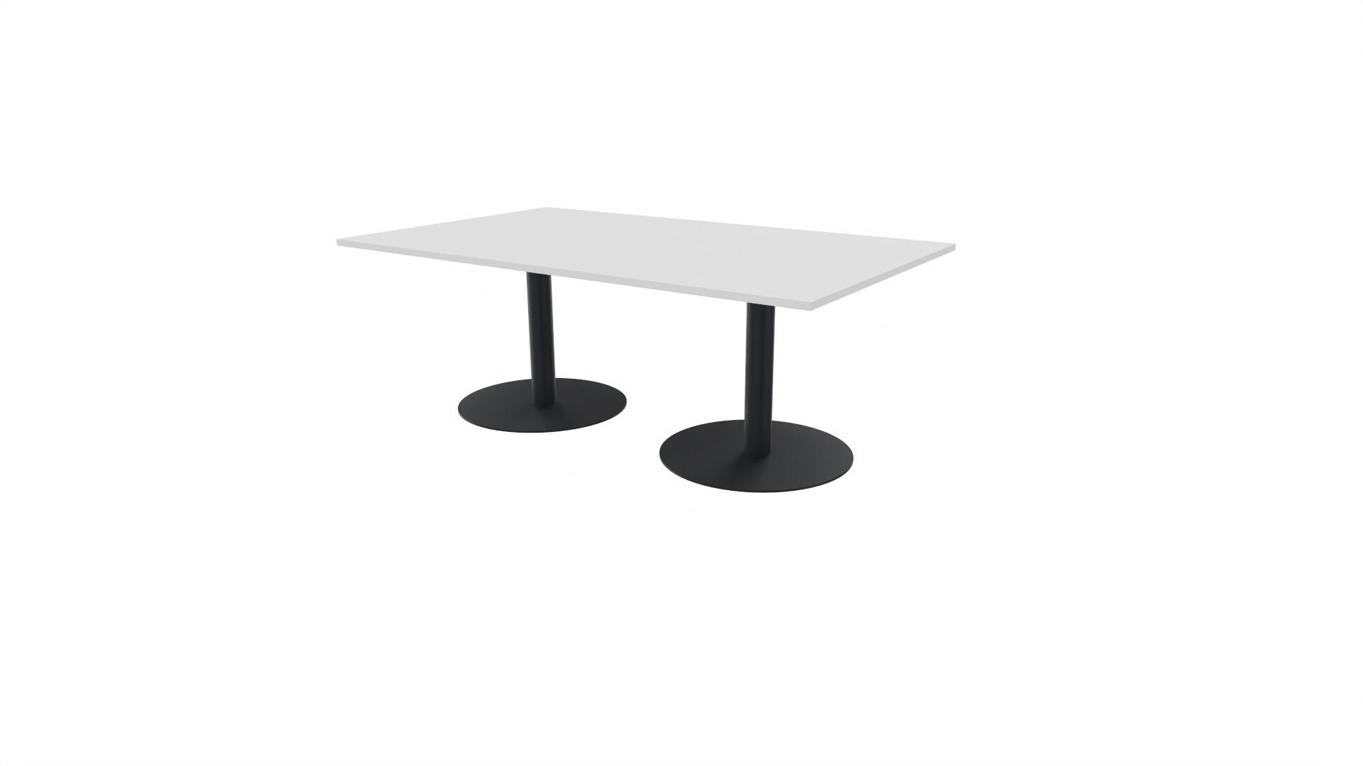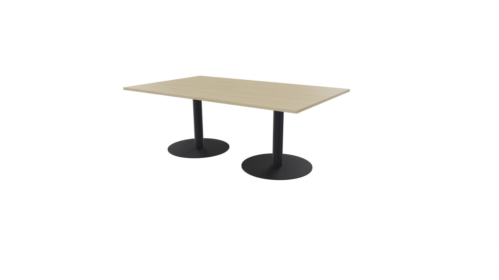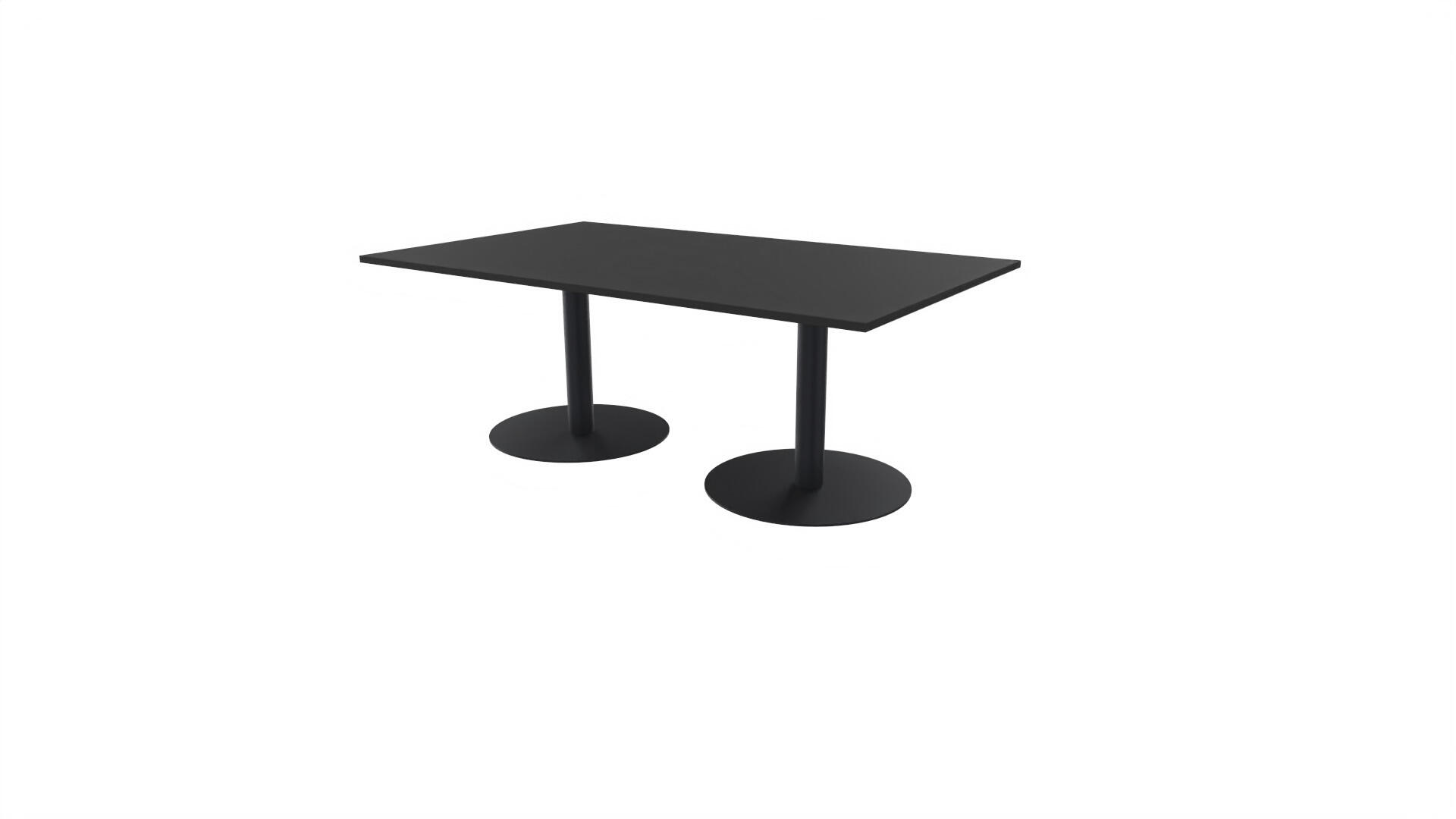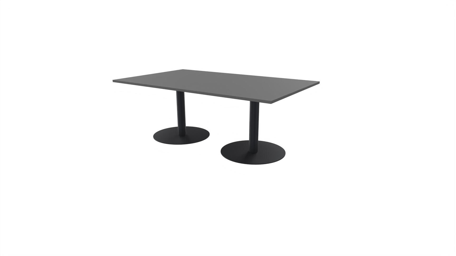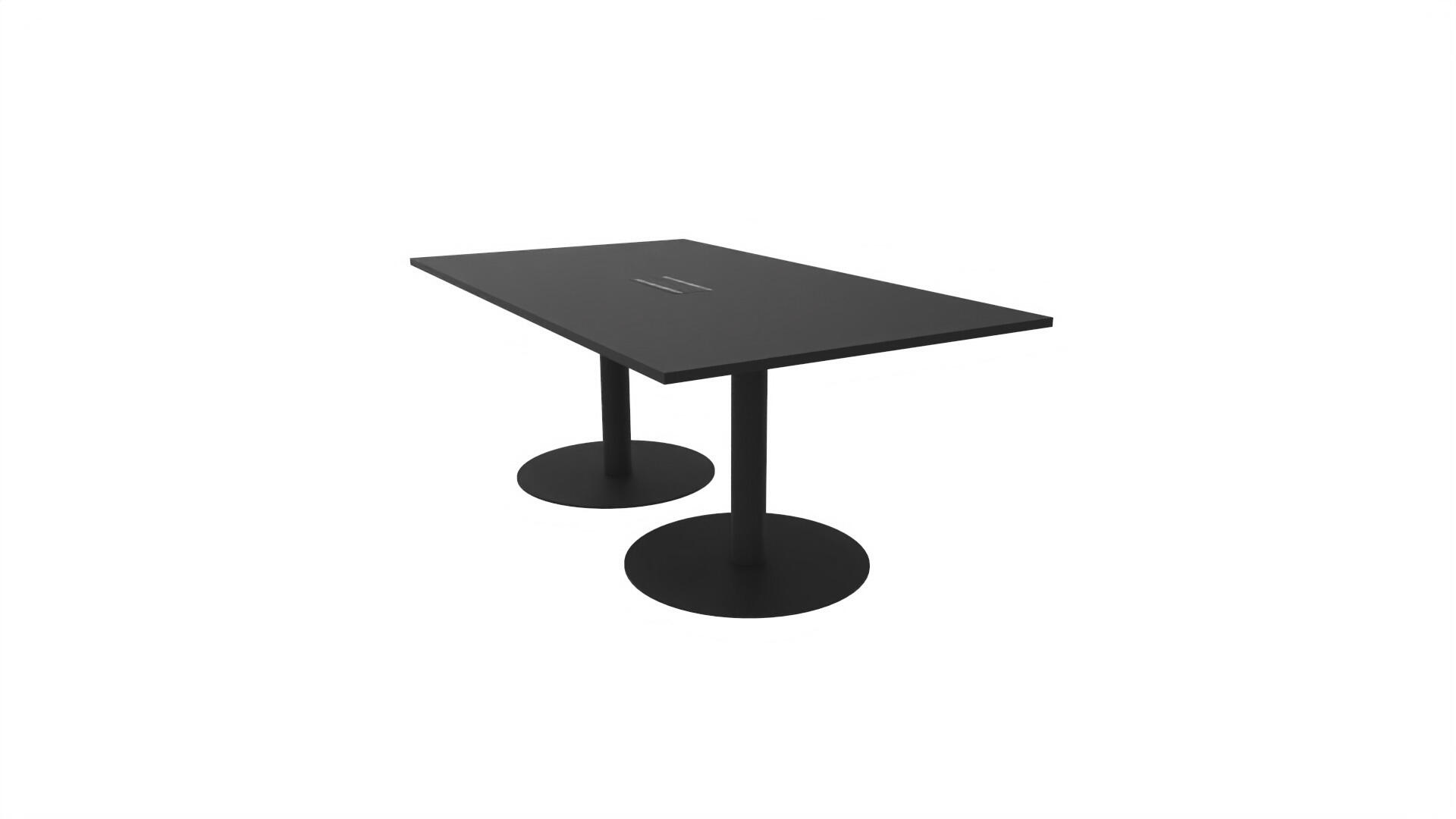 Et konferansebord med rektangulær bordplate, rett kant. Kjerne av sponplate dekket med laminat og ABS-kant. Søyleunderstell med 2 ben, søylediameter Ø10,2 cm, fotdiameter Ø72 cm. I tillegg til standard laminat, er bordet også tilgjengelig med et svart nanolaminat som har en overflate som er matt og motstandsdyktig mot fingeravtrykk. Som et tilvalg kan du velge å ha en mediaboks (32x15 cm) innfelt i bordet. Medieboksen består av 2x 230V stikkontakter, 1x USB og 1x HDMI.