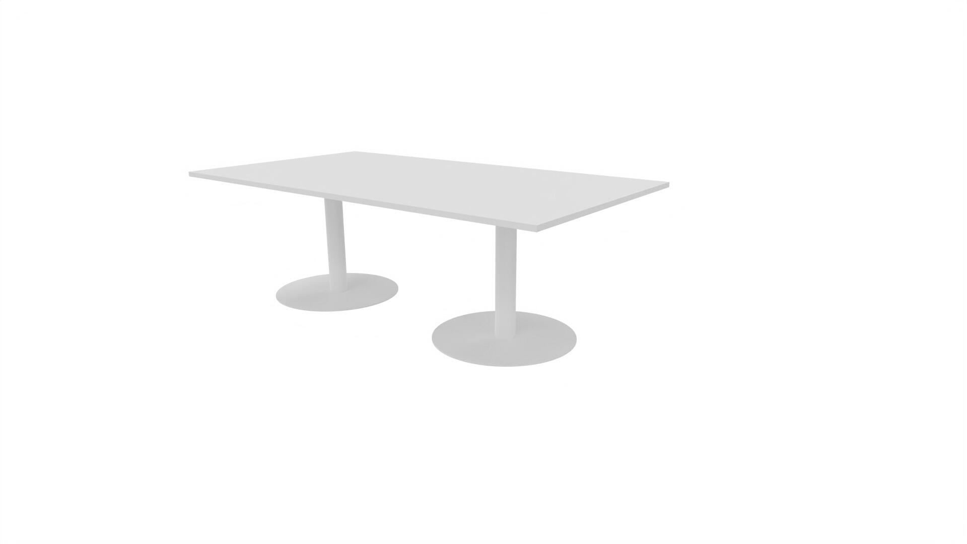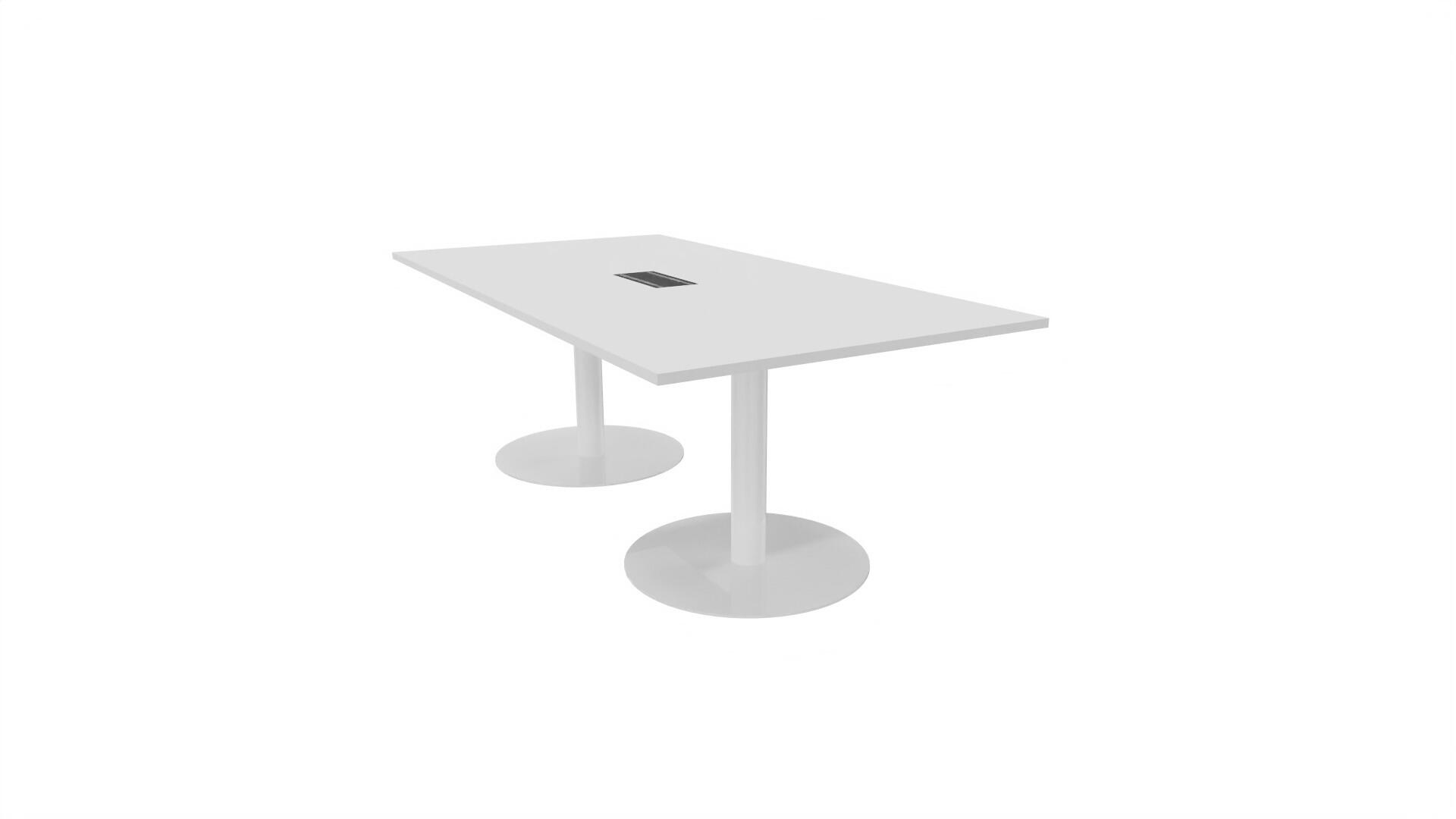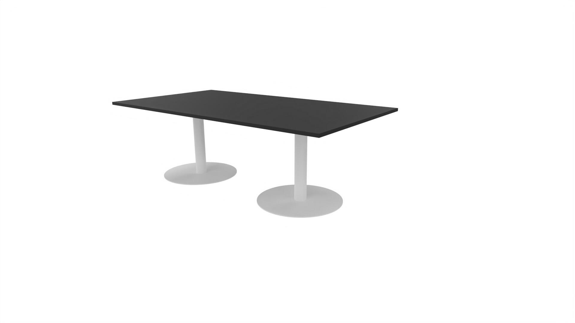 Et konferansebord med rektangulær bordplate, rett kant. Kjerne av sponplate dekket med laminat og ABS-kant. Søyleunderstell med 2 ben, søylediameter Ø10,2 cm, fotdiameter Ø72 cm. I tillegg til standard laminat, er bordet også tilgjengelig med et svart nanolaminat som har en overflate som er matt og motstandsdyktig mot fingeravtrykk. Som et tilvalg kan du velge å ha en mediaboks (32x15 cm) innfelt i bordet. Medieboksen består av 2x 230V stikkontakter, 1x USB og 1x HDMI.