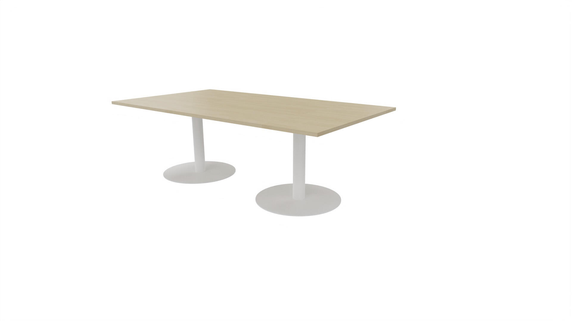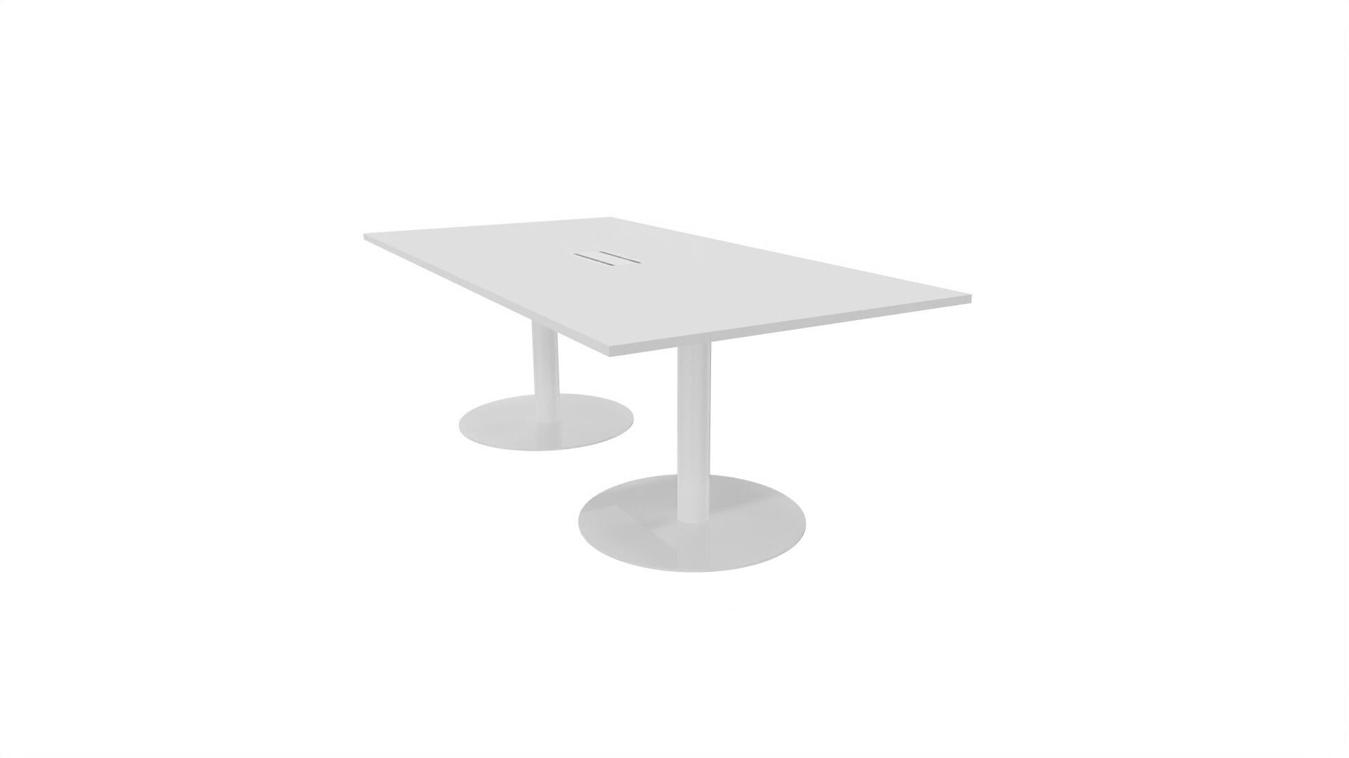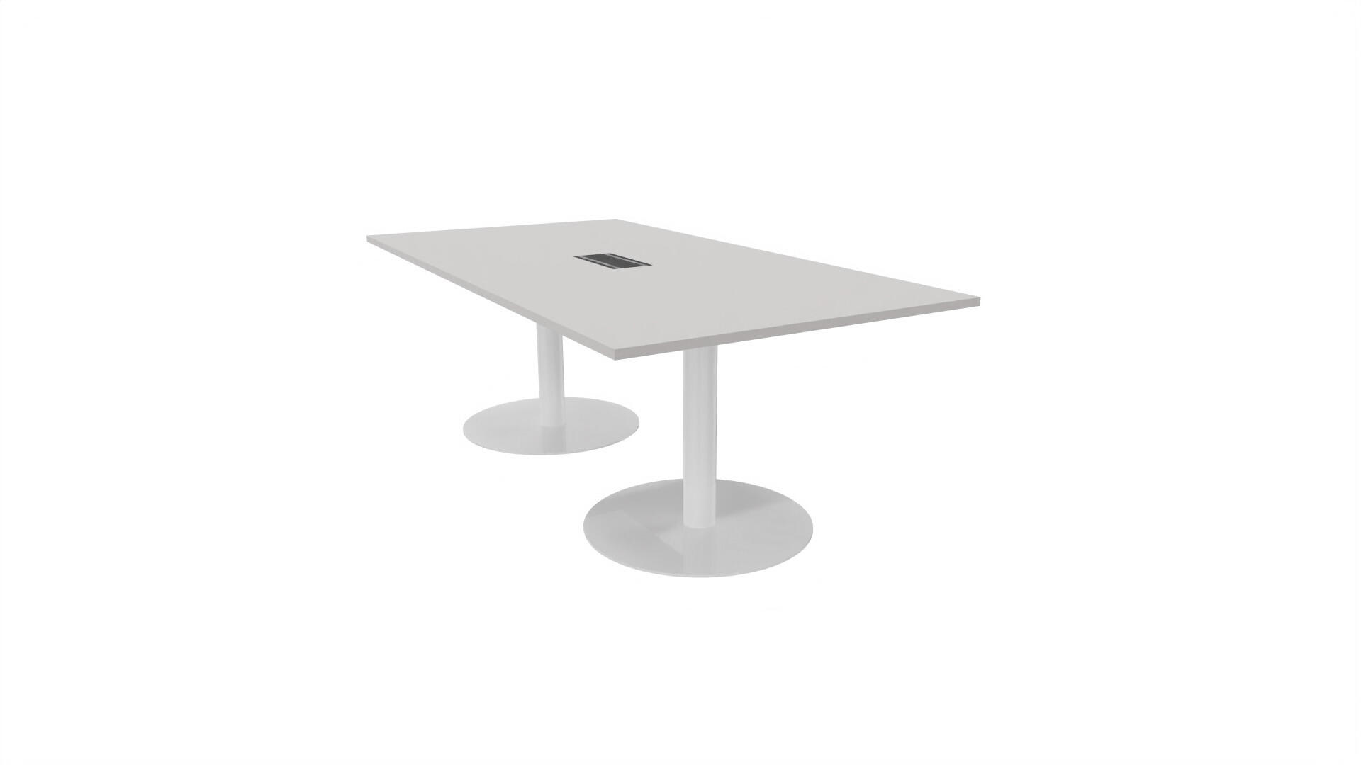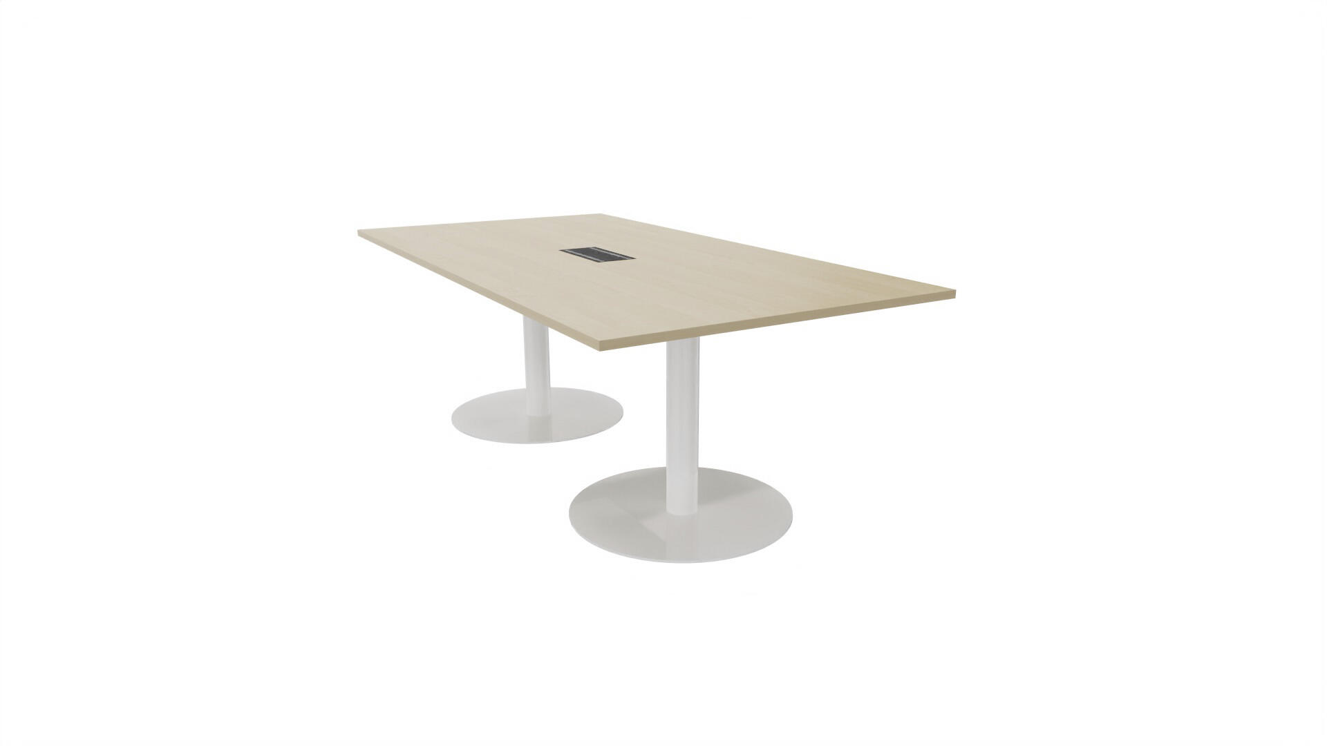 Et konferansebord med rektangulær bordplate, rett kant. Kjerne av sponplate dekket med laminat og ABS-kant. Søyleunderstell med 2 ben, søylediameter Ø10,2 cm, fotdiameter Ø72 cm. I tillegg til standard laminat, er bordet også tilgjengelig med et svart nanolaminat som har en overflate som er matt og motstandsdyktig mot fingeravtrykk. Som et tilvalg kan du velge å ha en mediaboks (32x15 cm) innfelt i bordet. Medieboksen består av 2x 230V stikkontakter, 1x USB og 1x HDMI.