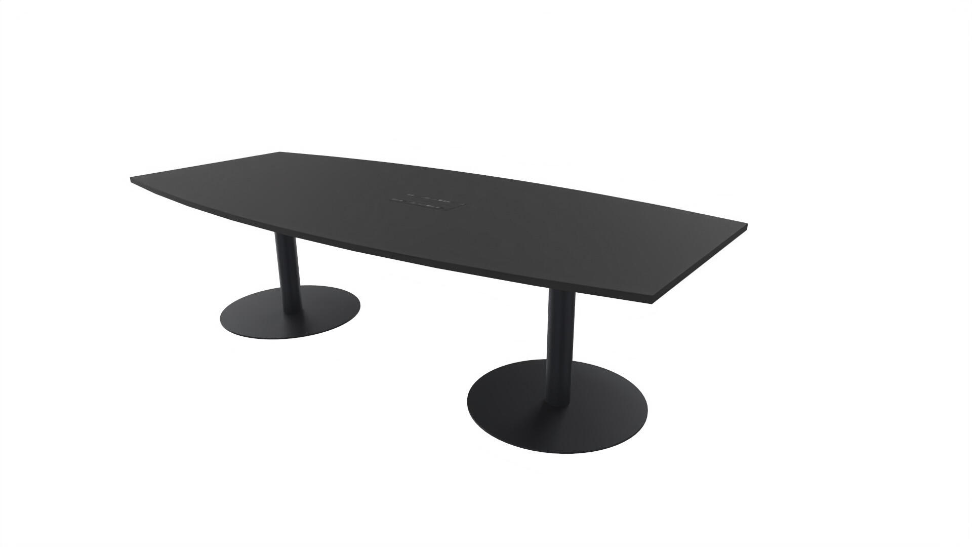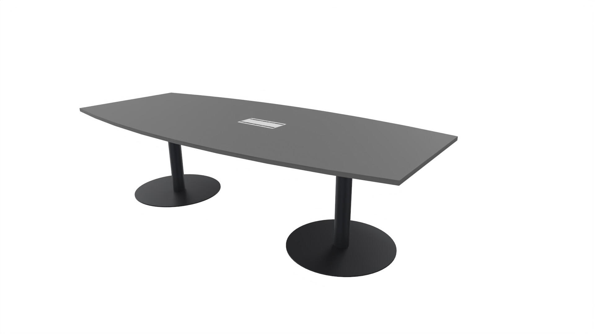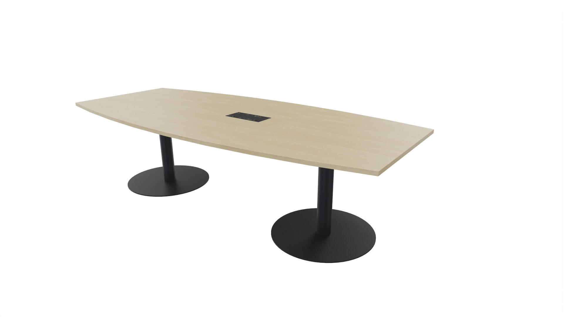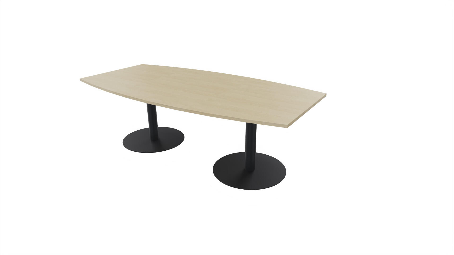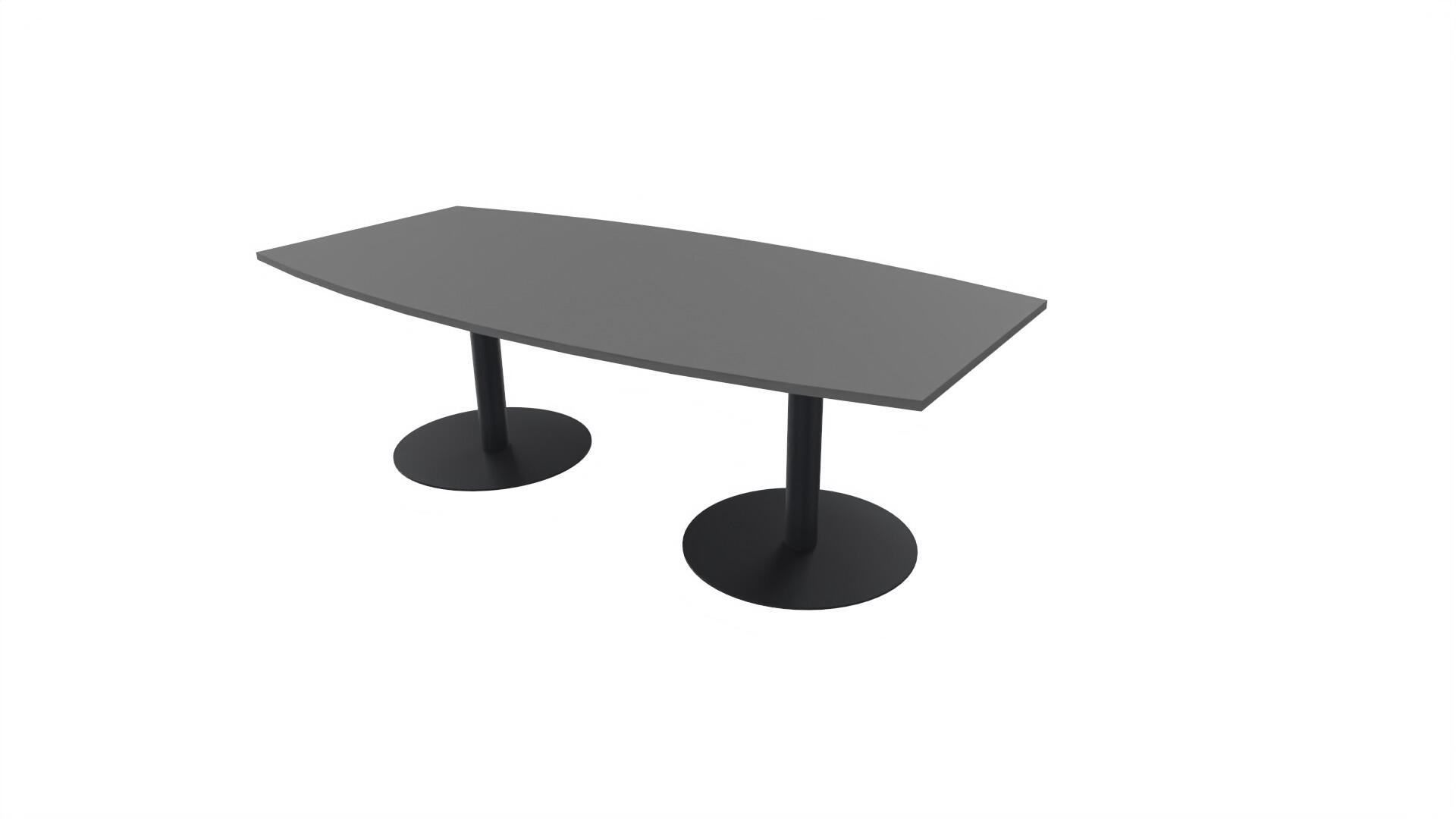 Et konferansebord med bordplate formet som en kappet elipse. Kjerne av sponplate dekket med laminat og ABS-kant. Understell T-stativ med 3 ben, fotlengde 90 cm. I tillegg til standard laminat, er bordet også tilgjengelig med et svart nanolaminat som har en overflate som er matt og motstandsdyktig mot fingeravtrykk. Som et tilvalg kan du også velge å ha to mediabokser (32x15 cm) innfelt i bordet. Hver medieboks består av 2x 230V stikkontakter, 1x USB og 1x HDMI.