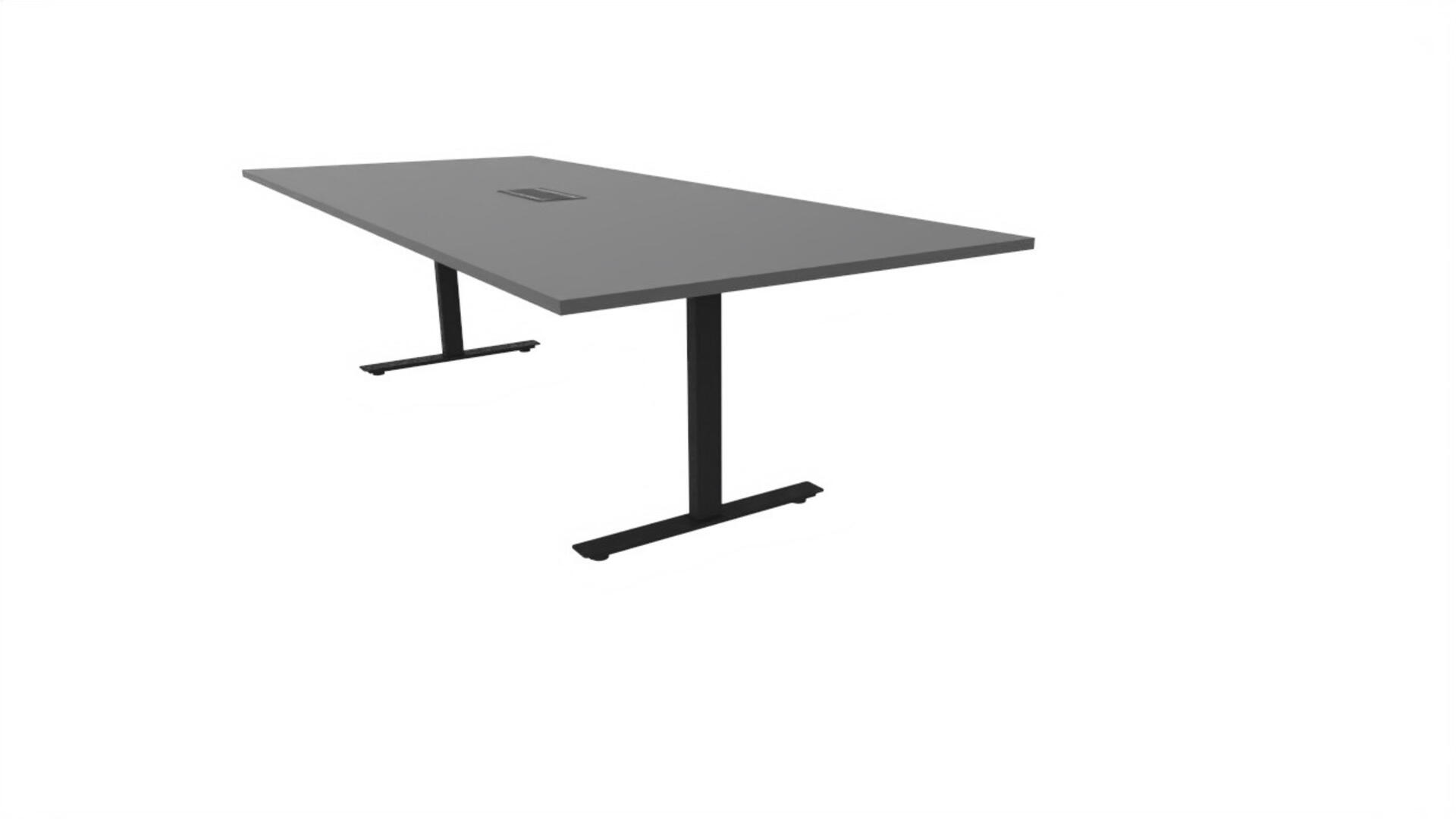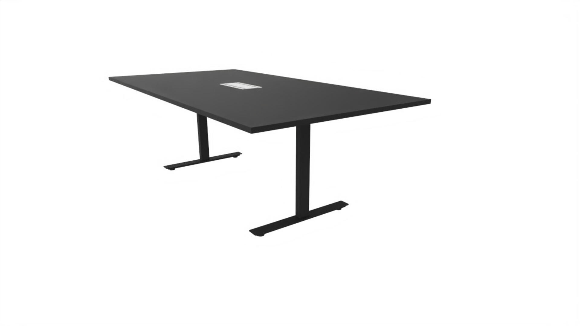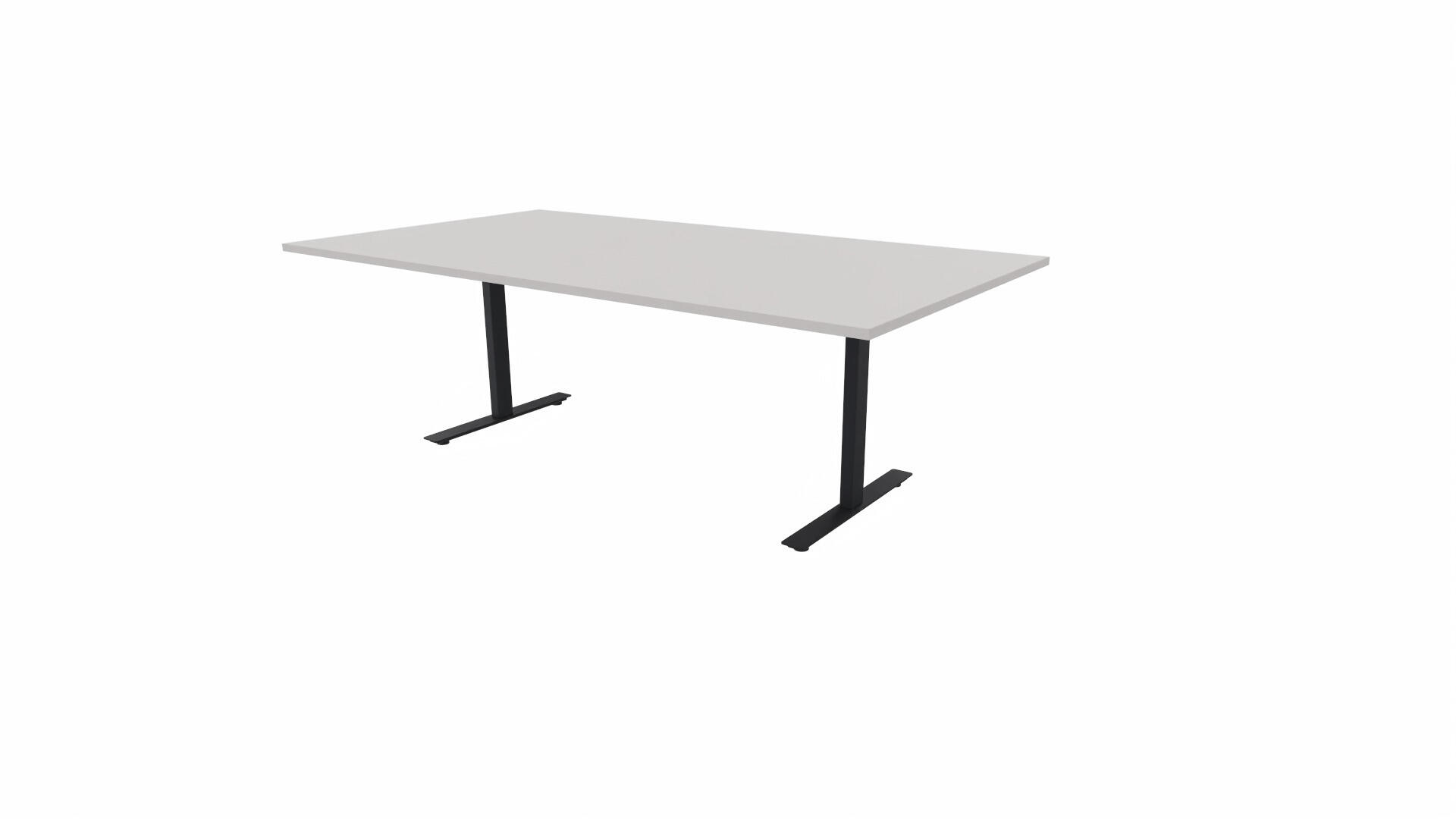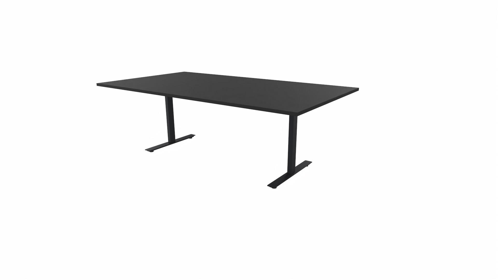 Et konferansebord med rektangulær plate, rett kant. Kjerne av sponplate dekket med laminat og ABS-kant. Understell T-stativ med 3 ben, fotlengde 90 cm. I tillegg til standard laminat, er bordet også tilgjengelig med et svart nanolaminat som har en overflate som er matt og motstandsdyktig mot fingeravtrykk. Som et tilvalg kan du også velge å ha to mediabokser (61x15 cm) innfelt i bordet. Hver medieboks består av 5x 230V stikkontakter, 3x USB og 1x HDMI.