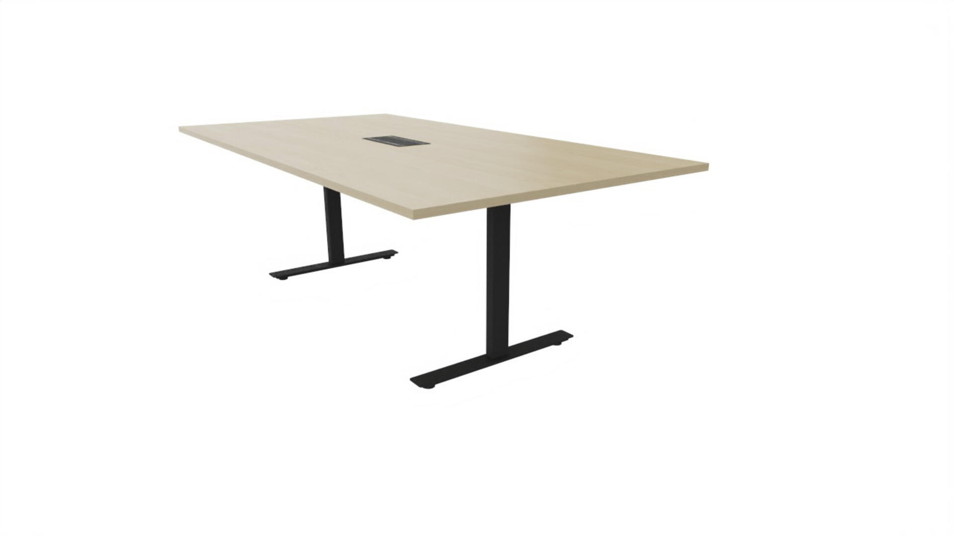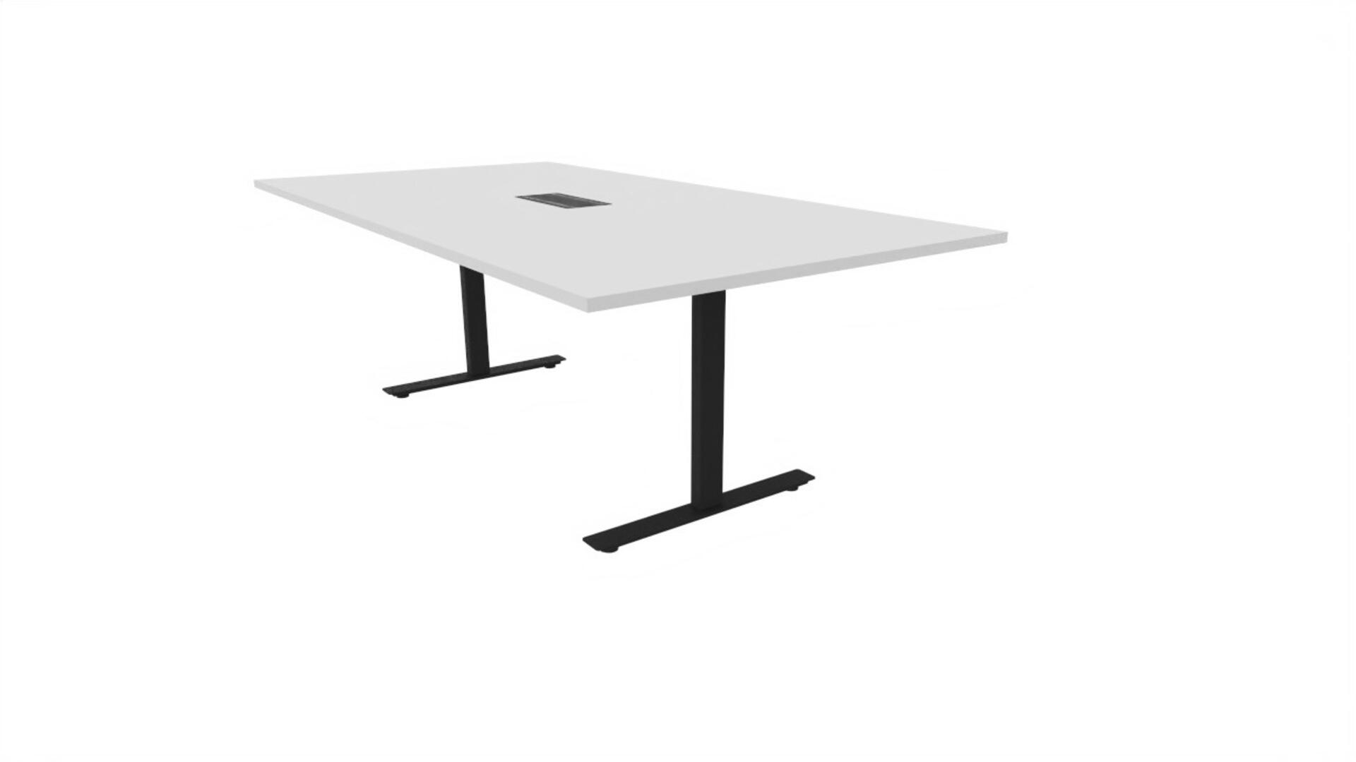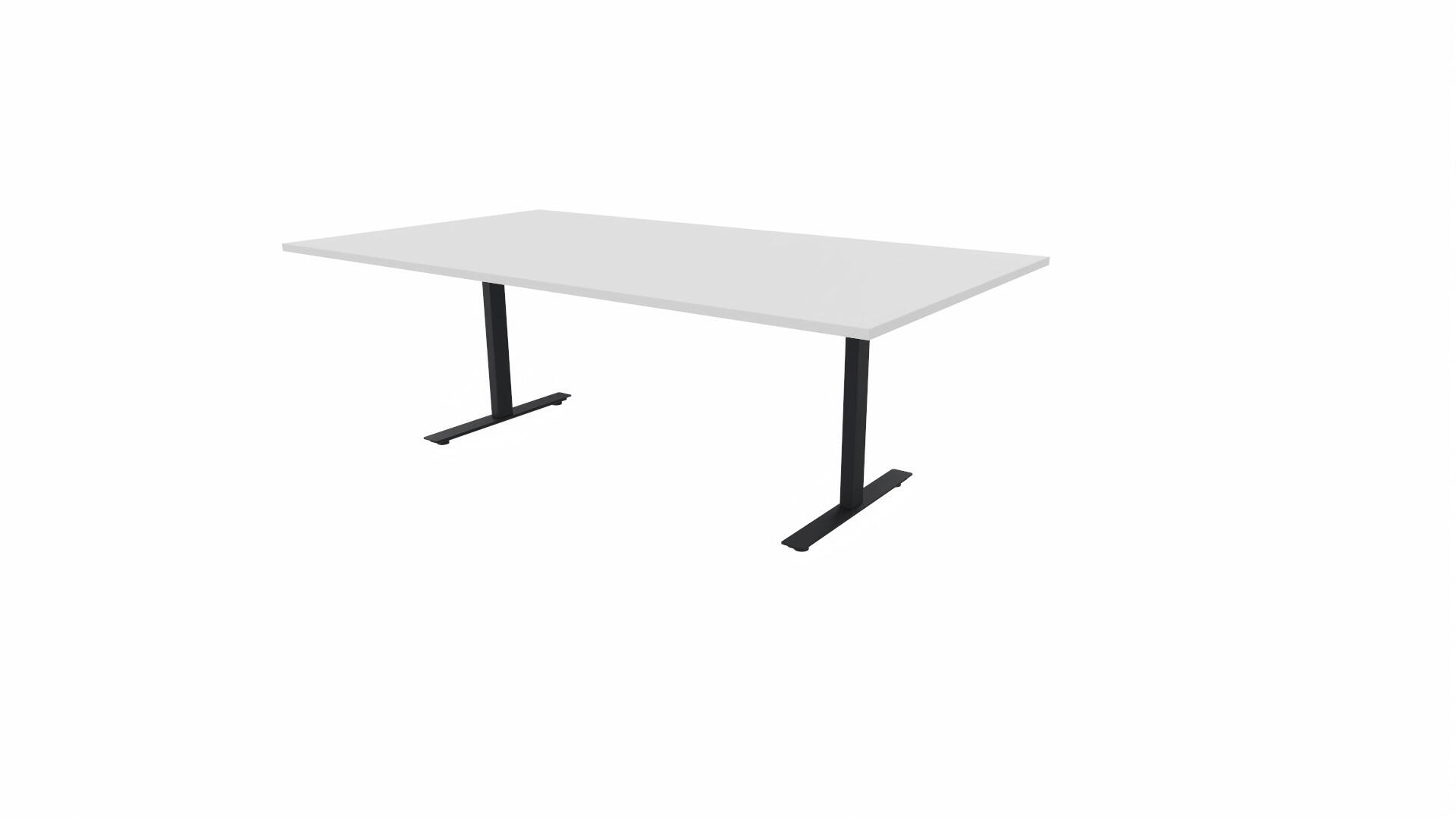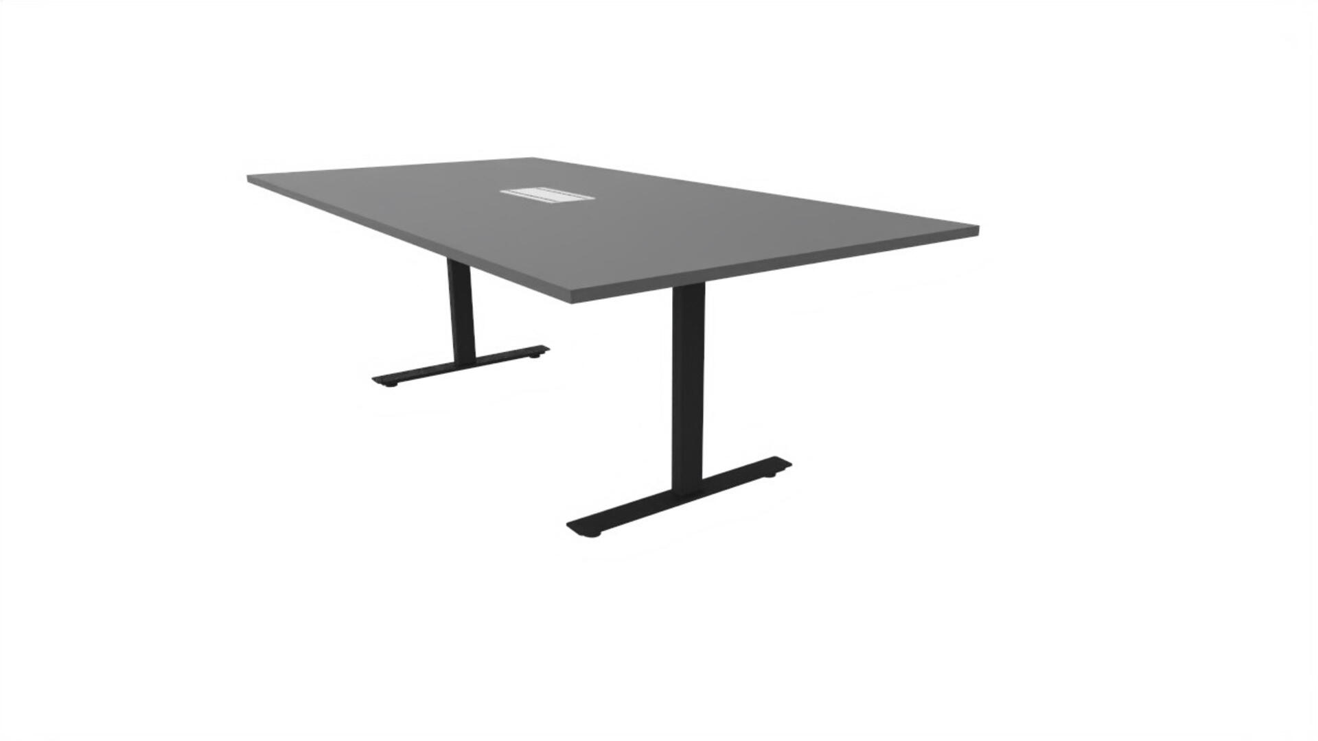 Et konferansebord med rektangulær plate, rett kant. Kjerne av sponplate dekket med laminat og ABS-kant. Understell T-stativ med 3 ben, fotlengde 90 cm. I tillegg til standard laminat, er bordet også tilgjengelig med et svart nanolaminat som har en overflate som er matt og motstandsdyktig mot fingeravtrykk. Som et tilvalg kan du også velge å ha to mediabokser (61x15 cm) innfelt i bordet. Hver medieboks består av 5x 230V stikkontakter, 3x USB og 1x HDMI.