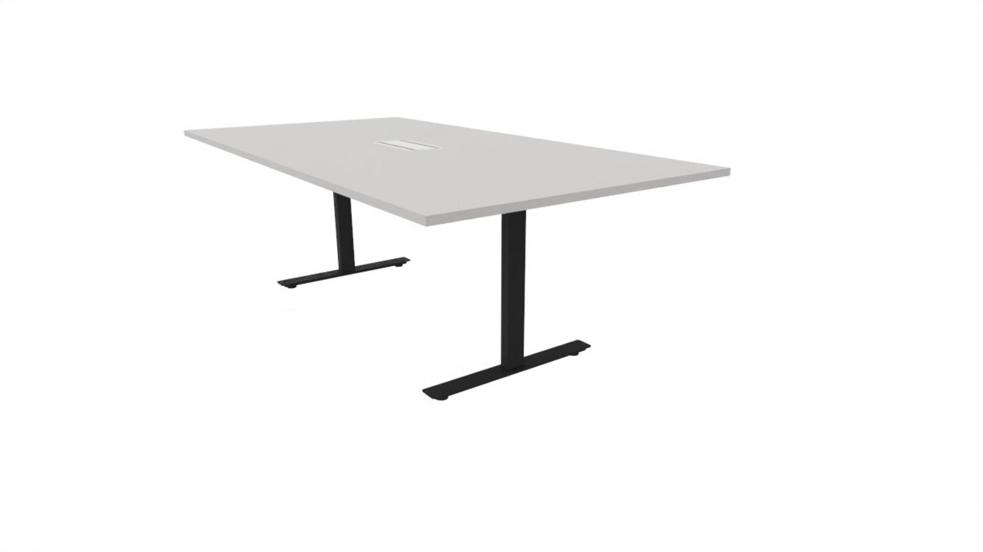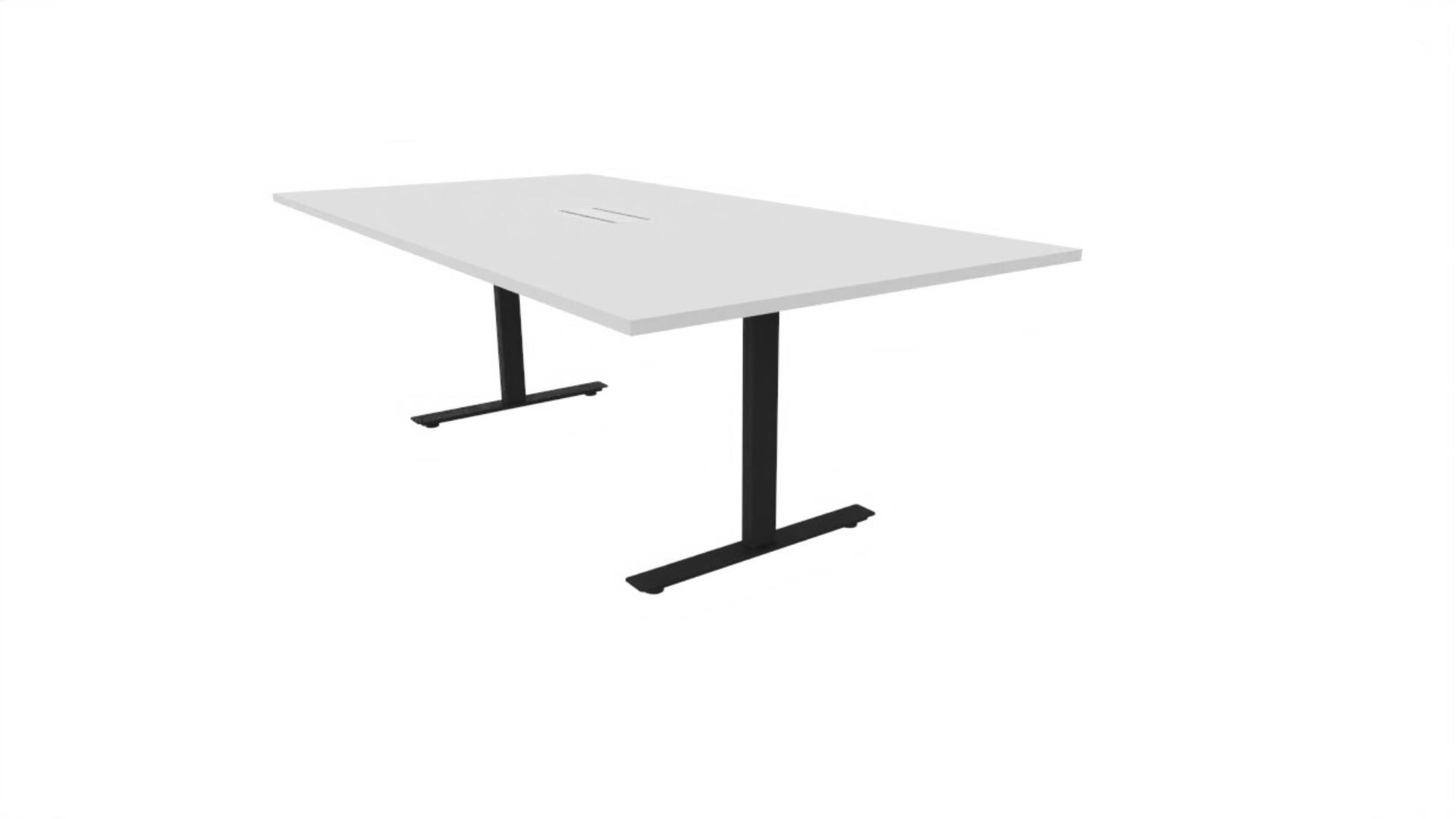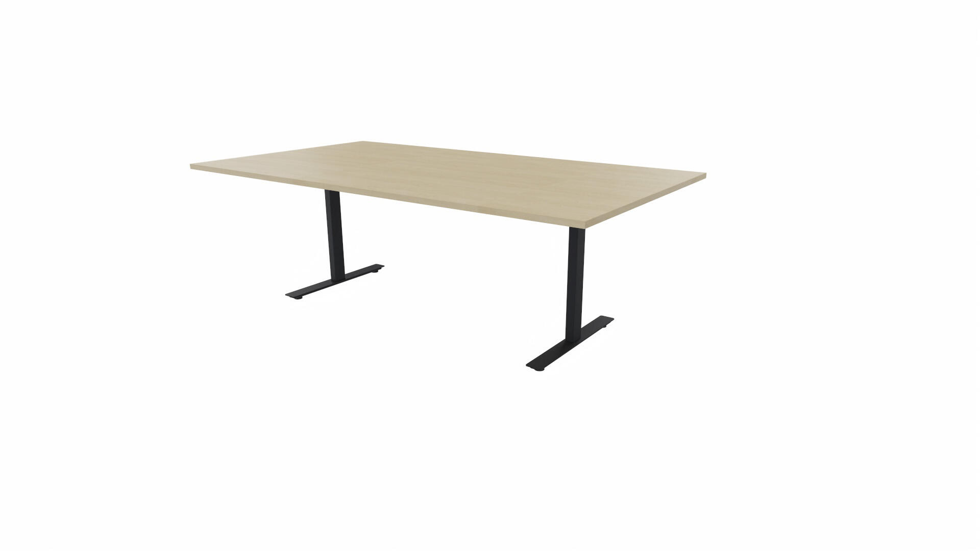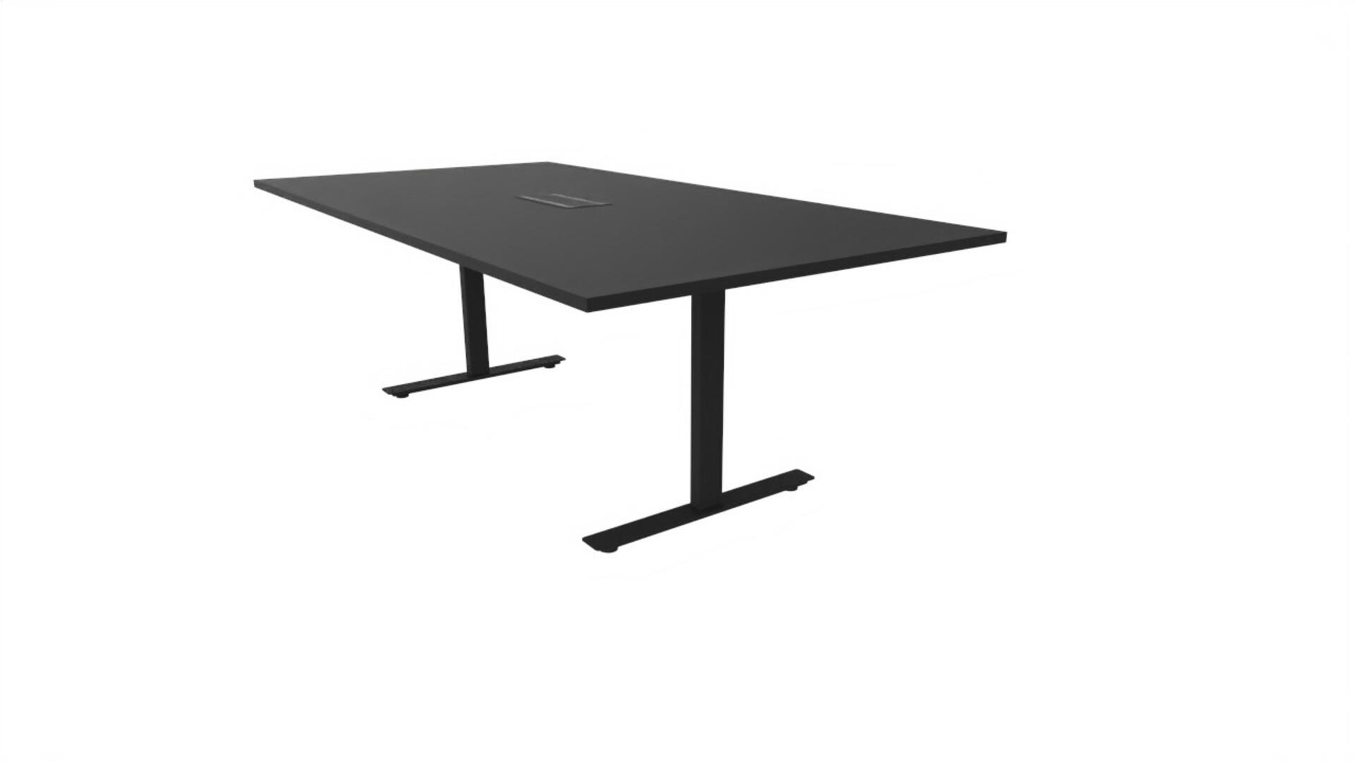 Et konferansebord med rektangulær plate, rett kant. Kjerne av sponplate dekket med laminat og ABS-kant. Understell T-stativ med 3 ben, fotlengde 90 cm. I tillegg til standard laminat, er bordet også tilgjengelig med et svart nanolaminat som har en overflate som er matt og motstandsdyktig mot fingeravtrykk. Som et tilvalg kan du også velge å ha to mediabokser (61x15 cm) innfelt i bordet. Hver medieboks består av 5x 230V stikkontakter, 3x USB og 1x HDMI.