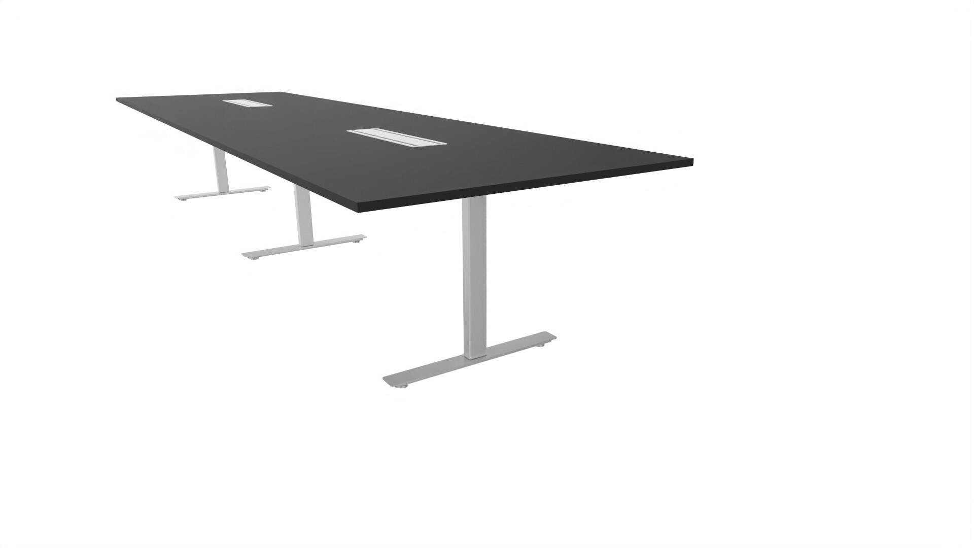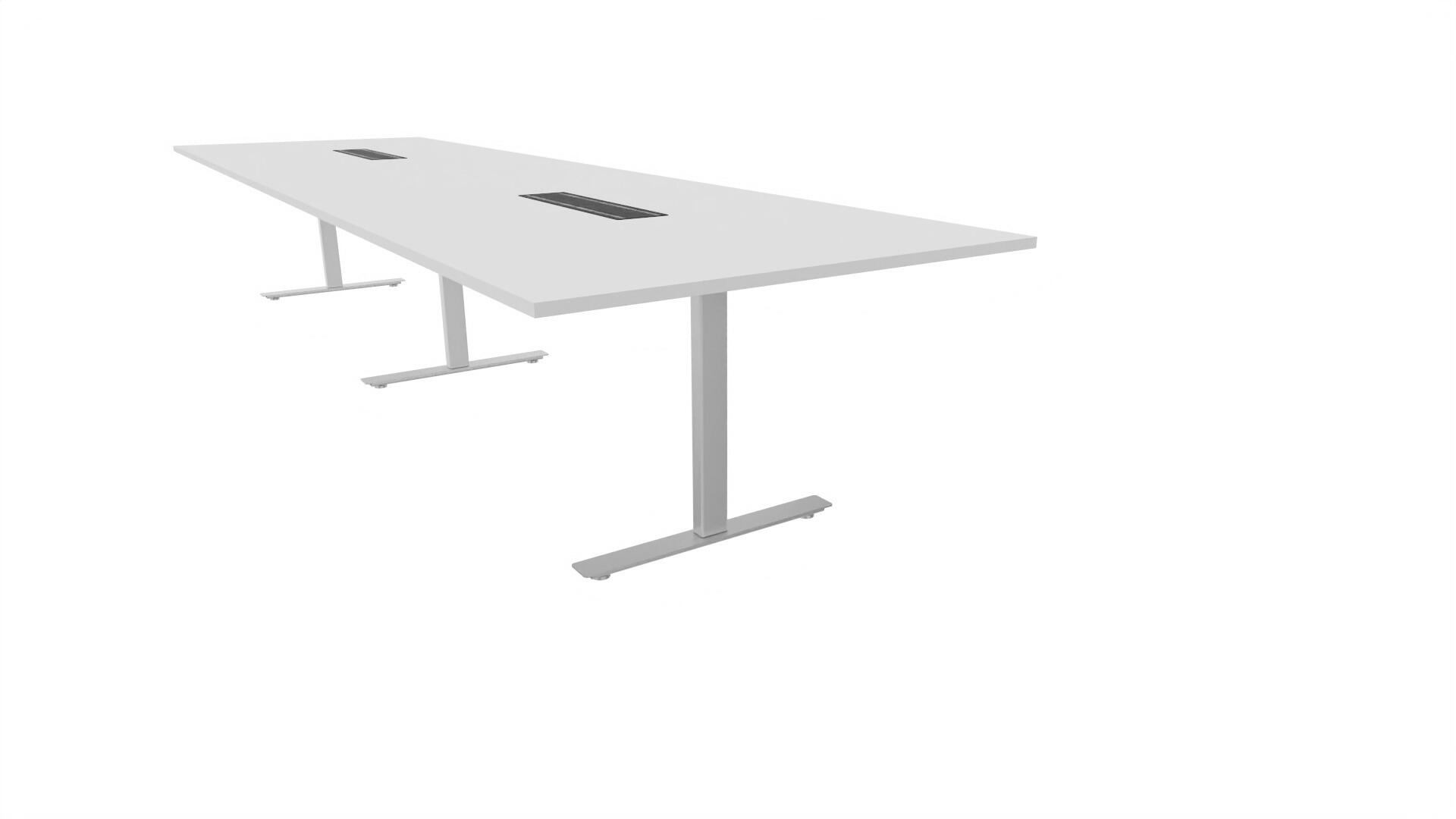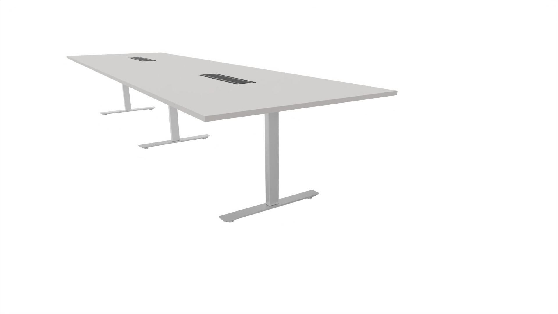 Et konferansebord med rektangulær plate, rett kant. Kjerne av sponplate dekket med laminat og ABS-kant. Understell T-stativ med 3 ben, fotlengde 90 cm. I tillegg til standard laminat, er bordet også tilgjengelig med et svart nanolaminat som har en overflate som er matt og motstandsdyktig mot fingeravtrykk. Som et tilvalg kan du også velge å ha to mediabokser (61x15 cm) innfelt i bordet. Hver medieboks består av 5x 230V stikkontakter, 3x USB og 1x HDMI.
