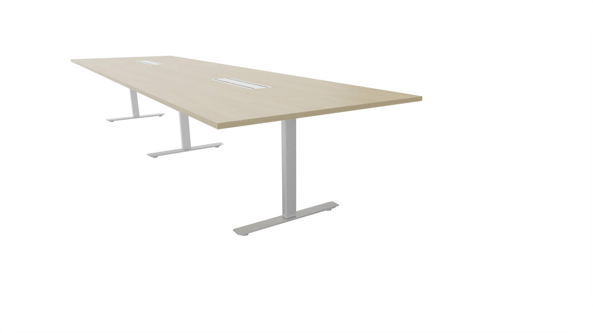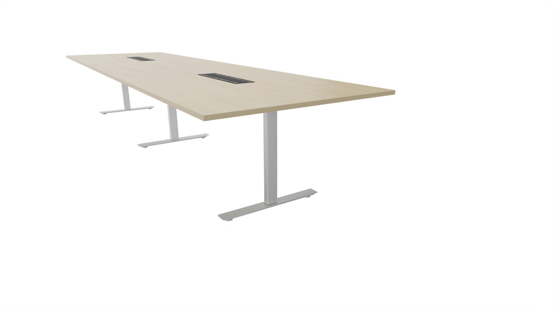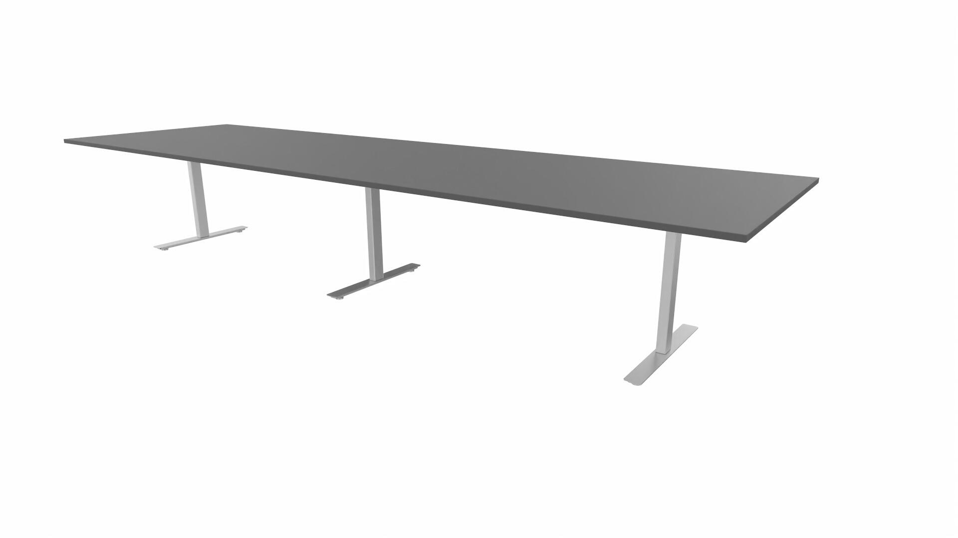 Et konferansebord med rektangulær plate, rett kant. Kjerne av sponplate dekket med laminat og ABS-kant. Understell T-stativ med 3 ben, fotlengde 90 cm. I tillegg til standard laminat, er bordet også tilgjengelig med et svart nanolaminat som har en overflate som er matt og motstandsdyktig mot fingeravtrykk. Som et tilvalg kan du også velge å ha to mediabokser (61x15 cm) innfelt i bordet. Hver medieboks består av 5x 230V stikkontakter, 3x USB og 1x HDMI.