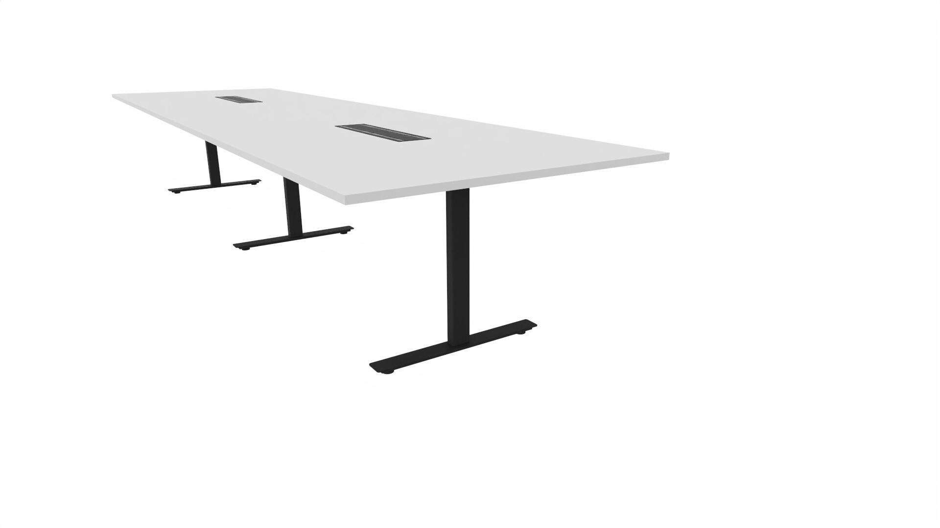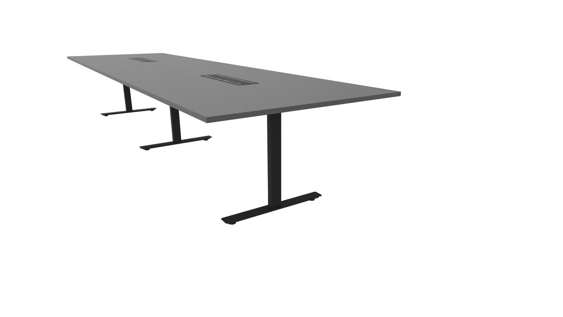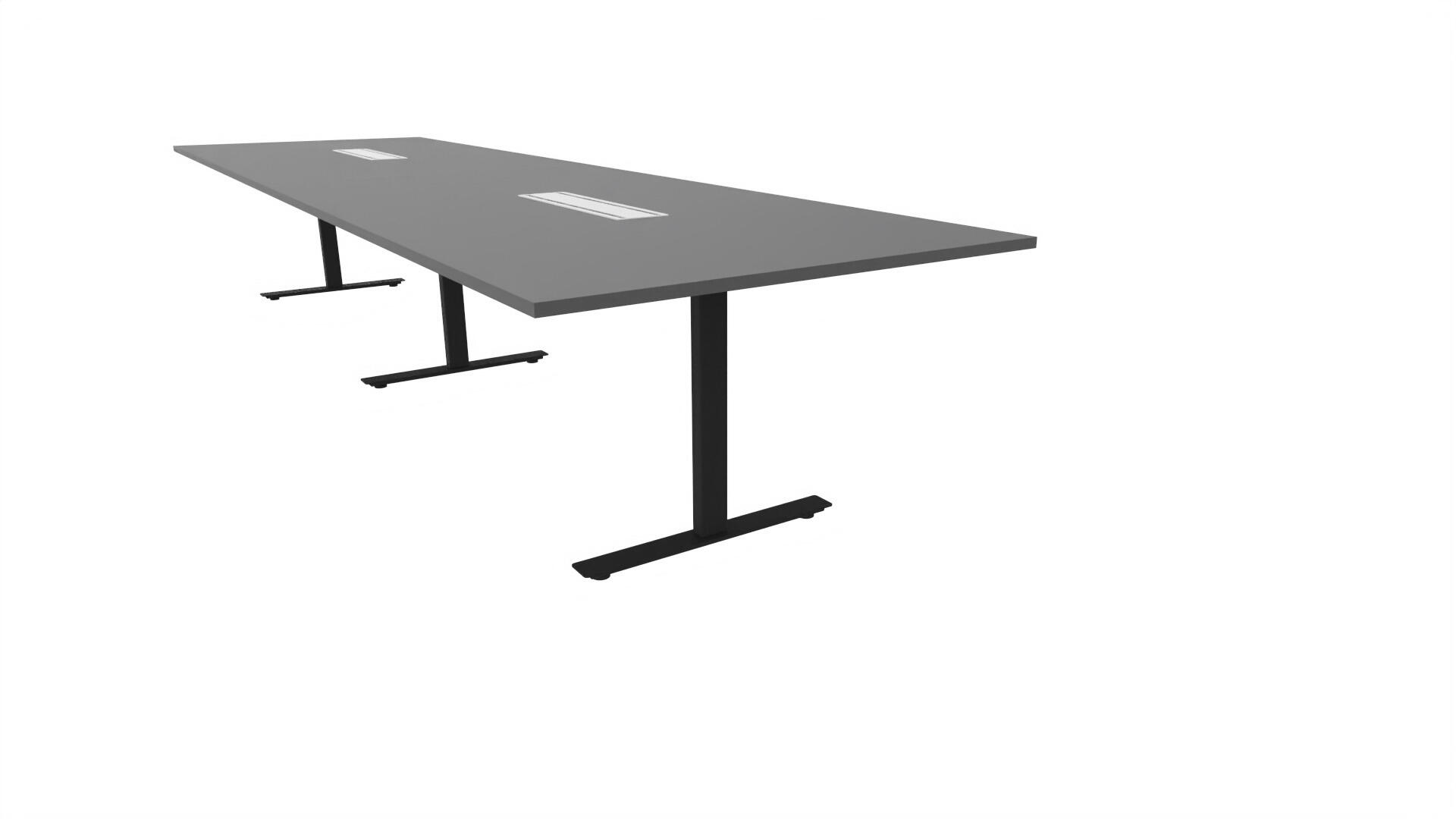 Et konferansebord med rektangulær plate, rett kant. Kjerne av sponplate dekket med laminat og ABS-kant. Understell T-stativ med 3 ben, fotlengde 90 cm. I tillegg til standard laminat, er bordet også tilgjengelig med et svart nanolaminat som har en overflate som er matt og motstandsdyktig mot fingeravtrykk. Som et tilvalg kan du også velge å ha to mediabokser (61x15 cm) innfelt i bordet. Hver medieboks består av 5x 230V stikkontakter, 3x USB og 1x HDMI.