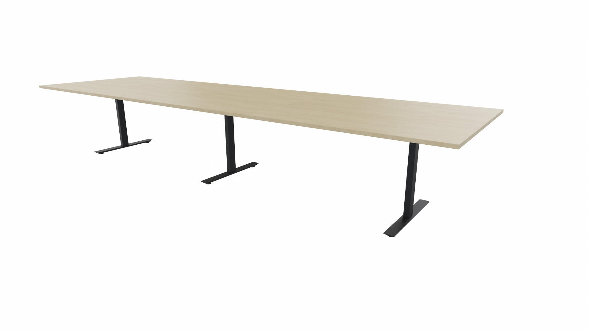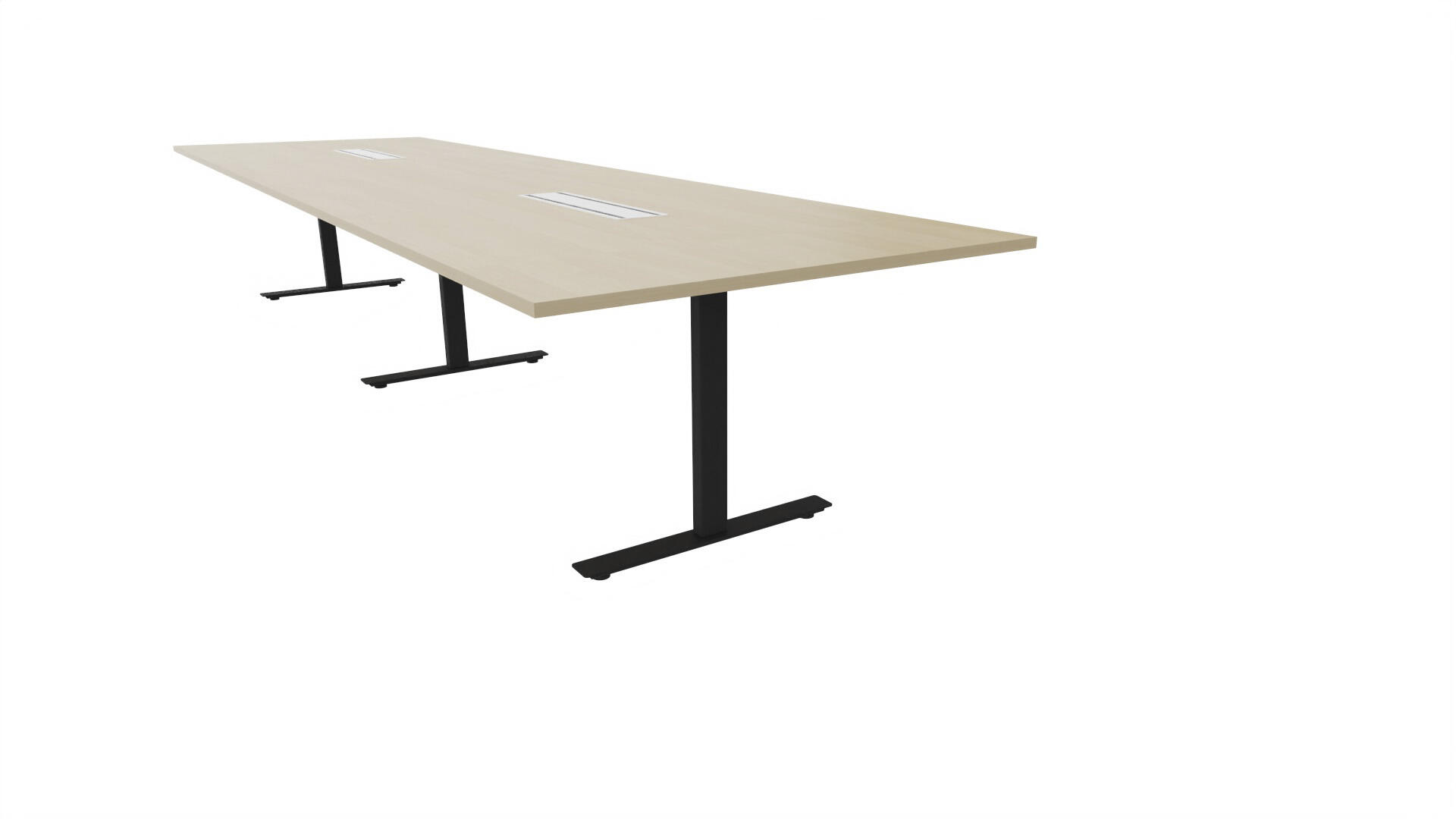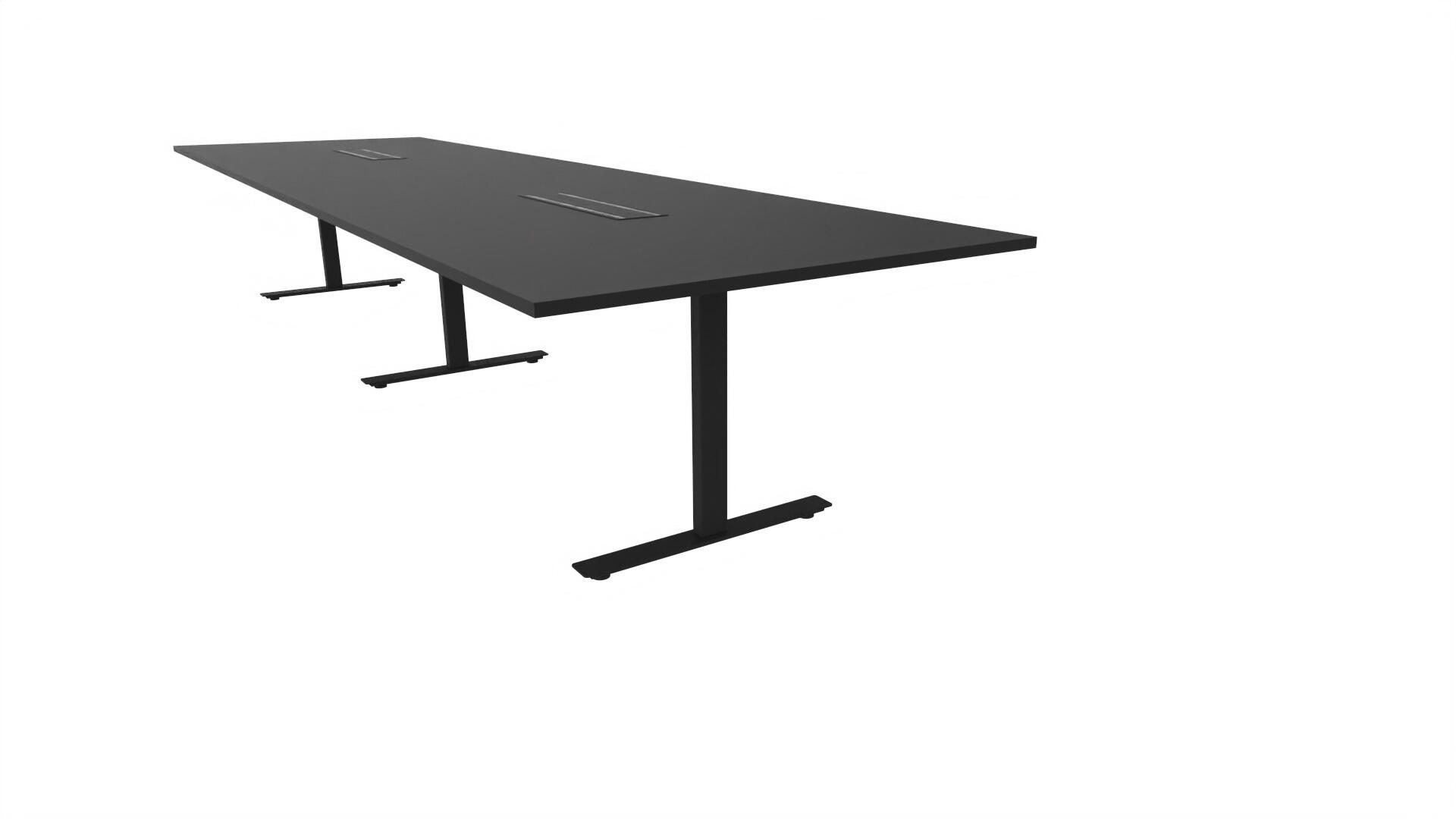 Et konferansebord med rektangulær plate, rett kant. Kjerne av sponplate dekket med laminat og ABS-kant. Understell T-stativ med 3 ben, fotlengde 90 cm. I tillegg til standard laminat, er bordet også tilgjengelig med et svart nanolaminat som har en overflate som er matt og motstandsdyktig mot fingeravtrykk. Som et tilvalg kan du også velge å ha to mediabokser (61x15 cm) innfelt i bordet. Hver medieboks består av 5x 230V stikkontakter, 3x USB og 1x HDMI.