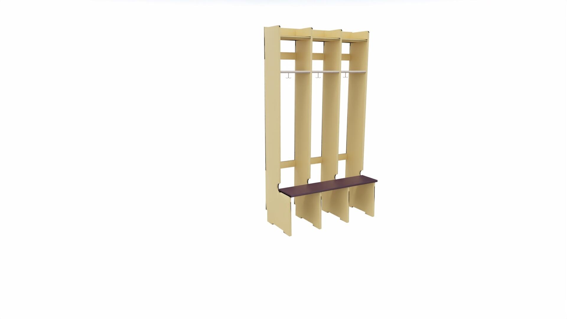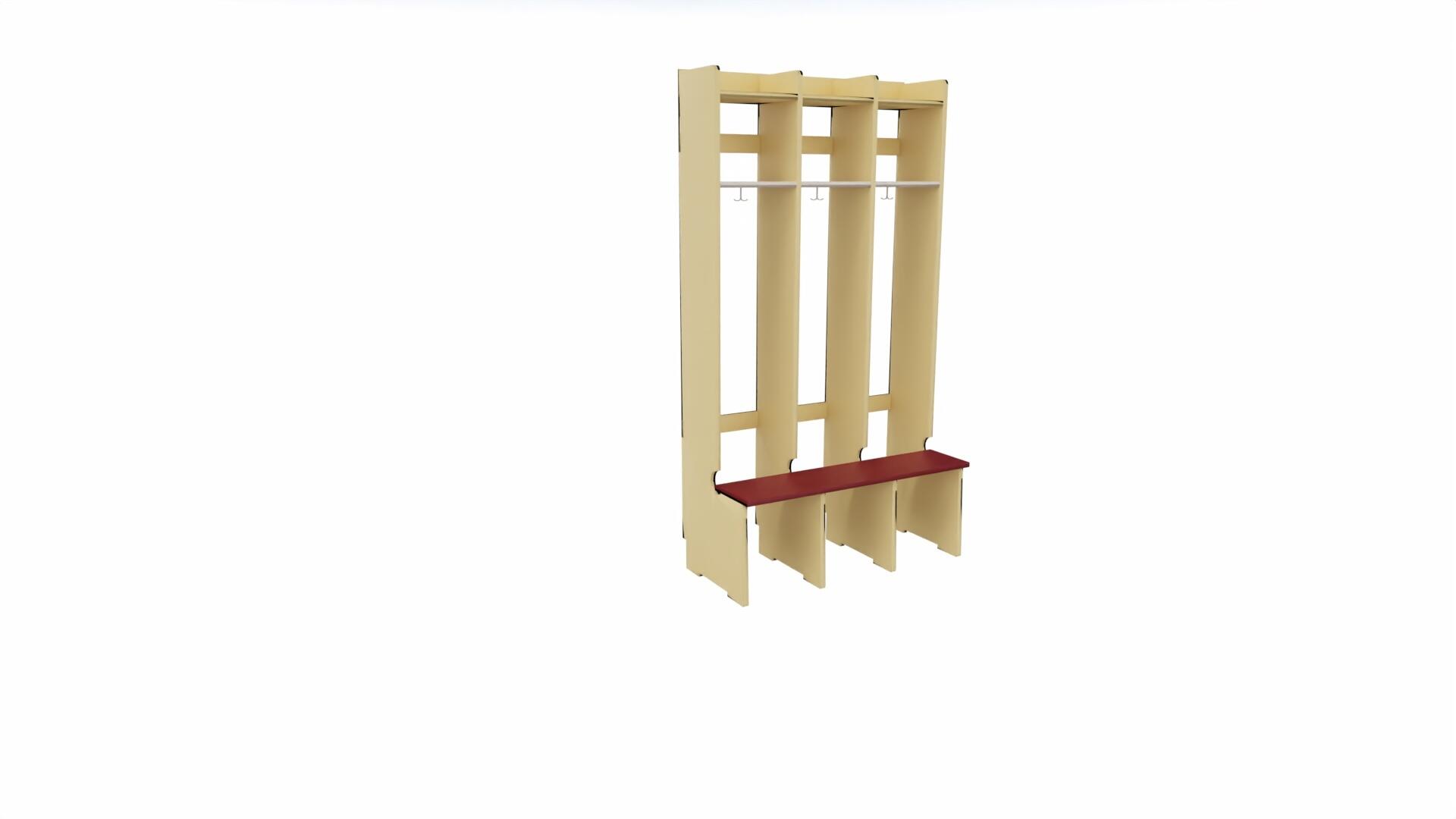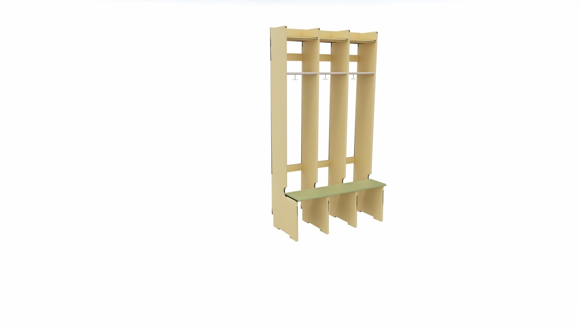 Produsert i 18 mm bjørkekryssfiner. Med sittebenk, skohylle og dobbelkrok på hver plass. Dører finnes som tillegg. Avstand fra kleskrok til skohylle 100 cm. Høyde 168 cm, dybde 24 cm, dybde ved sittebenk 44 cm. Svanemerket, lisensnummer 50310099.