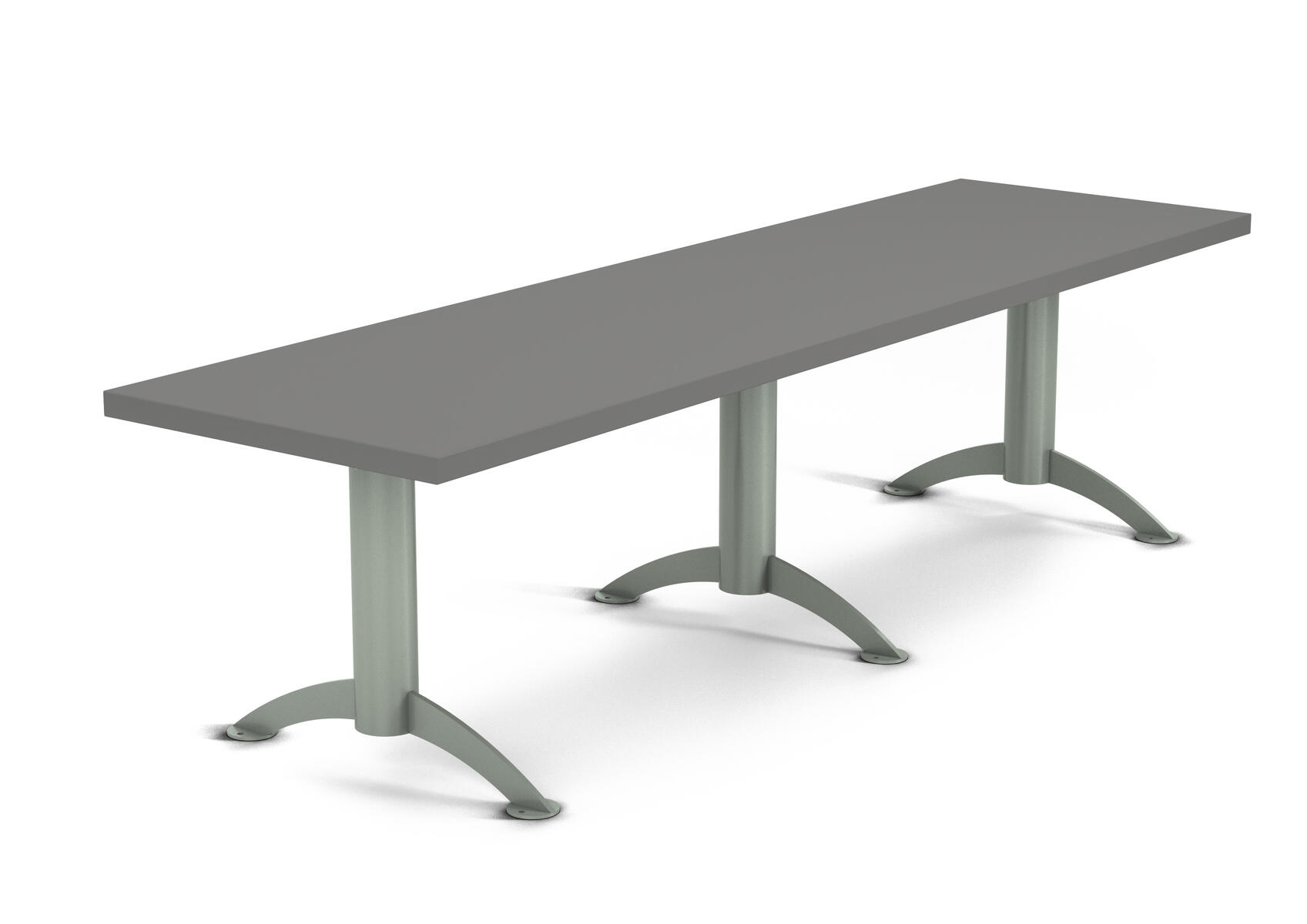 Ytterradius 2 m, settes 4 benker i ring Ø4 m. Belagt med høytrykkslaminat. Sølvlakkert understell RAL9006. Sittehøyde 44 cm. Klargjort for montering i gulv.