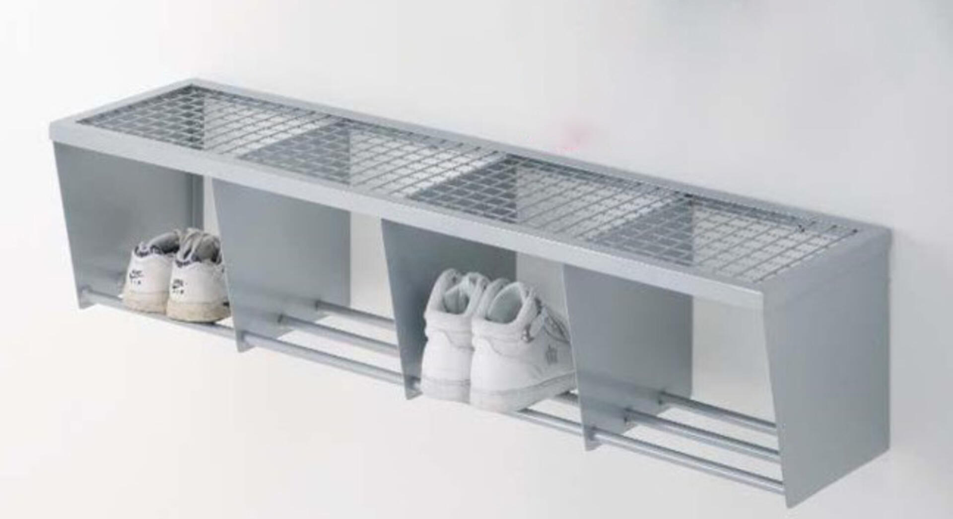 Garderobehylle som kan brukes som hattehylle eller skohylle. Monteres direkte på veggen. Av stål, tørkes av med fuktig klut. Kompletter gjerne med Walter krok 82042 som hektes på stangen og skrus fast.