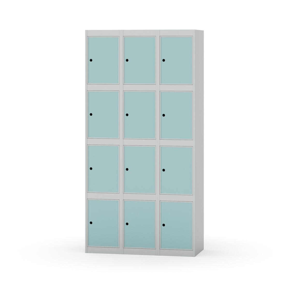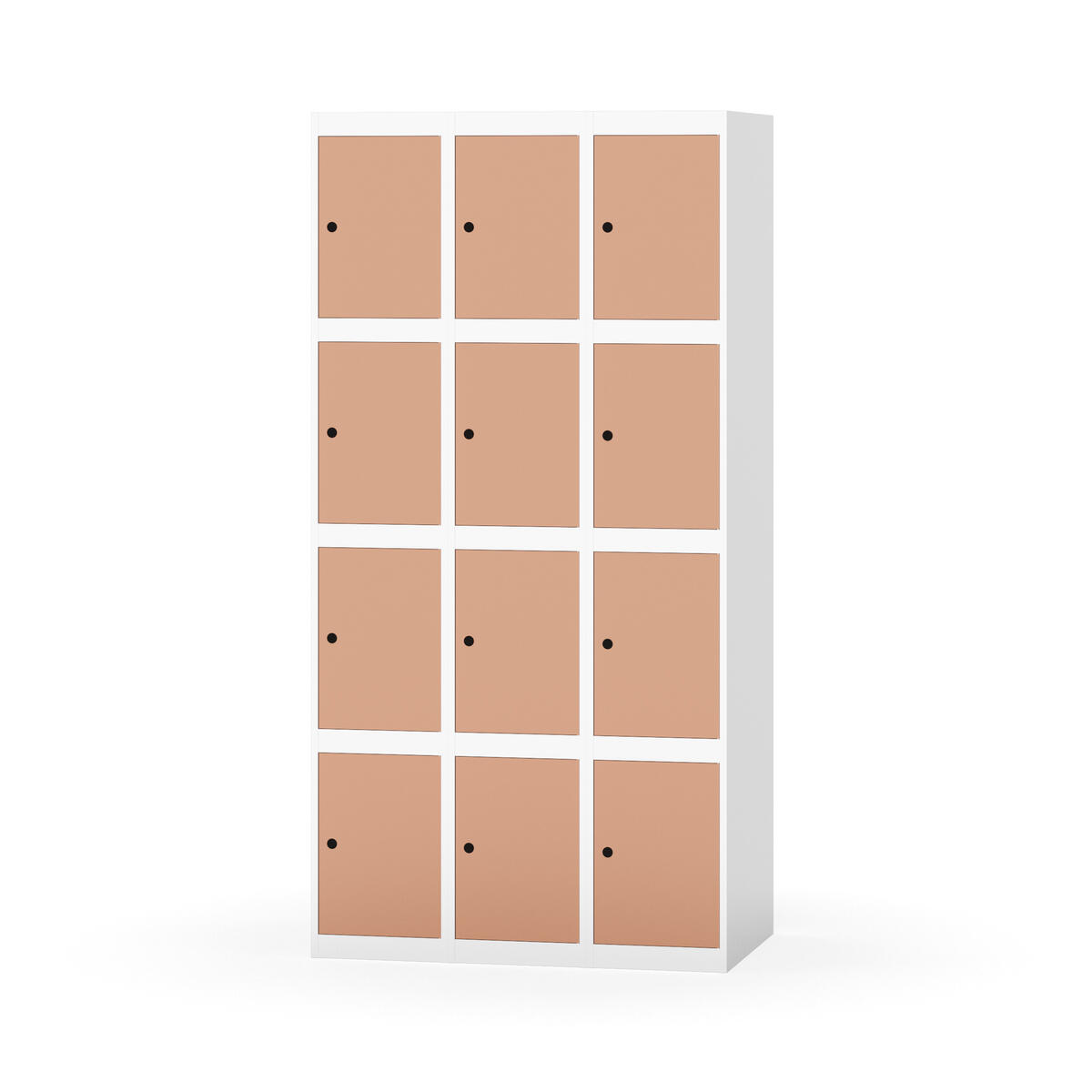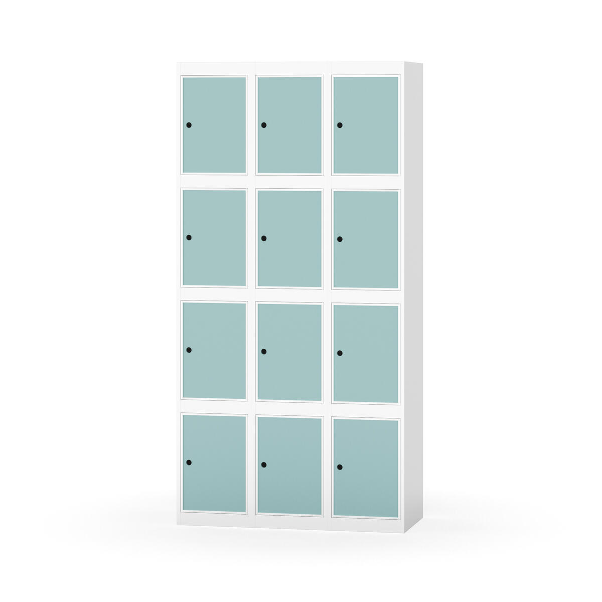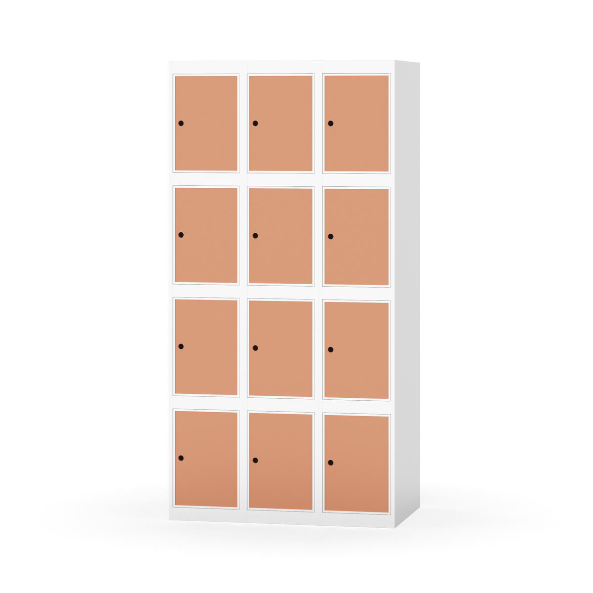 Garderobeskap med helsveiset ramme. Velg mellom dør i metall eller laminat. Metalldøren er utstyrt med dørstopper i stål og innfelt forsterkning rundt låsehullet. Laminatdøren er innfelt i stålramme utstyrt med dørstopper i stål. Dørene kan åpnes 90 grader. Interiør: Ingen. Glatt gulvflate uten terskel. Ventilasjon gjennom hull i tak/bunnplate. - Vær oppmerksom på at lås/hasp for hengelås og sokkel/ben bestilles på egne artikkelnummer. Lås/hasp for hengelås vil da være montert på skap ved levering. Valgt understell monteres på stedet.