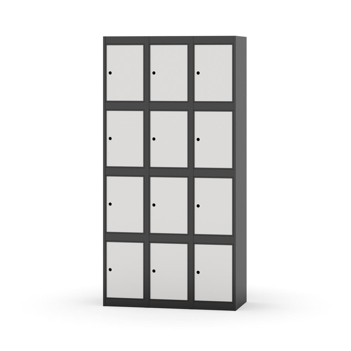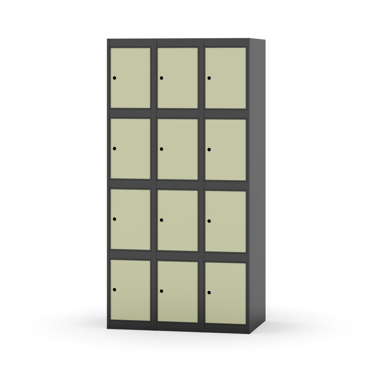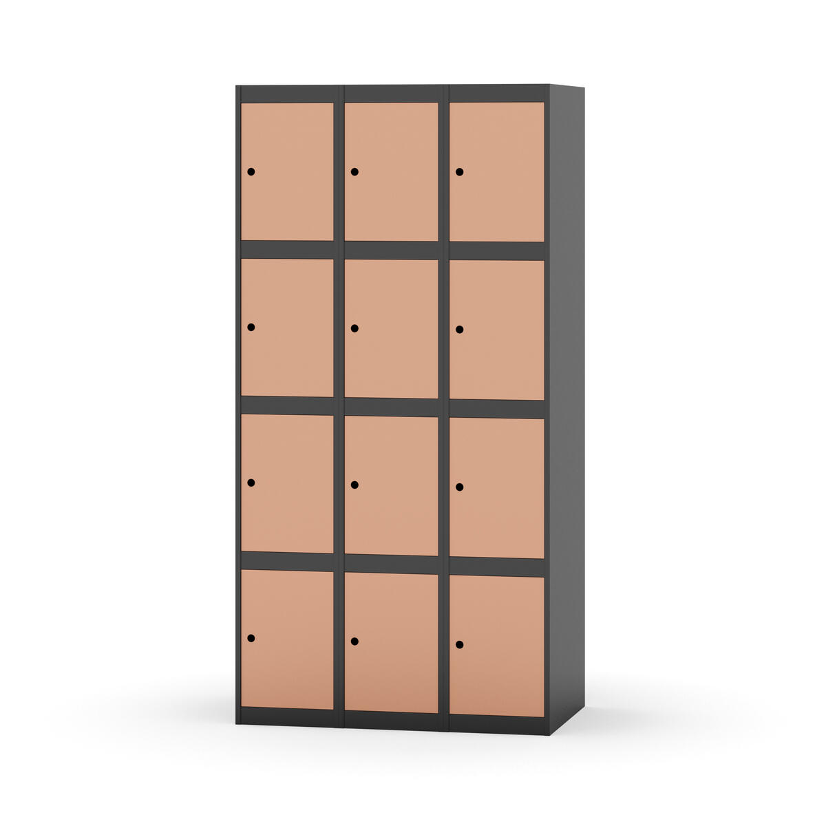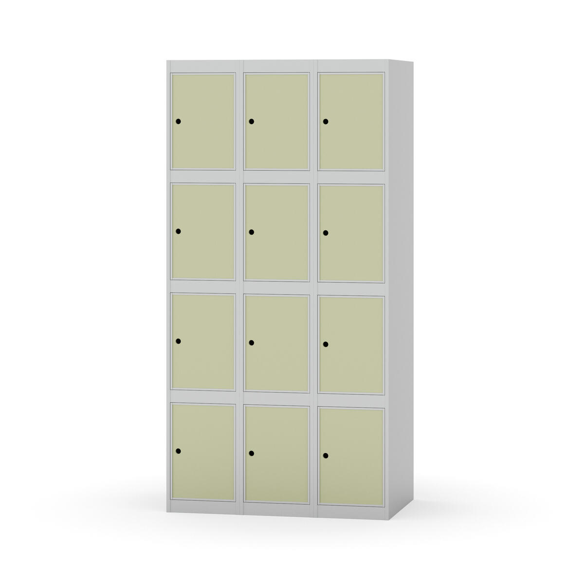 Garderobeskap med helsveiset ramme. Velg mellom dør i metall eller laminat. Metalldøren er utstyrt med dørstopper i stål og innfelt forsterkning rundt låsehullet. Laminatdøren er innfelt i stålramme utstyrt med dørstopper i stål. Dørene kan åpnes 90 grader. Interiør: Ingen. Glatt gulvflate uten terskel. Ventilasjon gjennom hull i tak/bunnplate. - Vær oppmerksom på at lås/hasp for hengelås og sokkel/ben bestilles på egne artikkelnummer. Lås/hasp for hengelås vil da være montert på skap ved levering. Valgt understell monteres på stedet.