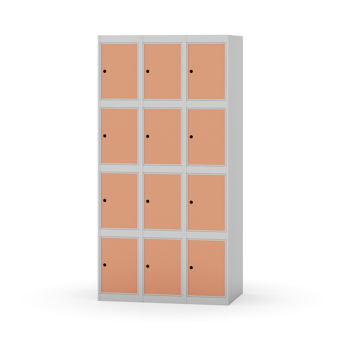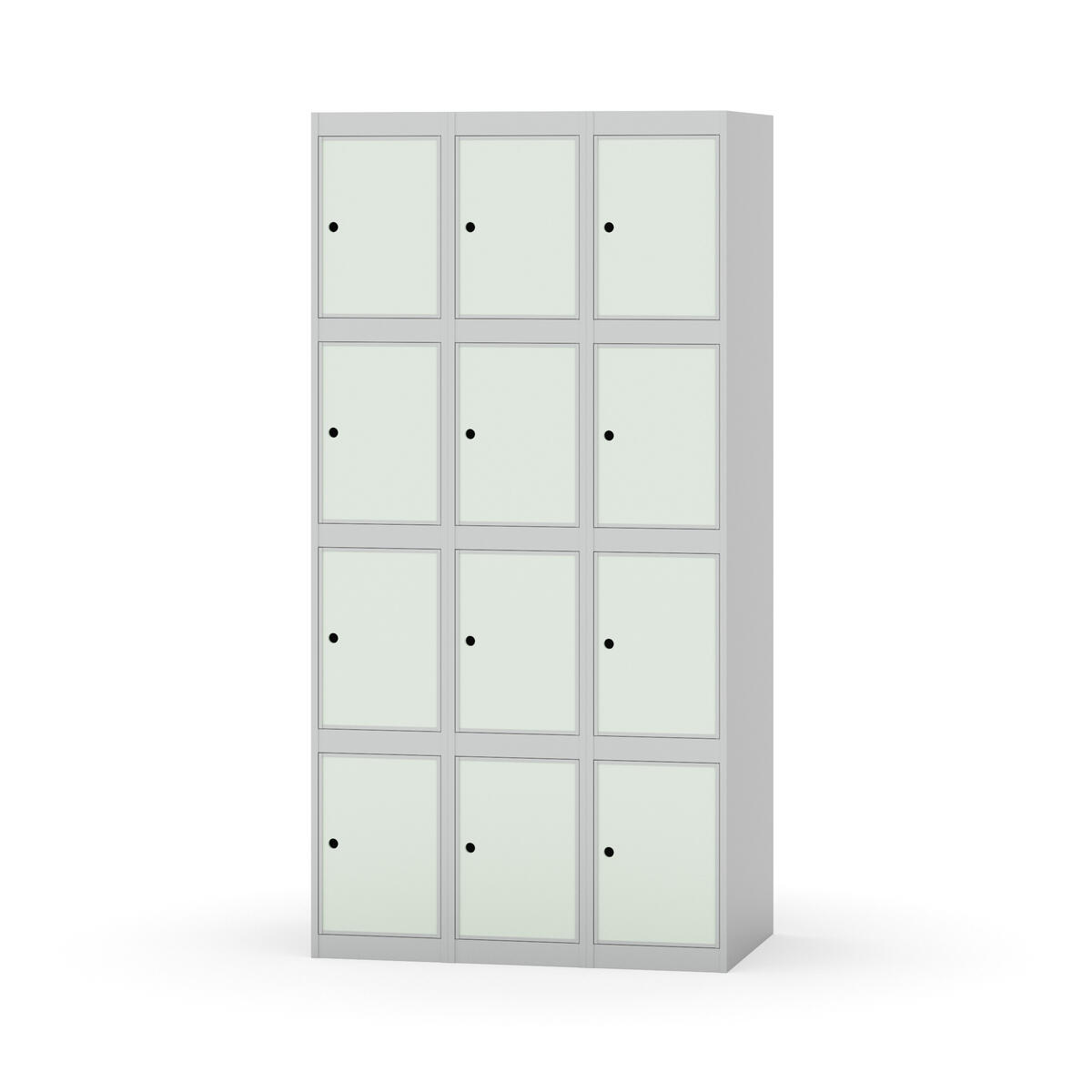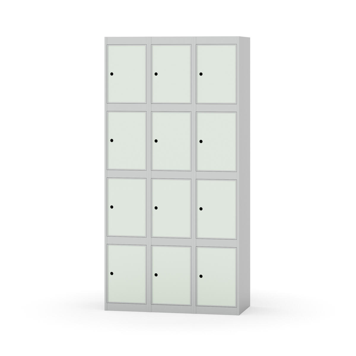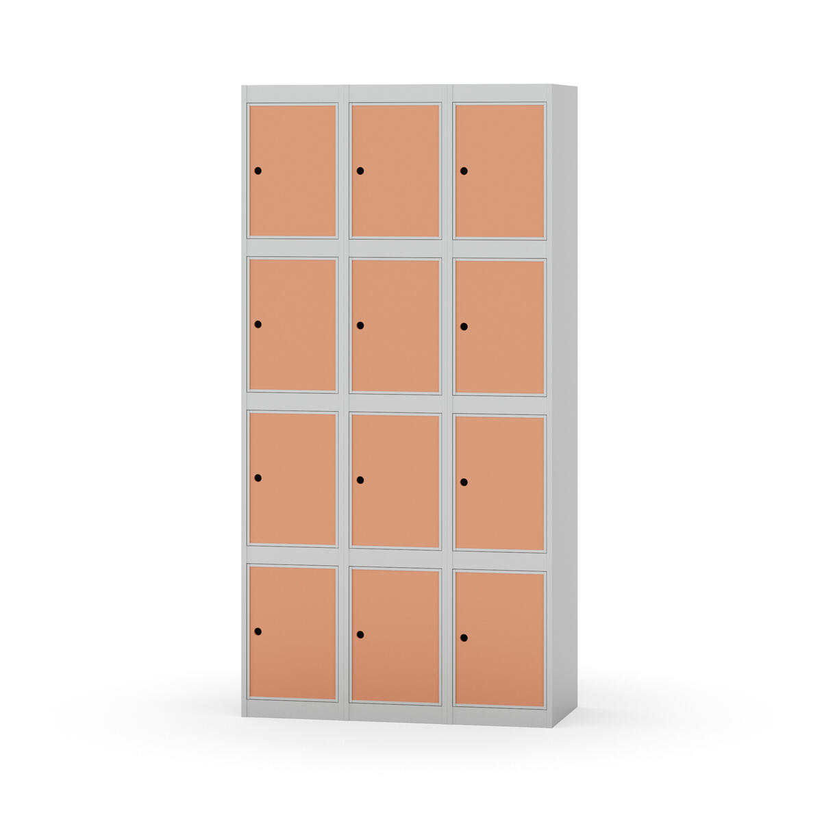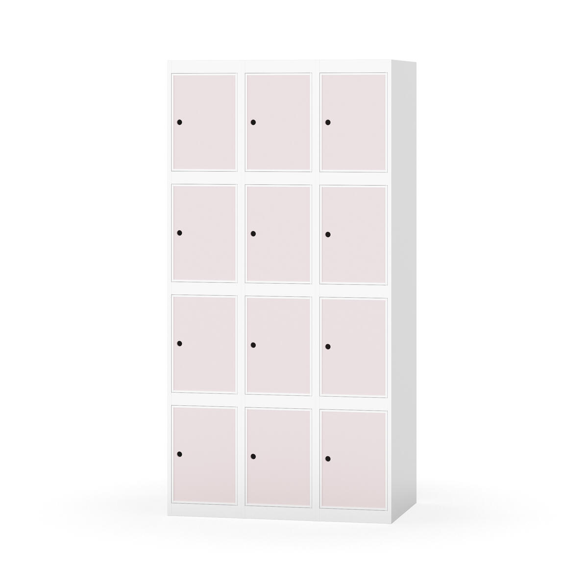 Elevskap tilpasset krevende skolemiljøer. Skap med helsveiset stamme med forsterket rammeprofil. Velg mellom metall- eller laminatdør. Metalldøren er utstyrt med dørstopper i stål og innfelt forsterkning rundt låsehullet, doble stålplater og en ekstra forsterkning mellom platene. Laminatdøren er innfelt i stålramme utstyrt med dørstopper i stål. Dørene kan åpnes 90 grader. Innredning: Ingen. Glatt gulvflate uten terskel. Ventilasjon gjennom hull i tak/bunnplate. - Vær oppmerksom på at lås/hasp for hengelås og sokkel/ben bestilles på egne artikkelnummer. Lås/hasp for hengelås vil da være montert på skap ved levering. Valgt ben/sokkel monteres på stedet.